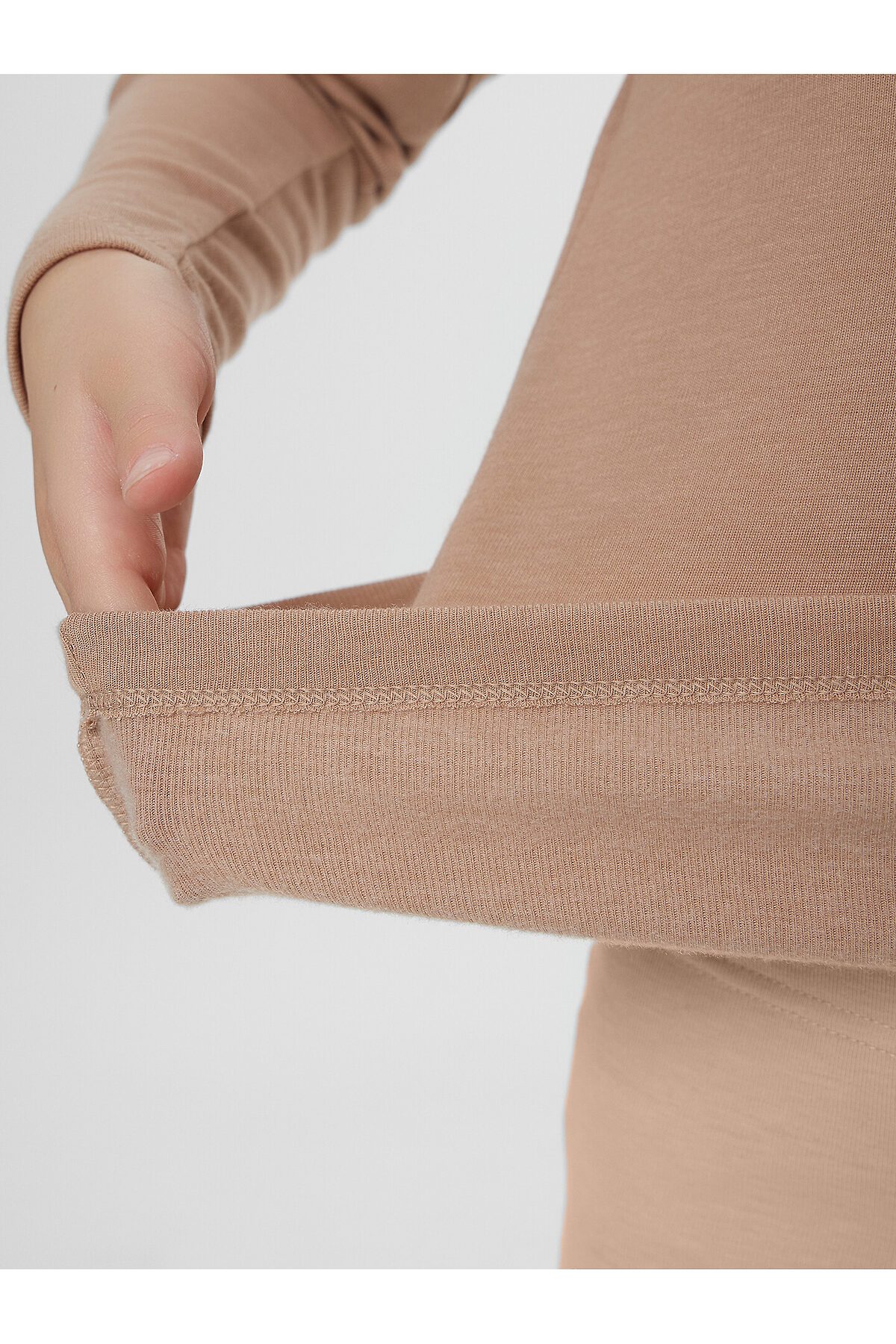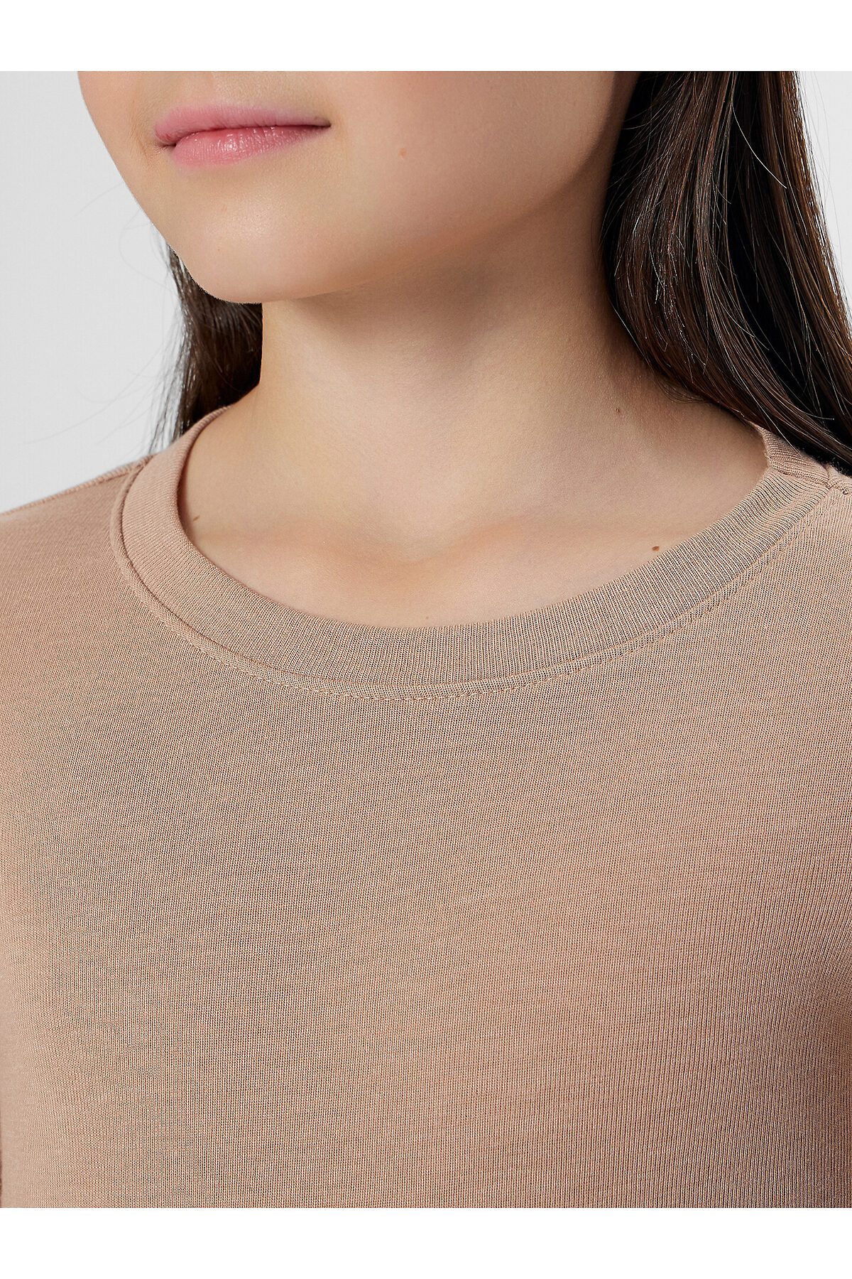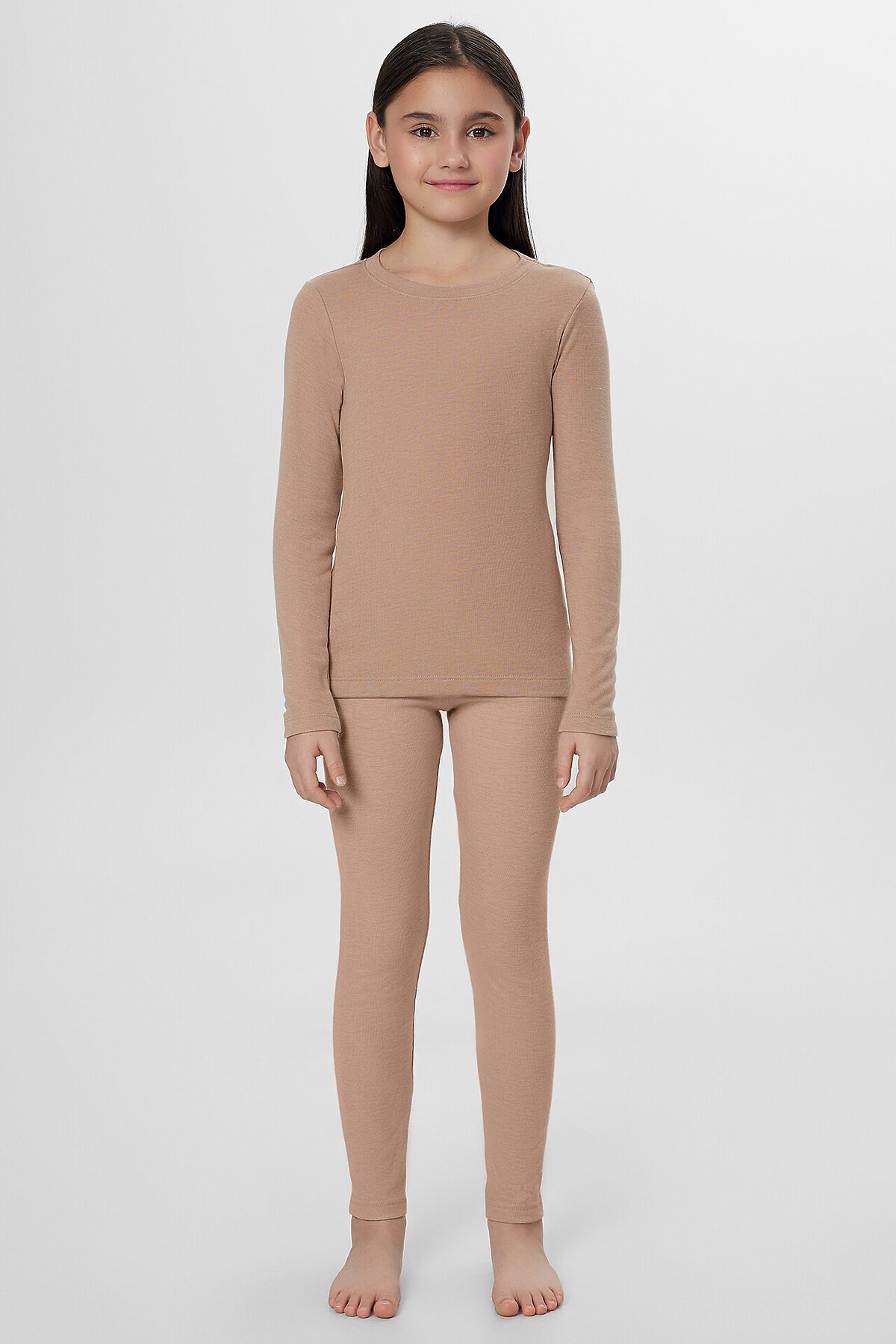 Джемпер "термо" для девочек прилегающего силуэта, длиной до линии бедер. Рукав втачной длинный. Горловина округлой формы, с обтачкой из основного полотна. По шву втачивания обтачки проложена отделочная строчка. Низ джемпера и рукавов обработан швом вподгибку на 2х игольной плоскошовной машине.