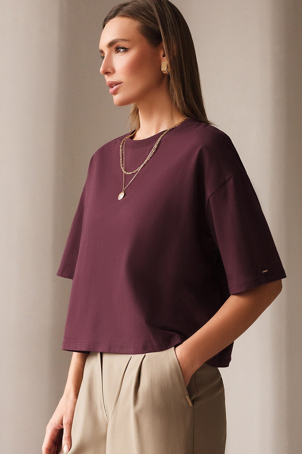 Базовая футболка из 100% хлопка. Укороченная модель свободной посадки идеально впишется в повседненвый гардероб. Изделие хорошо держит форму и обеспечивает комфортный микроклимат в течение дня.