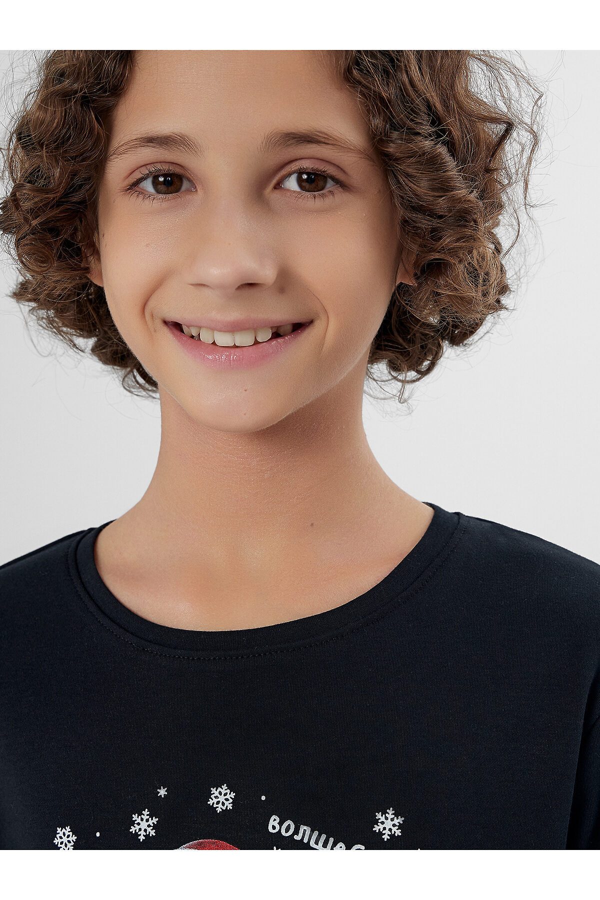 Комплект для мальчиков из джемпера и брюк. Джемпер свободного силуэта. Перед и спинка цельнокроеные. Горловина круглой формы с обтачкой из основного полотна. Рукава втачные, низ рукавов с притачными манжетами. Низ джемпера обработан швом в подгибку. Брюки прямые, с притачными манжетами. Пояс цельнокроеный, с втаченной эластичной тесьмой.