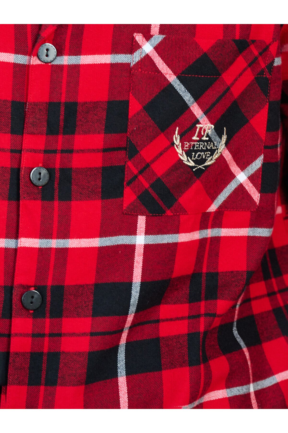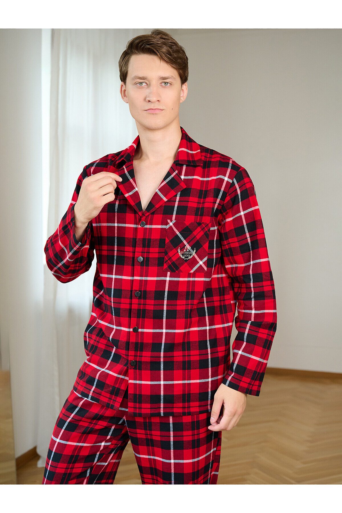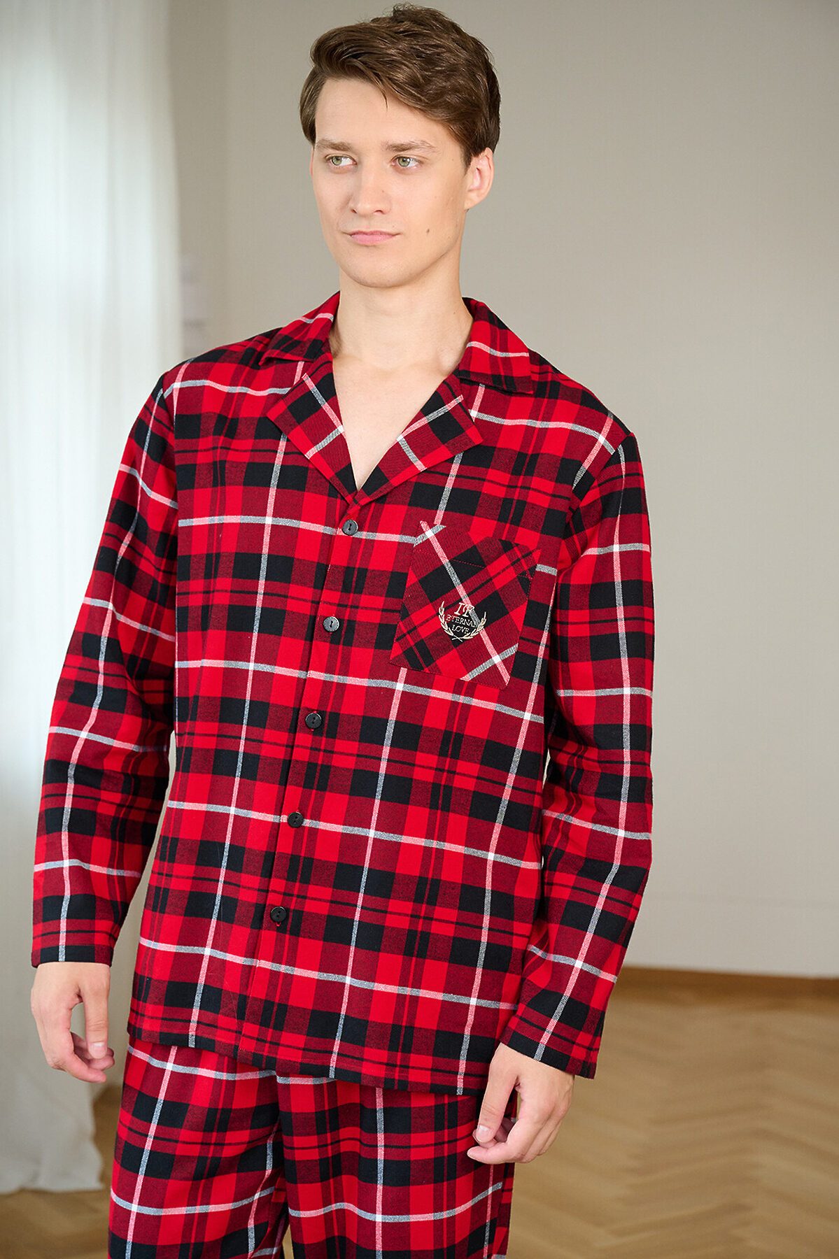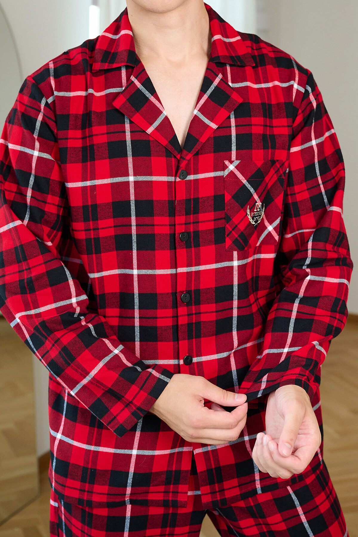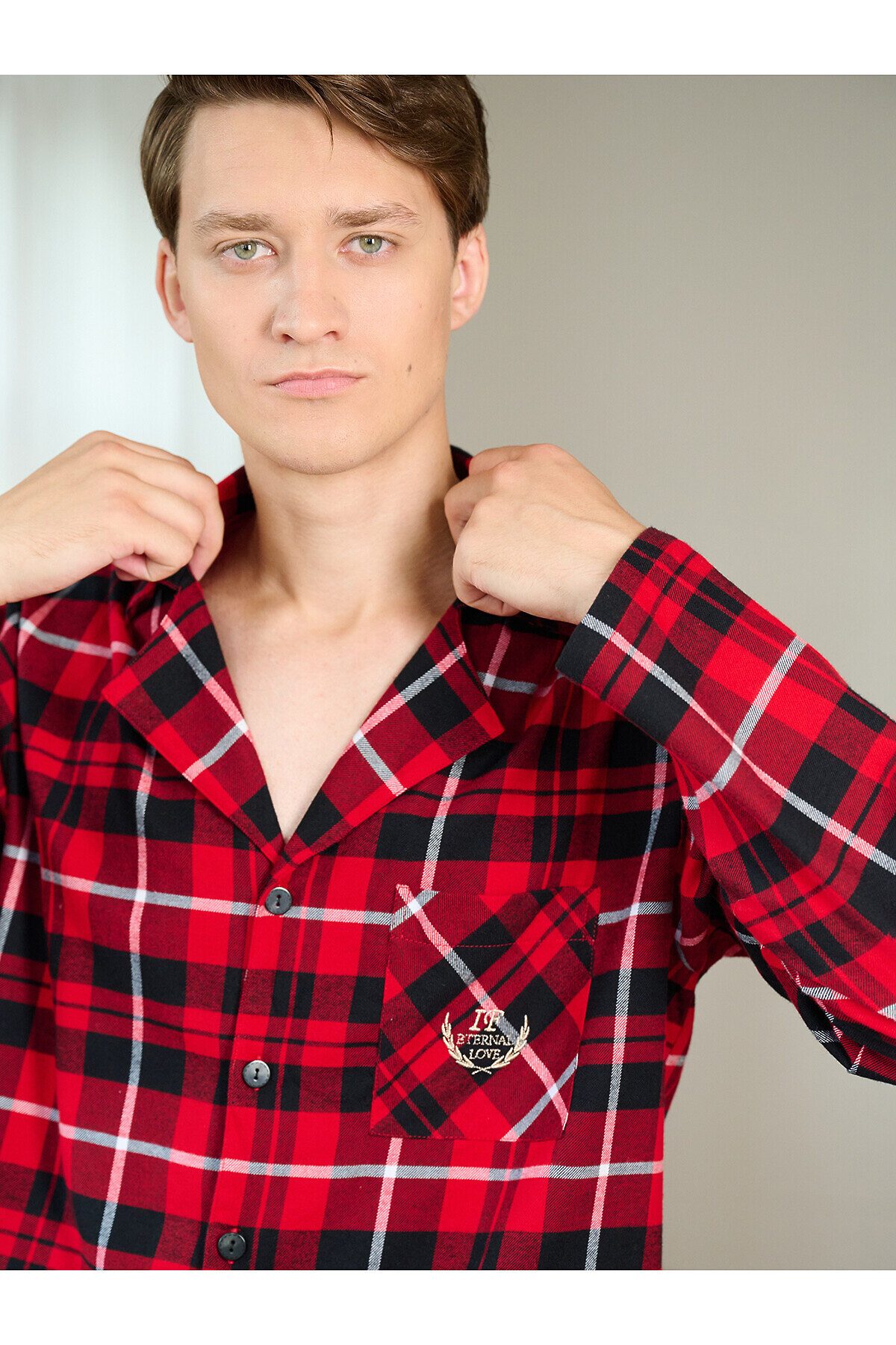 Мужская пижама Indefini (арт. 5023PCC) выполнена из 100% хлопка. В комплект входит рубашка и брюки в красно-черную клетку. Рубашка с длинными рукавами, отложным воротником и пуговицами спереди. На груди расположен накладной карман с вышитой фразой «Eternal Love». Брюки прямого кроя на мягкой резинке, обеспечивают свободу движений и максимальный комфорт. Пижама идеально подходит для домашнего отдыха и сна, обеспечивая комфорт и приятные тактильные ощущения.