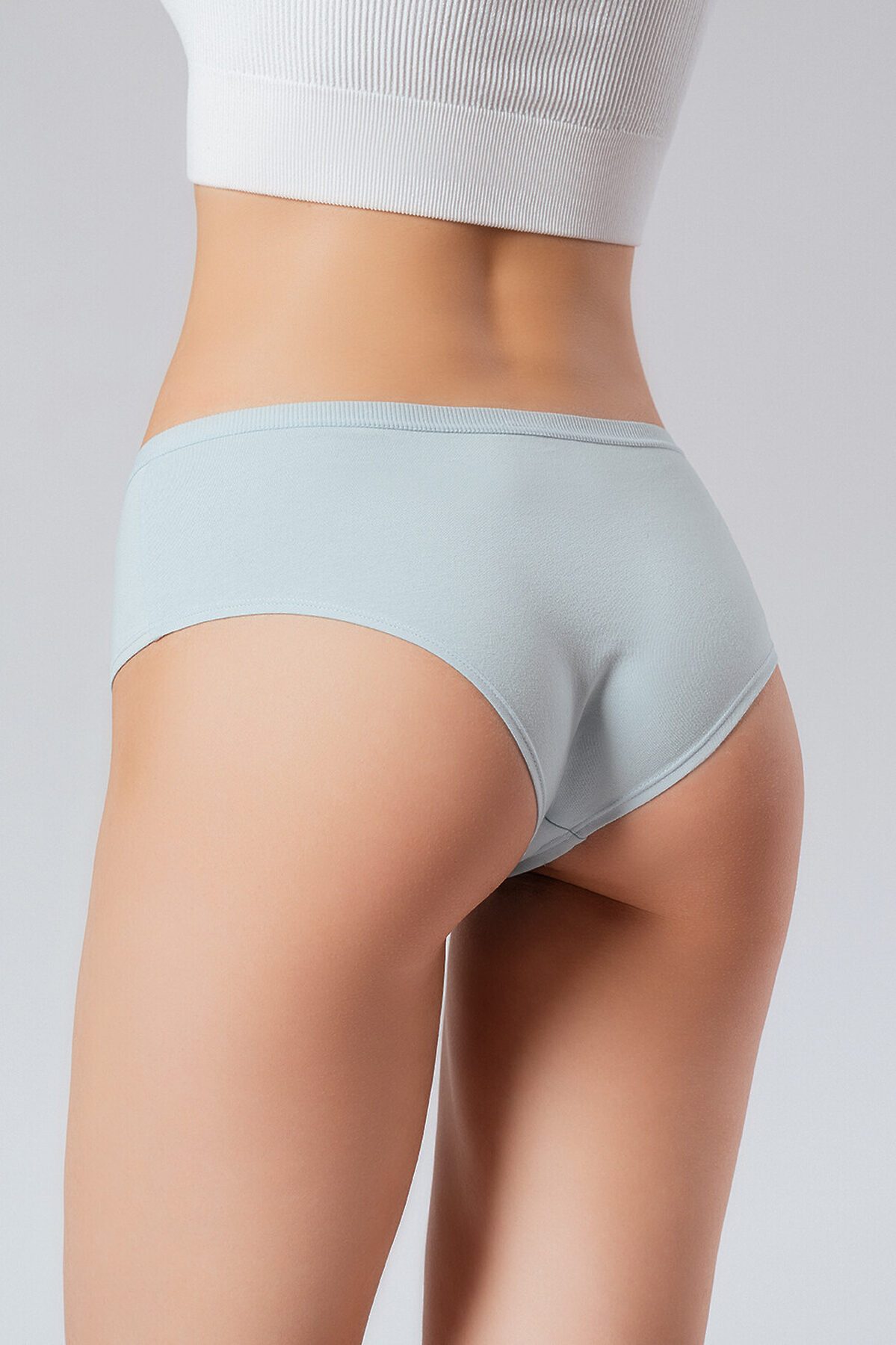 Трусы слипы женские 5010LUF бренда Indefini изготовлены из хлопковой ткани с добавлением эластана. Выполнены в светло-голубом цвете. Трусы средней посадки держатся на талии мягкой резинкой в тон основной ткани.. На внутренней стороне трусов имеется хлопковая ластовица. На трусы нанесён принт с надписью «MINT», «Lazy afternoon» и «JULEP» в оранжево-бежевых тонах.