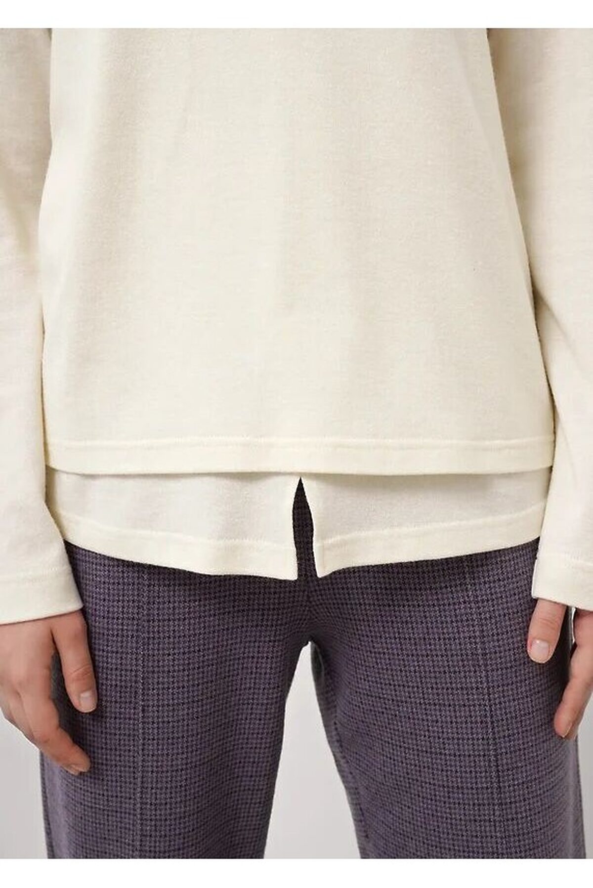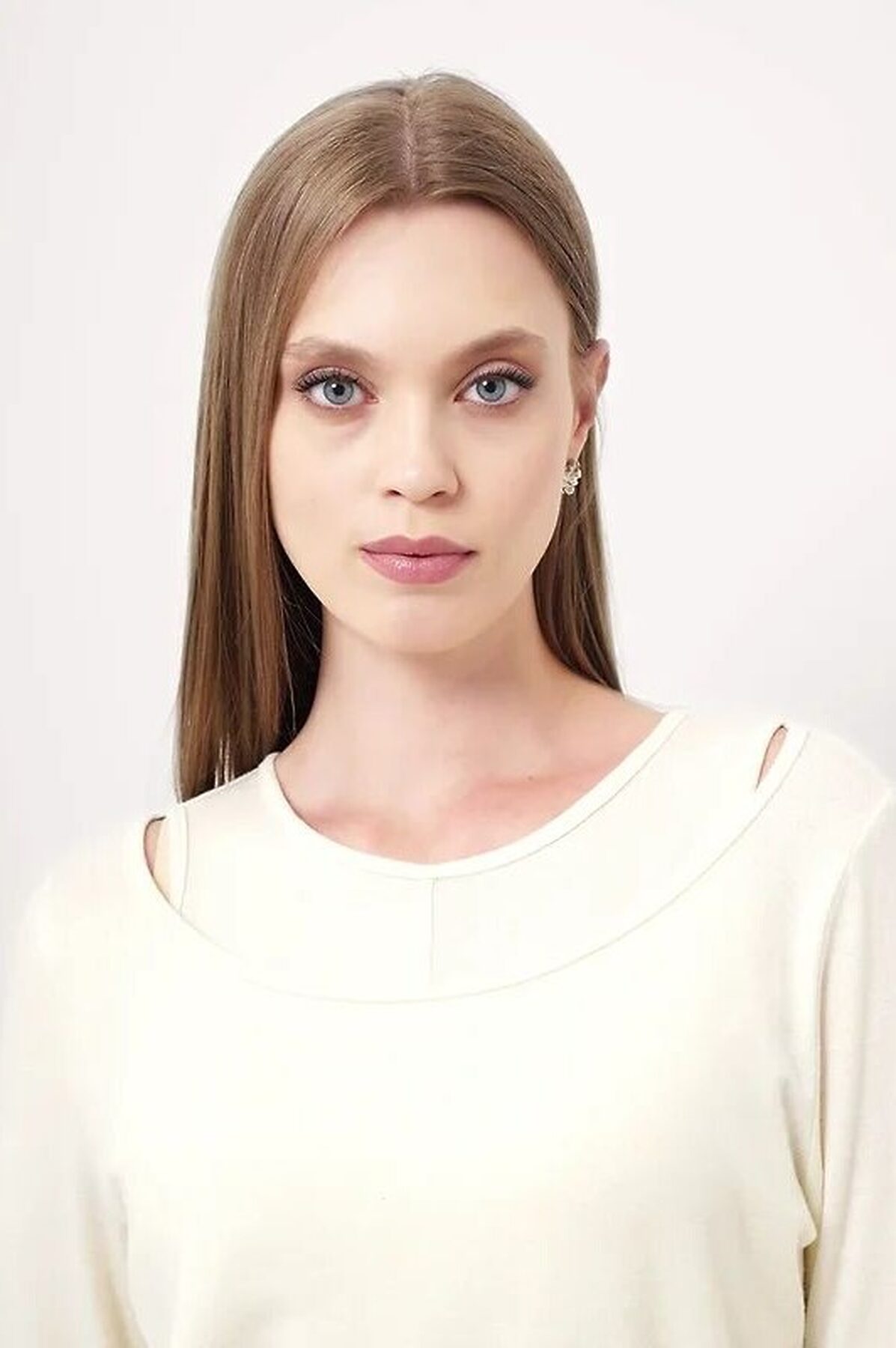Джемпер из трикотажного полотна вискоза вязанная. Округлая горловина с окантовкой. Втачной длинный рукав. Перед двойной (нижний слой со средним швом и разрезом внизу).