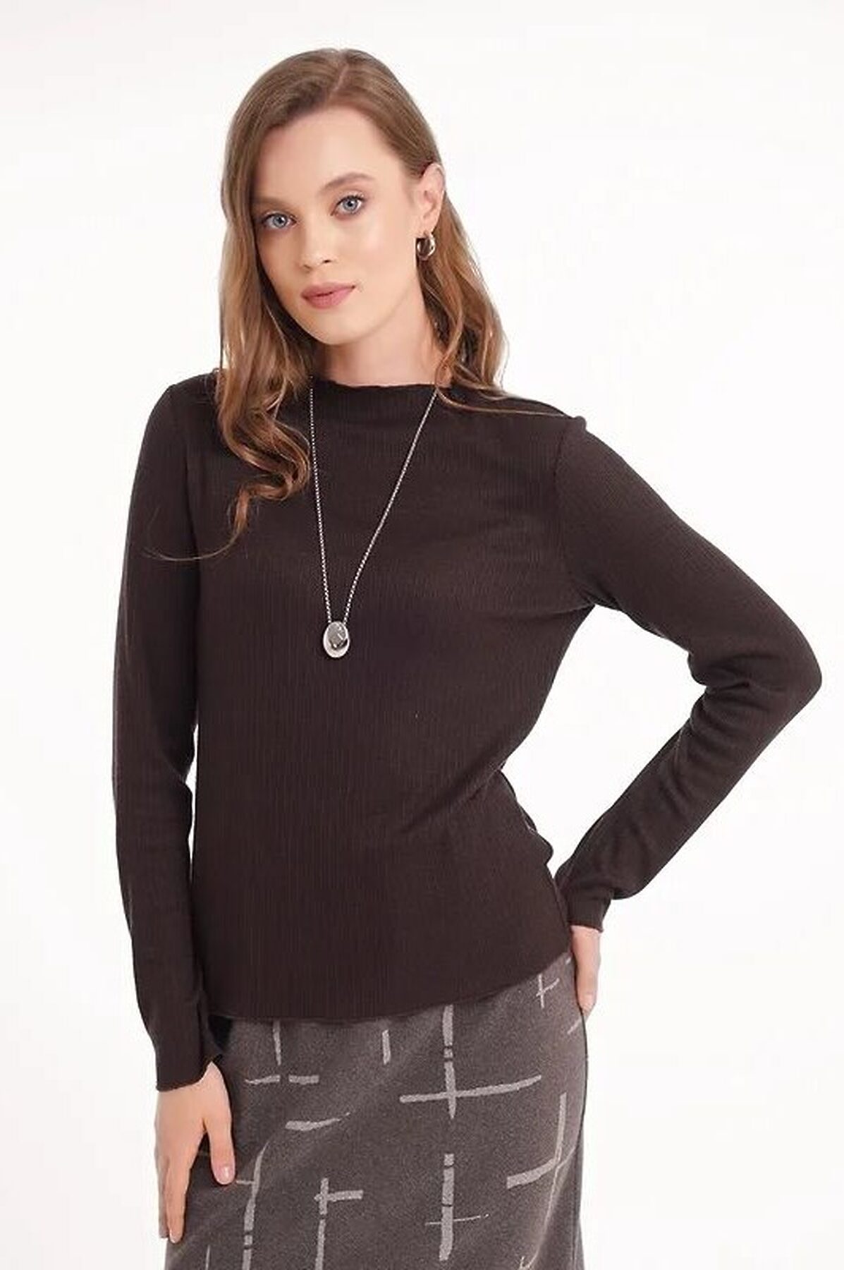 Джемпер из трикотажного поливискозного полотна кашкорсе с эластаном. Прямого силуэта. Длинный втачной рукав. По горловине цельвыкроенная стойка. По горловине, низу рукава и изделия обработка мелкий оверлок.