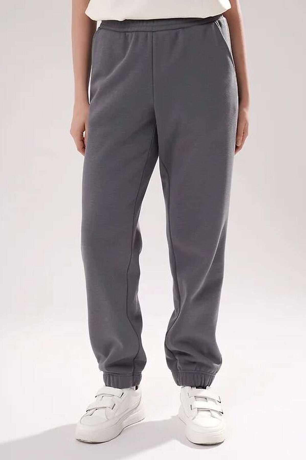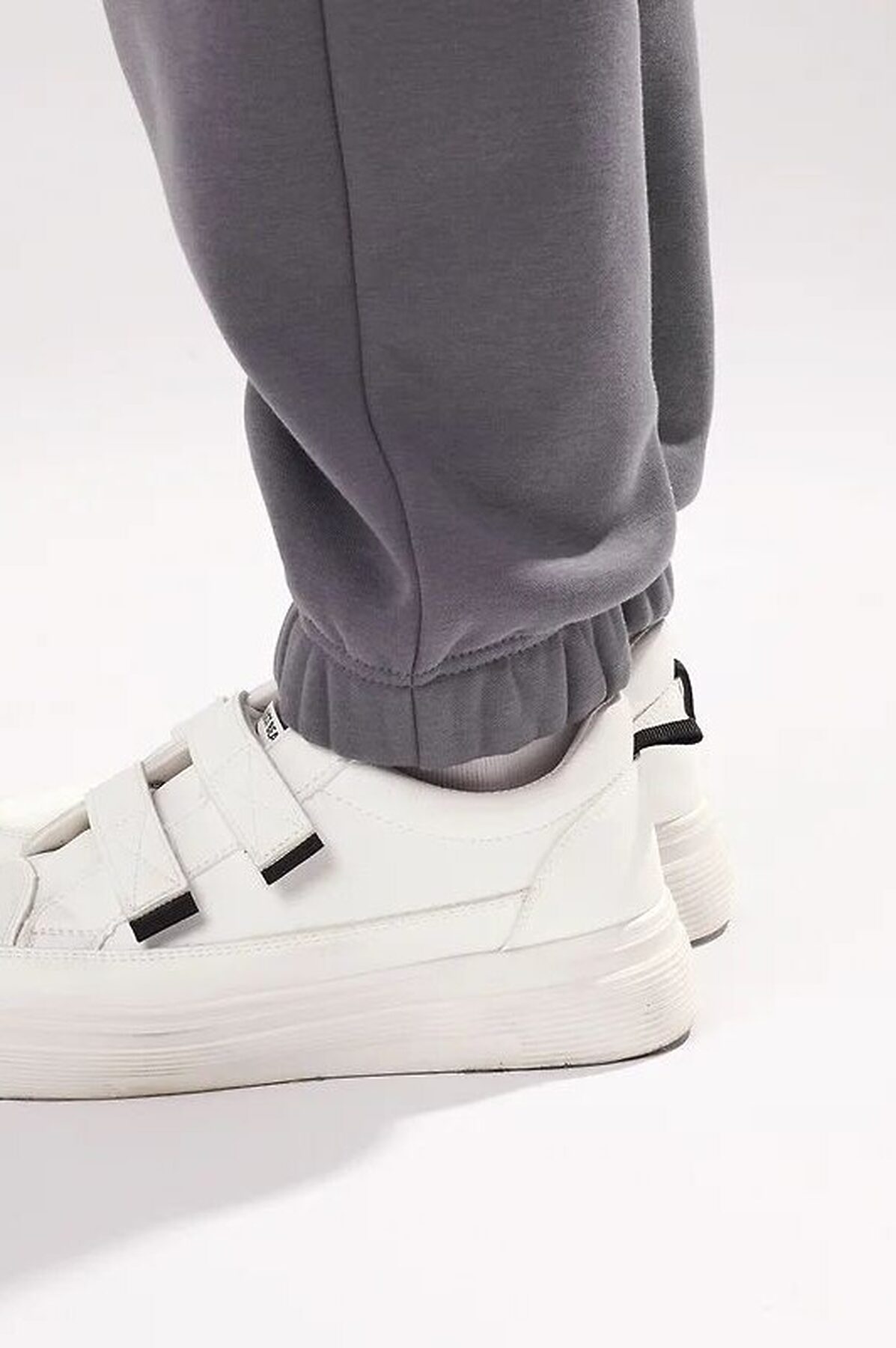 Брюки спортивные из трикотажного полотна футер с начесом "тедди",зауженные книзу. По талии пояс на резинке и внутренним шнуром. По низу брюк подгибка с внутренней резинкой. Боковые карманы с отрезным бочком.
