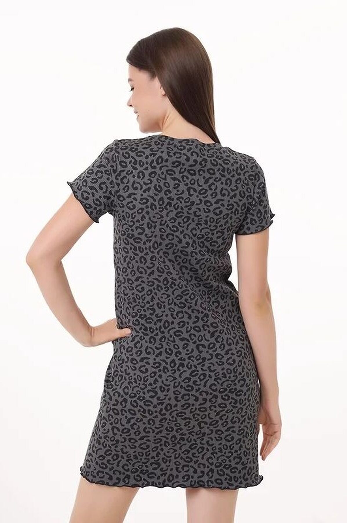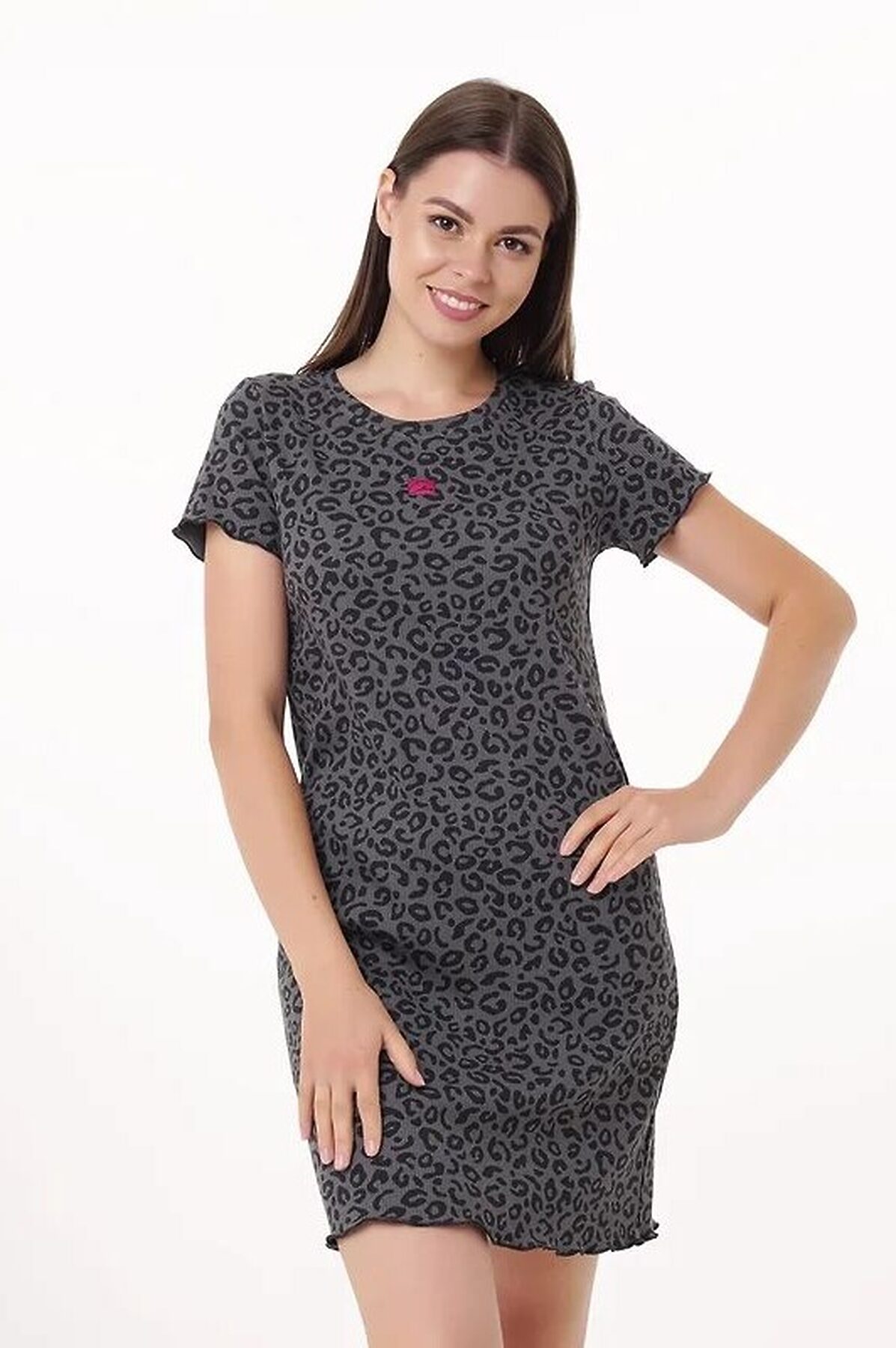 Платье для дома и отдыха из хлопкового трикотажного полотна с эластаном - кашкорсе. Втачной короткий рукав. Округлая горловина с обтачкой. По низу рукава и изделия мелкий оверлок. Спереди нашивка.