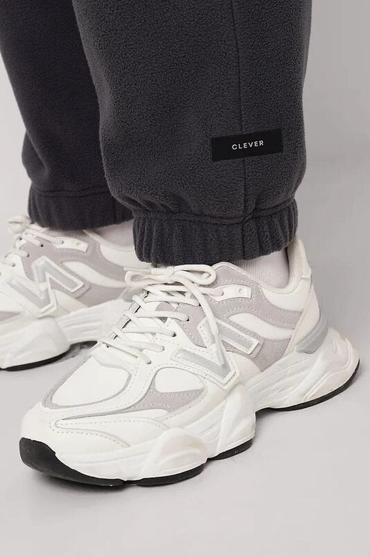 Брюки прямые из трикотажного полотна флис, с внутренней резинкой по талии и низу. Внизу брюк нашивка.