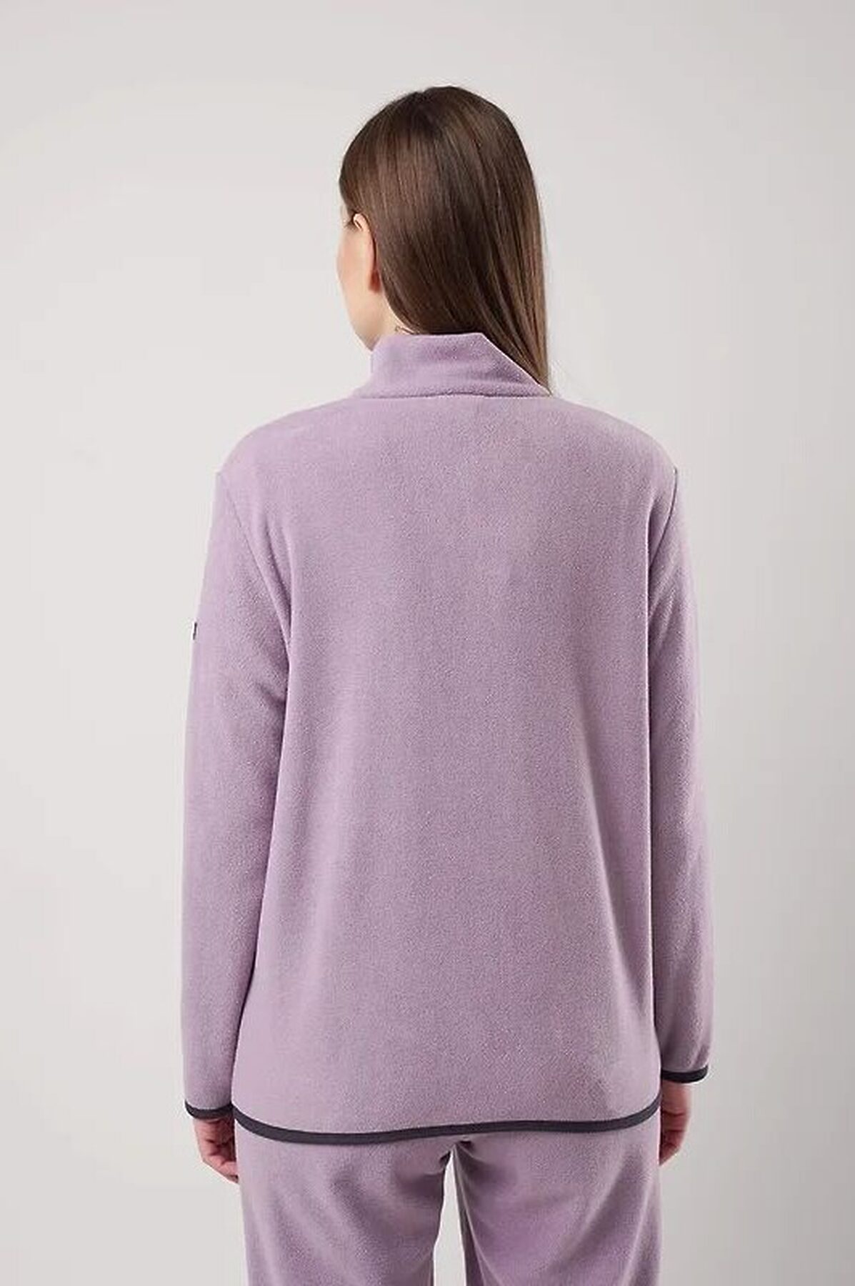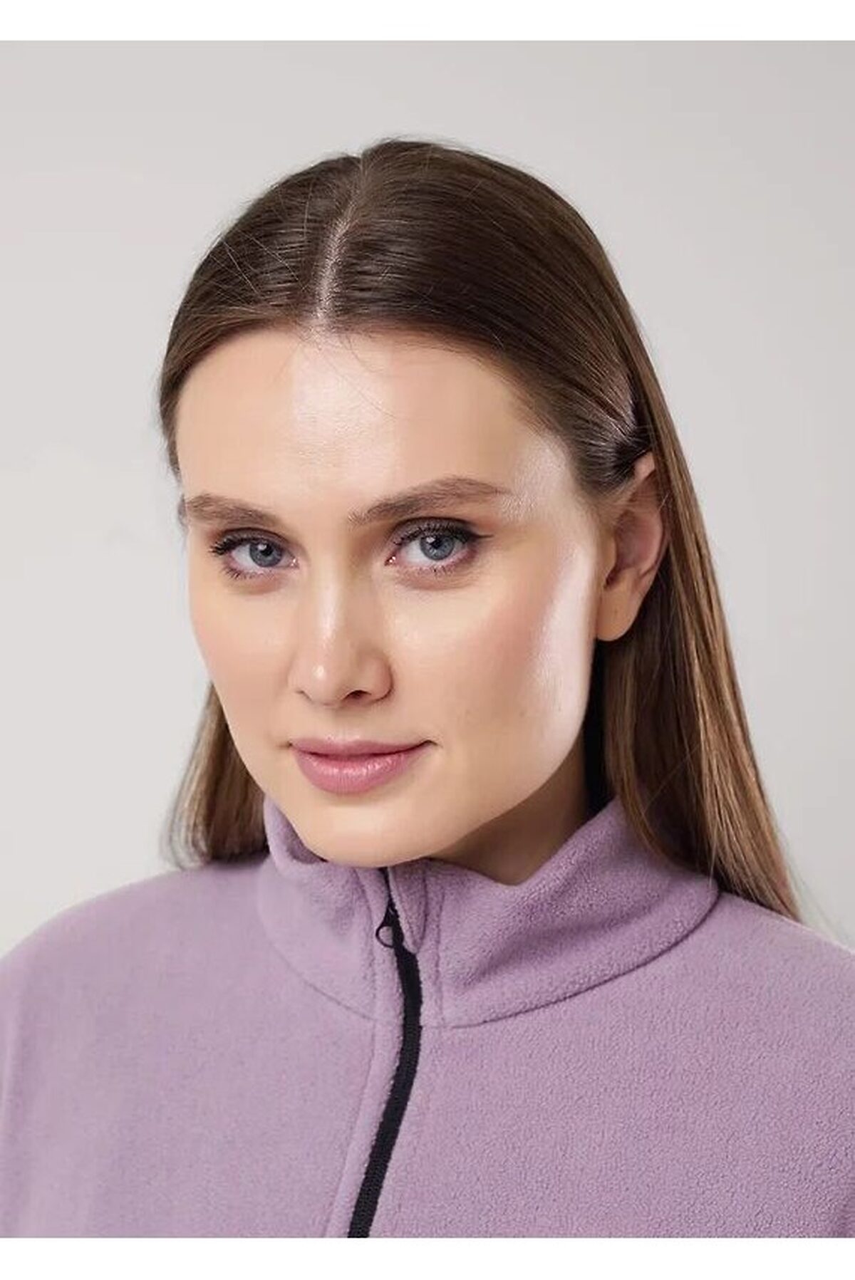Куртка спортивная прямого силуэта из трикотажного полотна флис, на молнии. По горловине стойка. Спереди горизонтальный рез, карманы на молнии. Длинный рукав со спущенной линией плеча, нашивка.По низу рукава и низа изделия окантовка. Спереди вышивка.