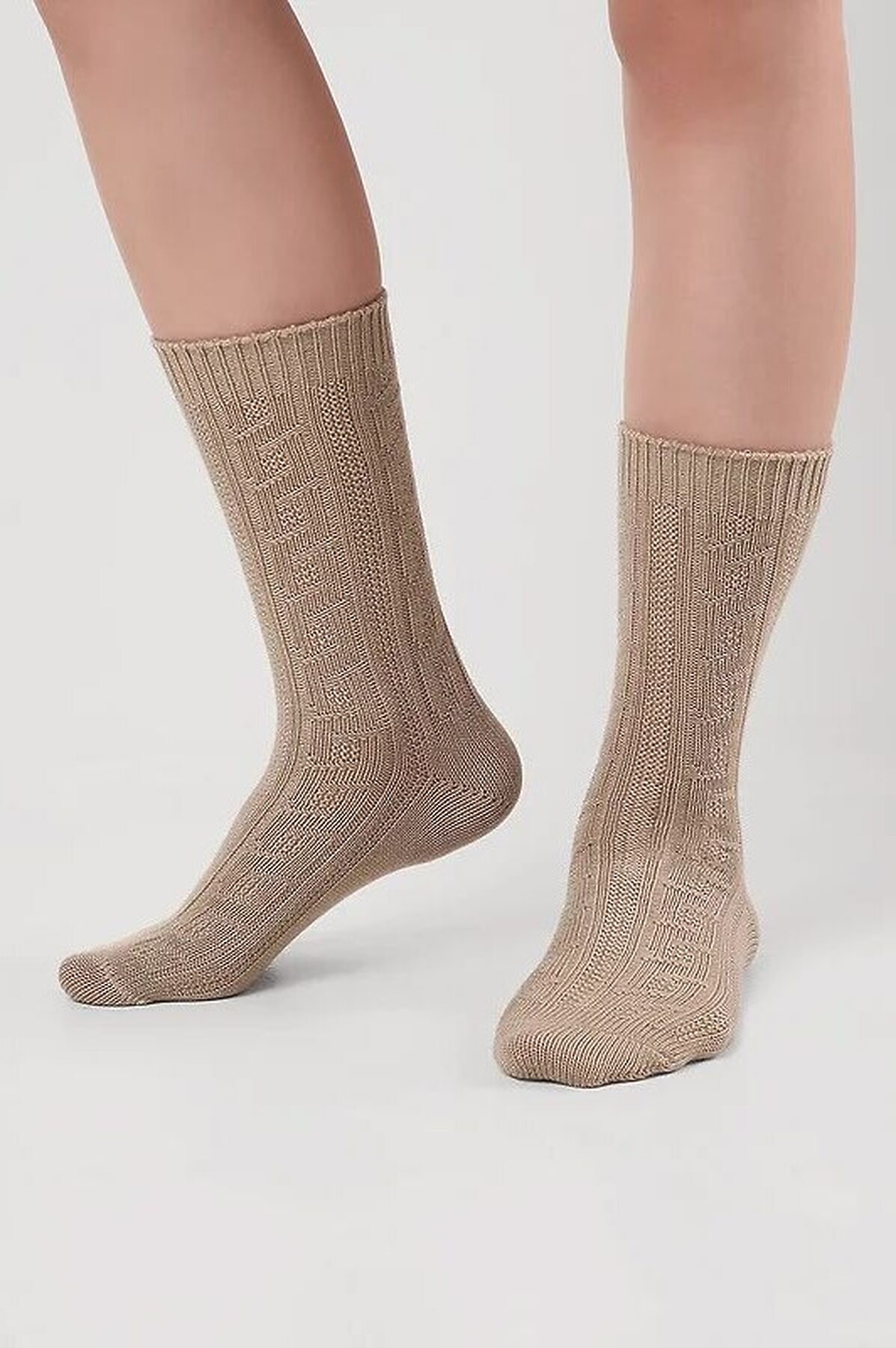 Женские объемные носки из вискозы с рисунком косы.
