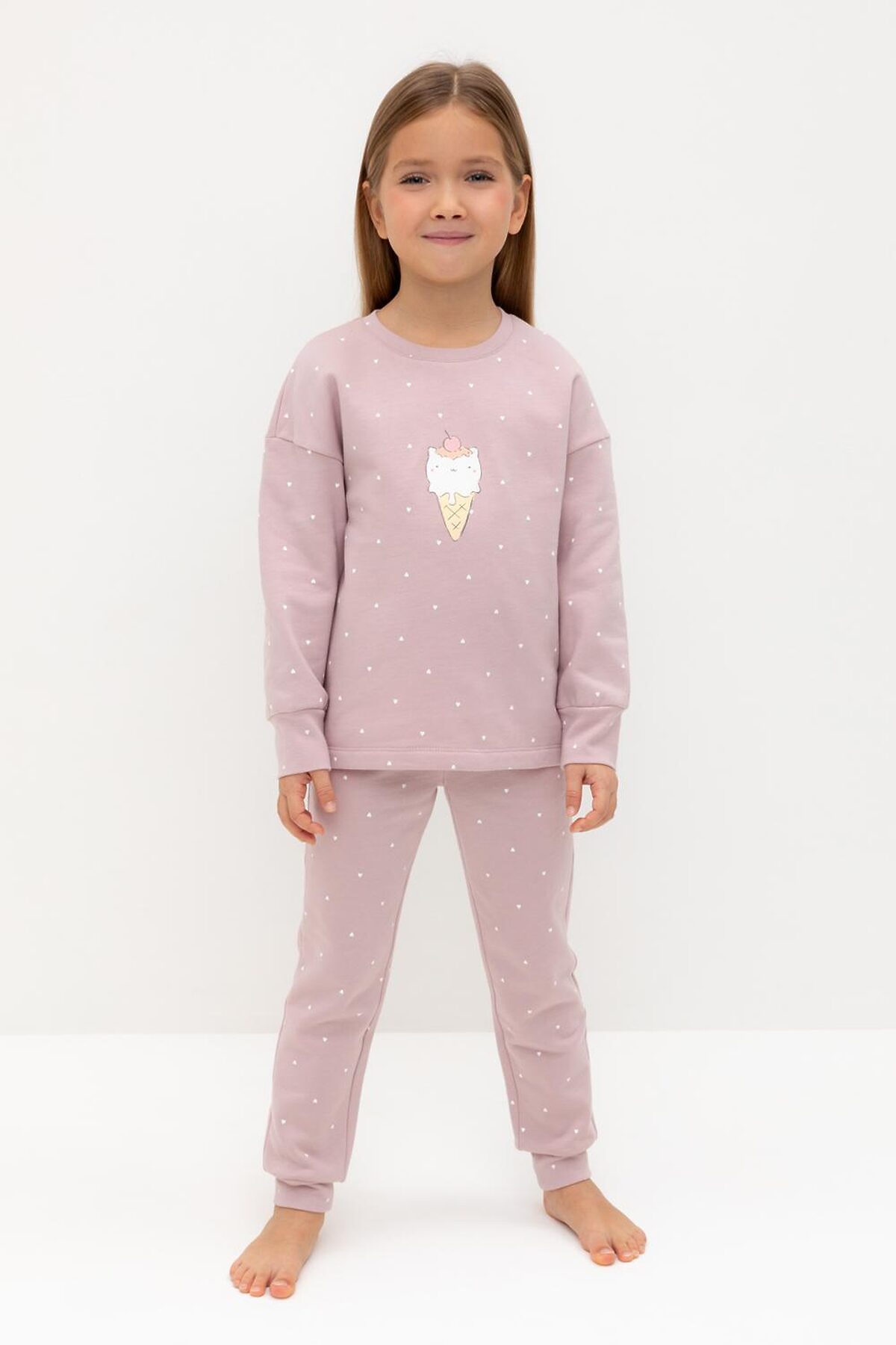 Трикотажная пижама с начёсом из натурального хлопка. Джемпер с длинными спущенными рукавами и брюки с эластичной резинкой в поясе. Мягкие манжеты на рукавах и по низу брюк. Оригинальные набивка и принт выполнены из стойких гипоаллергенных текстильных гипоаллергенных красителей. Изделие сохраняет цвет и форму после многократных стирок. Все трикотажные полотна производятся в соответсвии с нормами швейцарского сертификата ЭкоТекс.