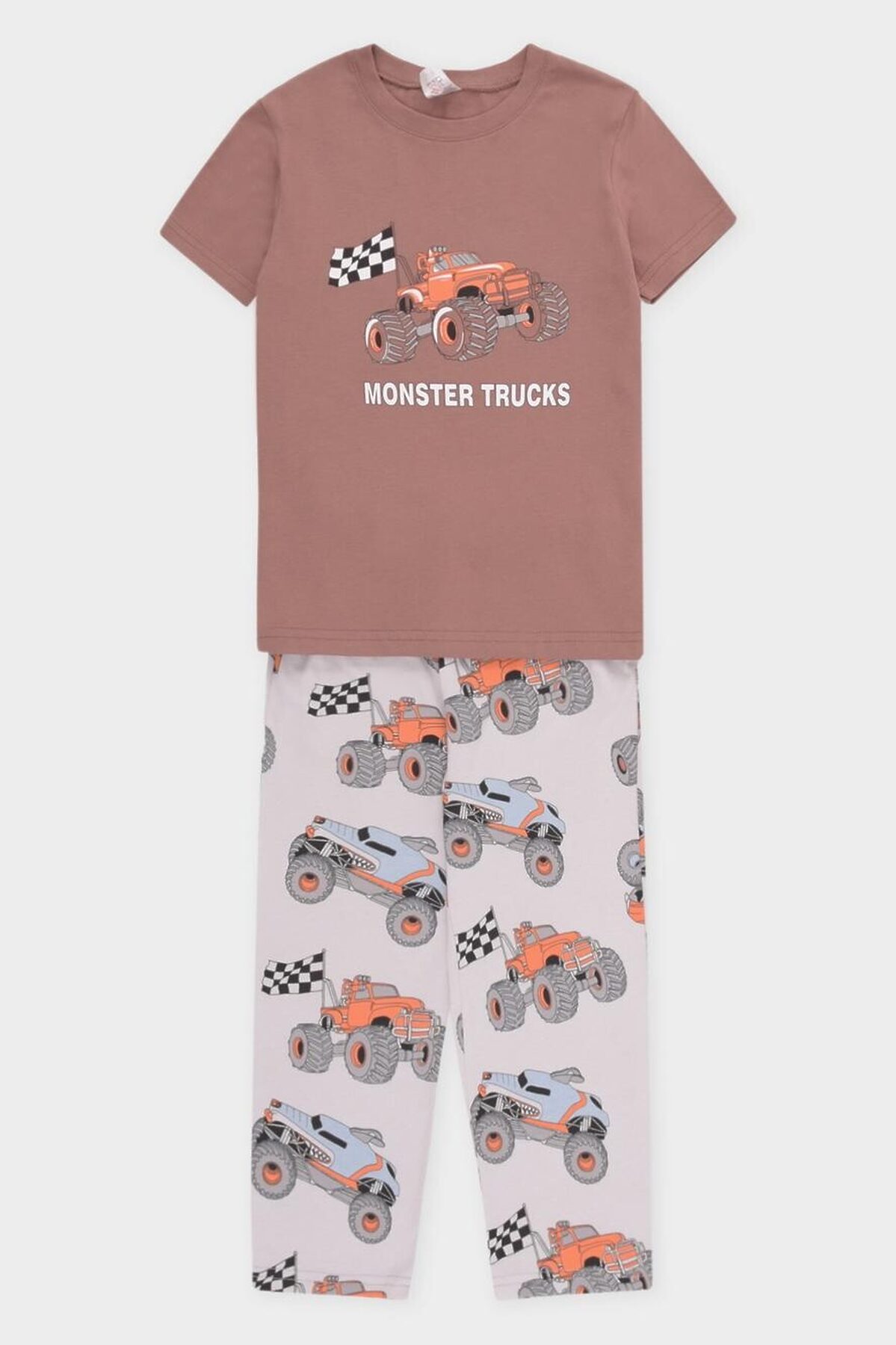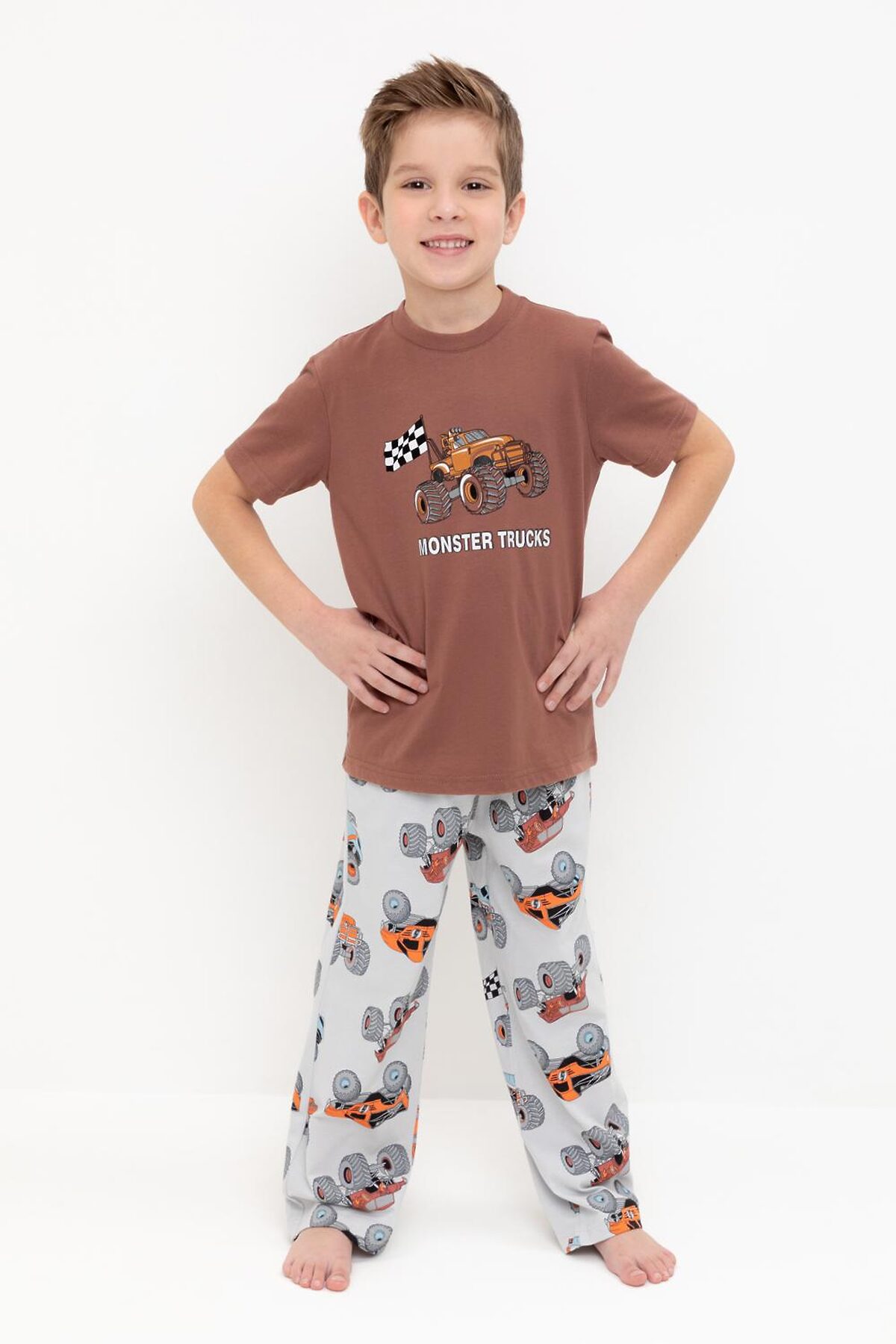 Трикотажная пижама из натурального хлопка. Футболка с короткими втачными рукавами и прямые брюки с эластичной резинкой в поясе. Оригинальные набивка и принт выполнены из стойких гипоаллергенных текстильных гипоаллергенных красителей. Изделие сохраняет цвет и форму после многократных стирок. Все трикотажные полотна производятся в соответсвии с нормами швейцарского сертификата ЭкоТекс.