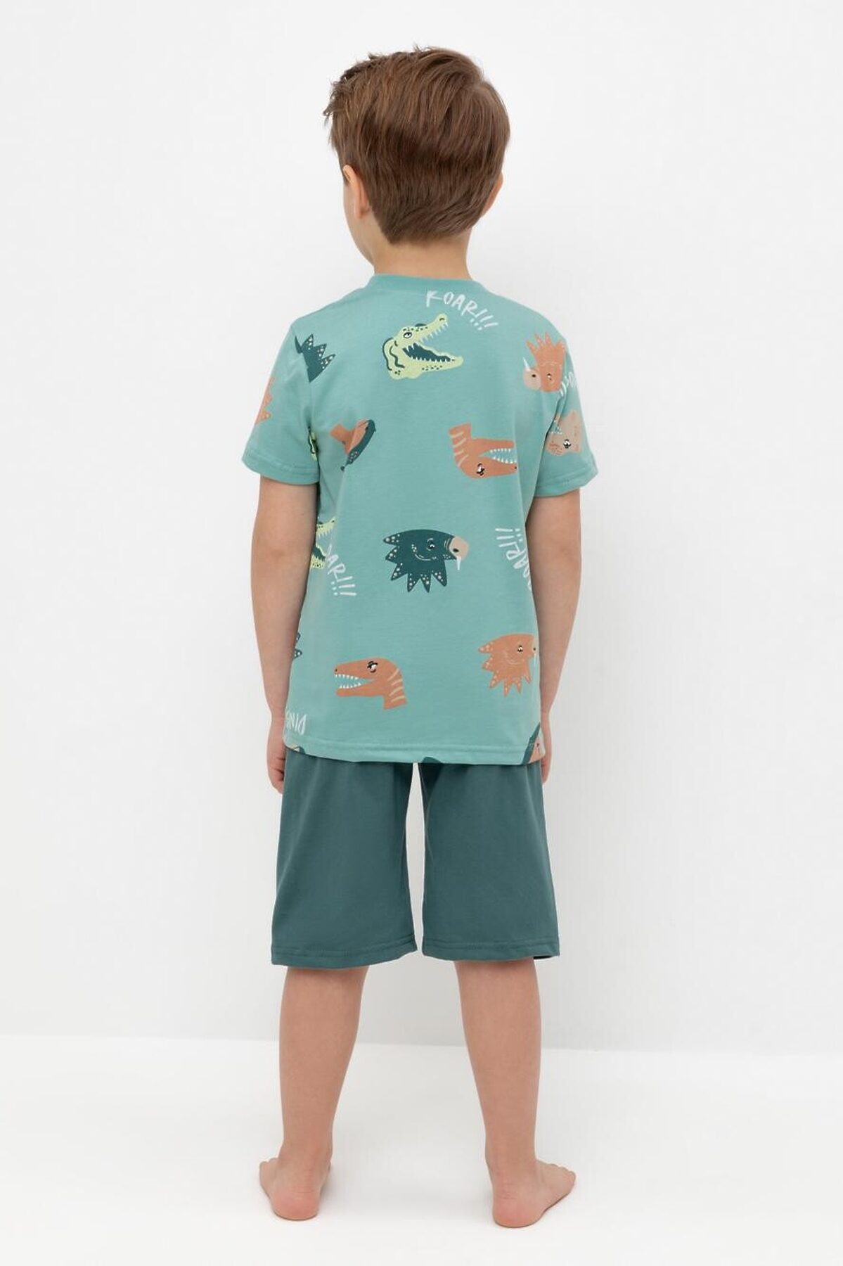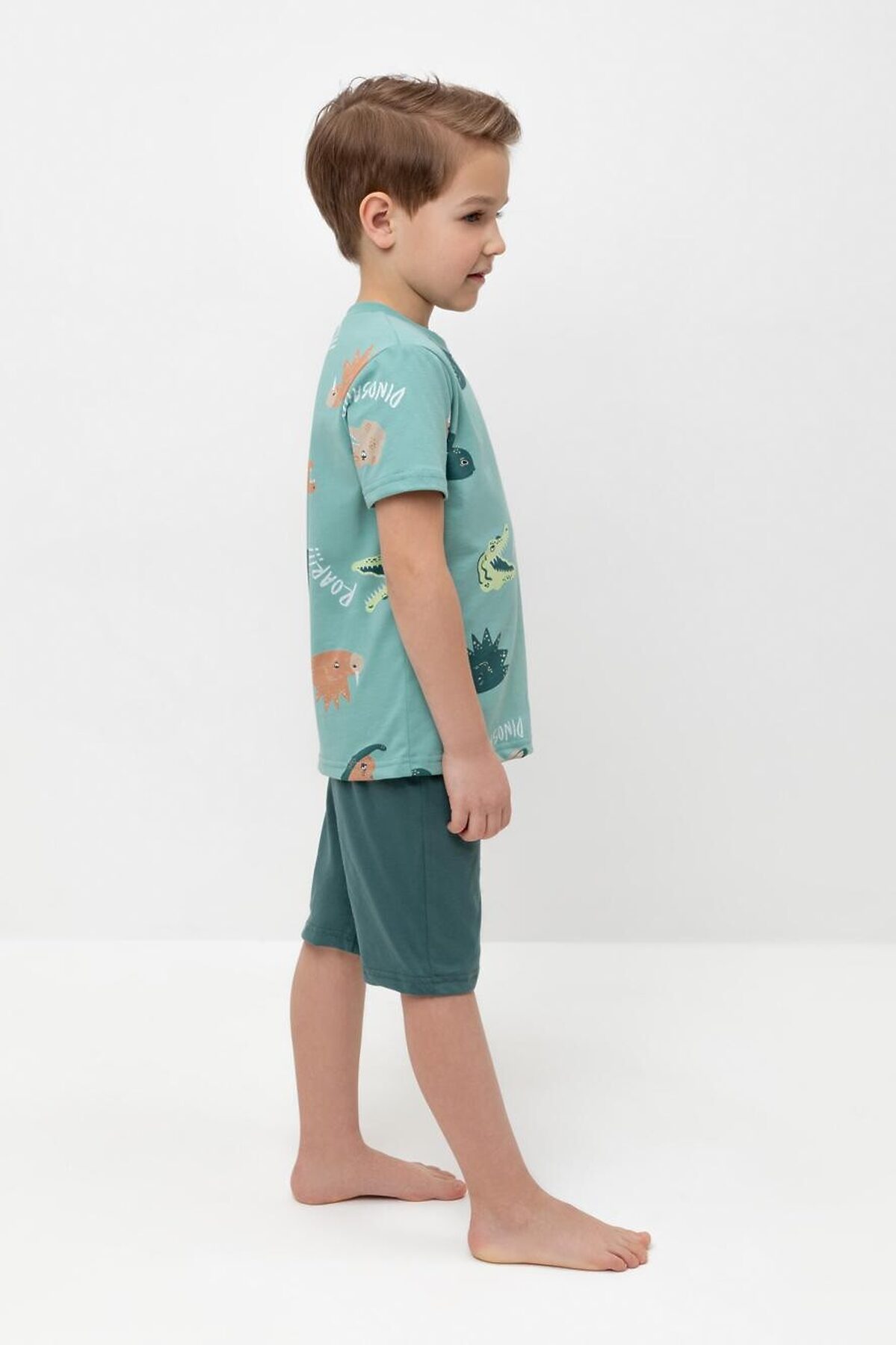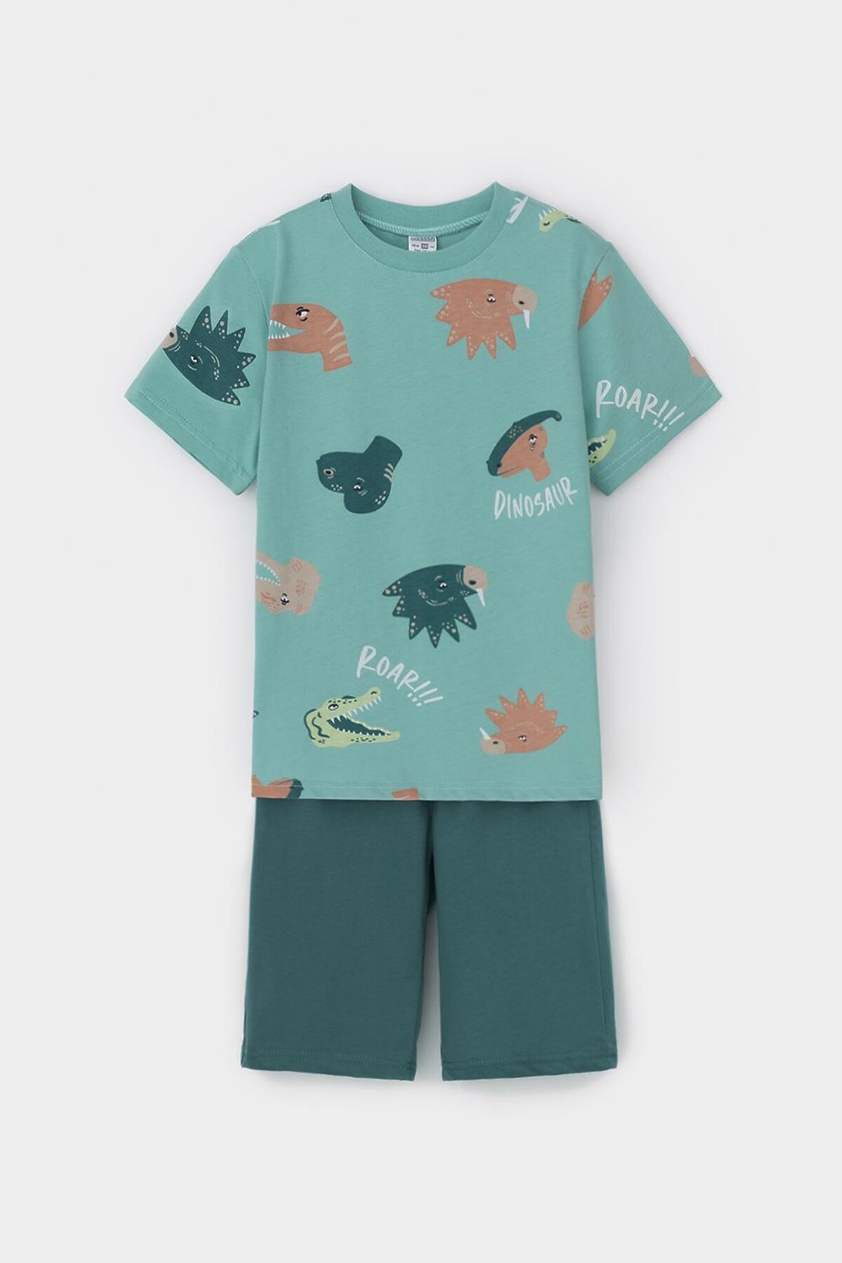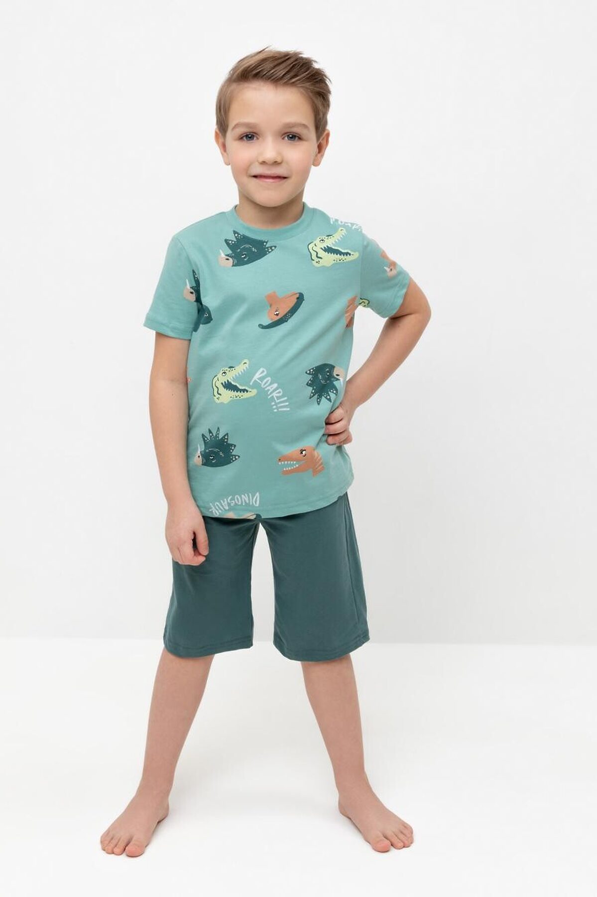 Трикотажная пижама из натурального хлопка. Футболка с короткими втачными рукавами и шорты с эластичной резинкой в поясе. Оригинальная набивка выполнена из стойких гипоаллергенных текстильных гипоаллергенных красителей. Изделие сохраняет цвет и форму после многократных стирок. Все трикотажные полотна производятся в соответствии с нормами швейцарского сертификата ЭкоТекс.