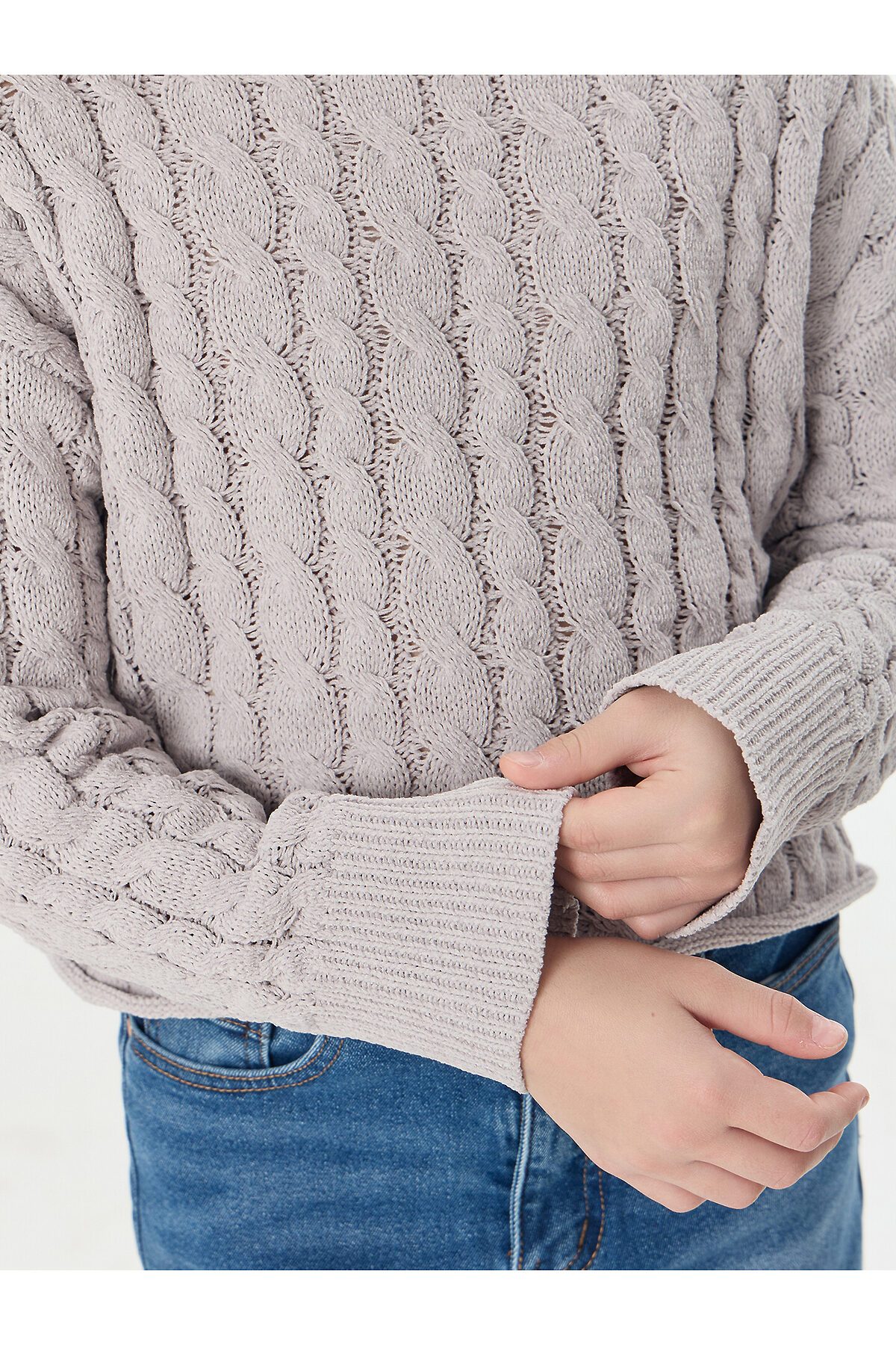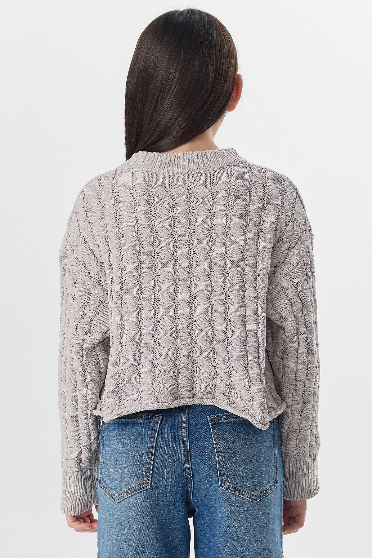 Объемный узор «косичка» придает джемперу текстуру и делает образ более выразительным. Универсальный цвет легко комбинируется с другими оттенками в гардеробе, позволяя создавать разнообразные стильные комбинации. Джемпер не мнется, сохраняет форму после стирок и быстро сохнет. Практичный выбор для школы, прогулок или отдыха — в нем ваша дочь будет чувствовать себя комфортно и стильно в любой ситуации.