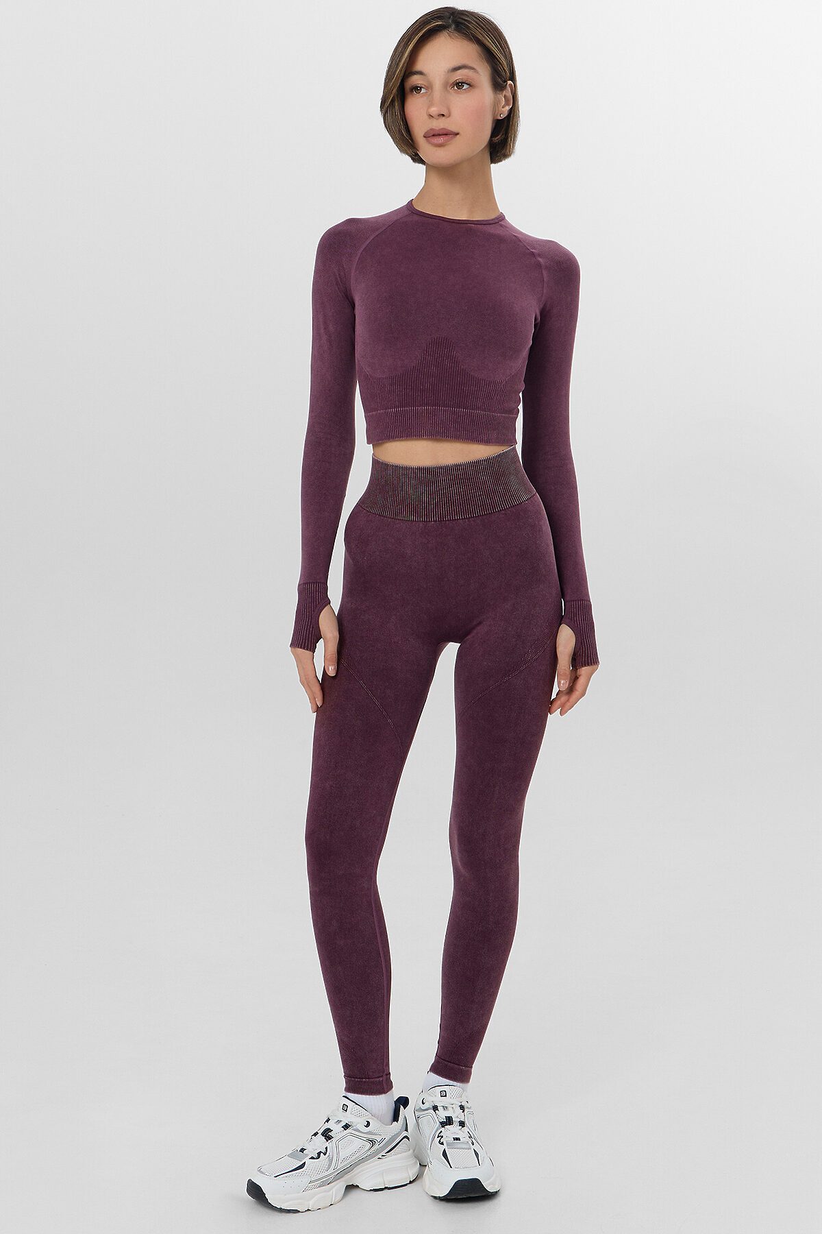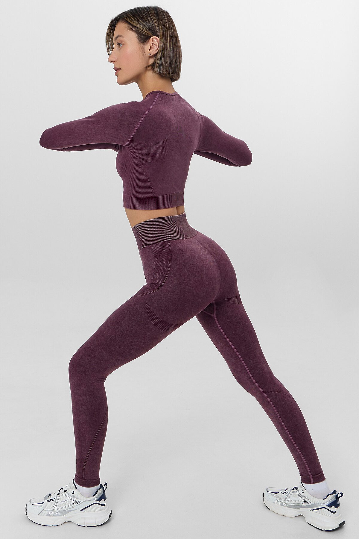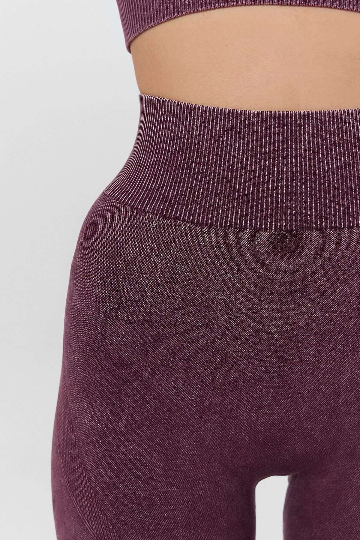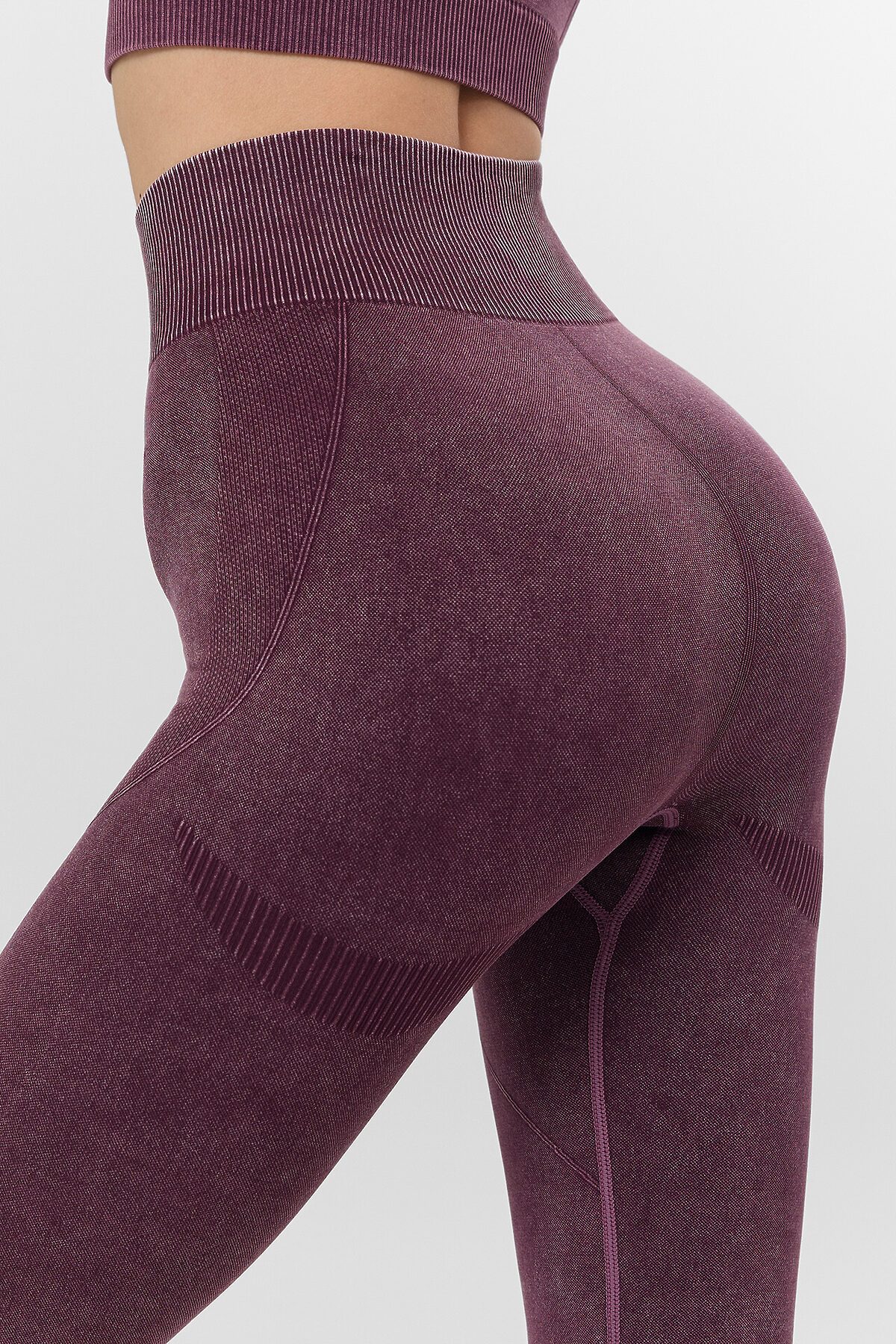 Бордовые женские леггинсы визуально корректируют силуэт, мягко подчеркивая талию и линию бедер. Модель с высокой посадкой обеспечивает комфортную поддержку, а специальный крой шва на ягодицах подчеркивает естественную красоту фигуры. Эластичный материал плотно облегает фигуру, сохраняя полную свободу движений.