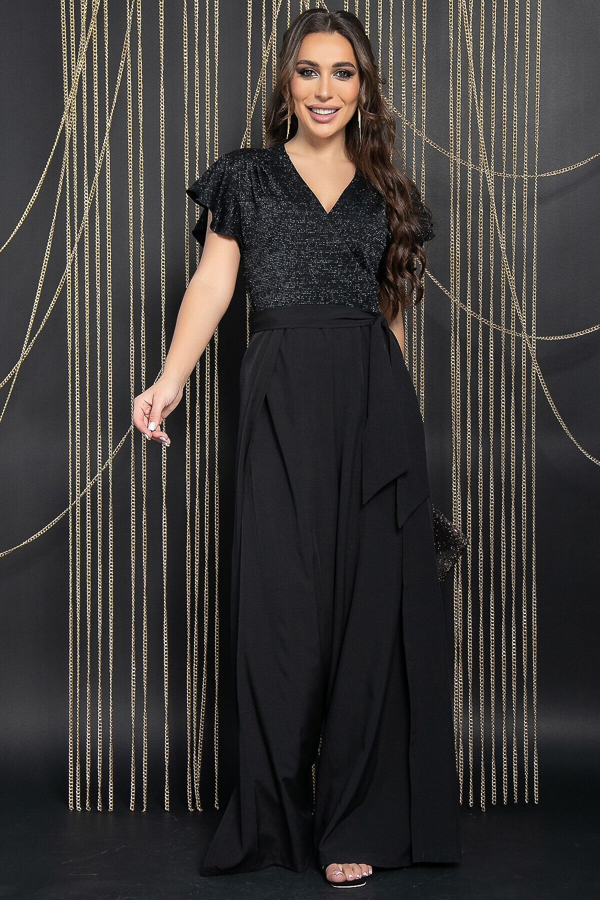 Шикарный комбинезон полуприлегающего силуэта с укороченным рукавом подходит для любой фигуры. Умеренно-глубокий V-образный вырез сбалансирован макси-длиной и полностью закрытой спинкой. Застежка на потайной молнии по спинке. Легкая драпировка в области груди добавляет немного объёма в нужном месте, а пояс на шлевках в комплекте эффектно подчеркивает линию талии, что обеспечит вашему образу утонченный стиль. Запахивающиеся штаны придают всему образу легкость и чувственность, добавляя неотразимости.