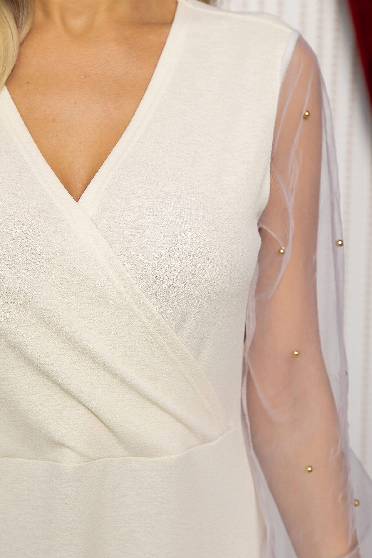 Роскошное платье, которое идеально подойдет для любого торжественного мероприятия. Модель с отрезной талией и верхней частью на запах с V-образным вырезом выгодно подчеркивает изящество шеи. Длинные сетчатые рукава украшены золотистыми бусинами, придавая образу элегантность и нотку роскоши. В комплект входит пояс из основной ткани, который акцентирует талию, а юбка А-силуэта создает женственный и утонченный силуэт. Это платье станет отличным выбором для свадьбы, выпускного вечера, праздничного события или романтического свидания, делая вас королевой любого мероприятия!