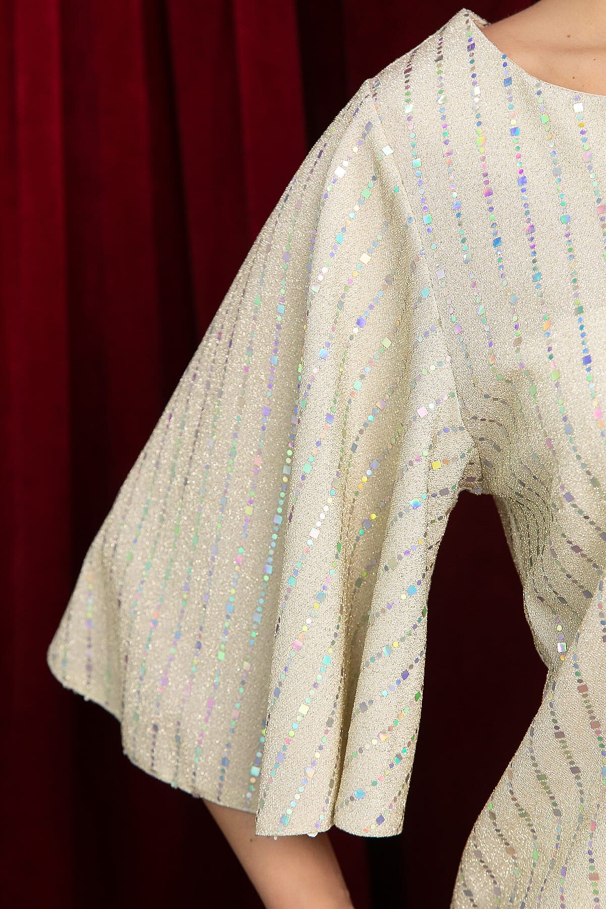 Создайте неповторимый образ для любого торжественного мероприятия: будь то новогодний вечер, свадьба или корпоративная вечеринка! Эта блузка свободного силуэта с эффектными рукавами «крылышко» обязательно привлечёт внимание к вашему наряду. На спинке блузки расположен декоративный вырез, придающий ей особый шарм. Она легко сочетается как с юбкой, так и с брюками, делая вас центром внимания. В этой блузке вы не останетесь незамеченной!