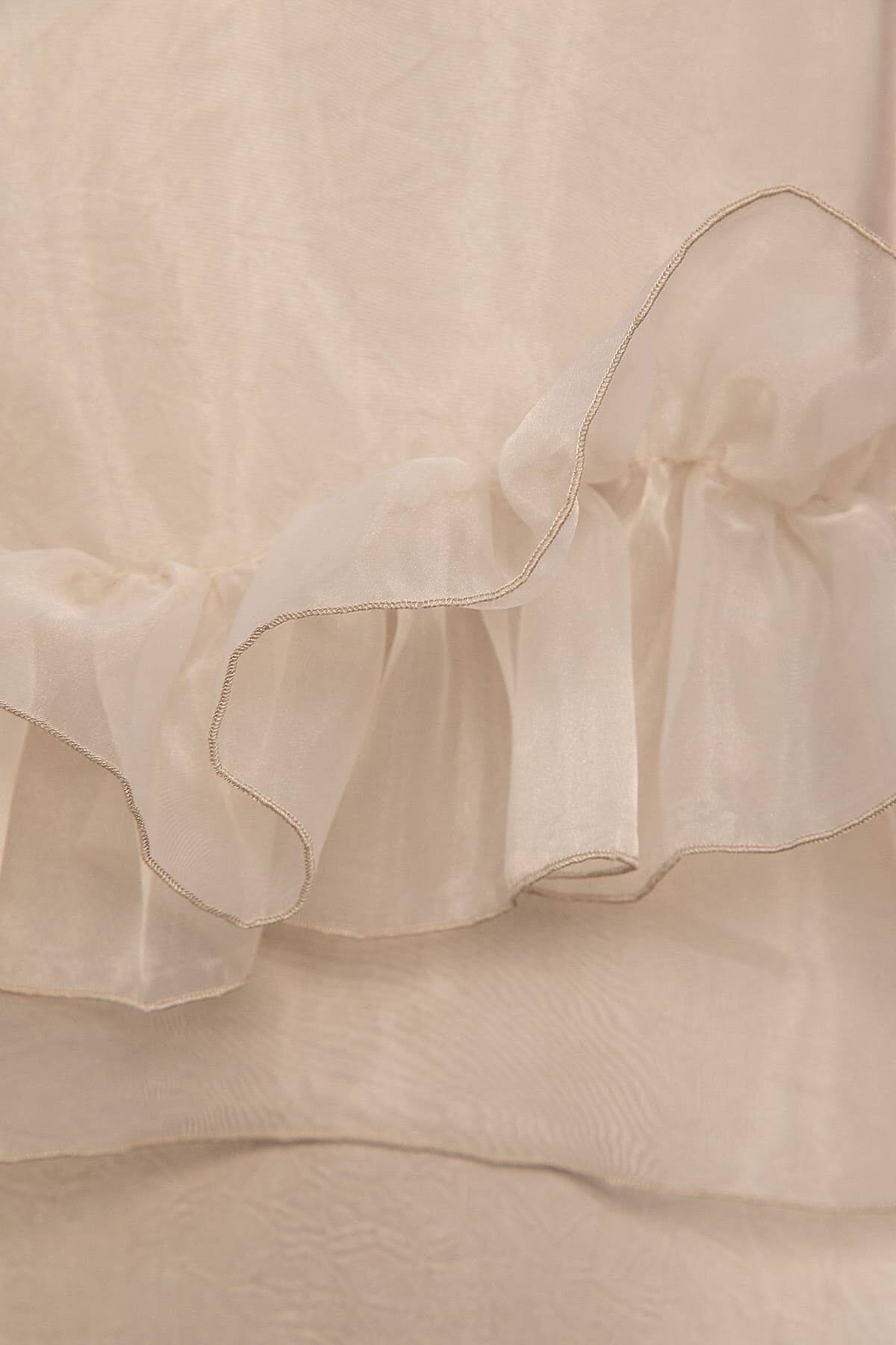 Преобразите свой образ с этим утонченным нарядом, который включает в себя платье-комбинацию и изысканную накидку. Дизайн дополнен удобными регулируемыми бретелями, что позволяет идеально адаптировать костюм к особенностям вашей фигуры. Верхняя часть наряда украшена воздушной накидкой из органзы, придающей образу легкость и объем. Накидка декорирована изящными воланами, которые добавляют ей романтичности и очарования. Этот комплект идеально подойдет для торжественных мероприятий, праздников или романтических вечеров. Завершите свой уникальный образ стильными аксессуарами и обувью!