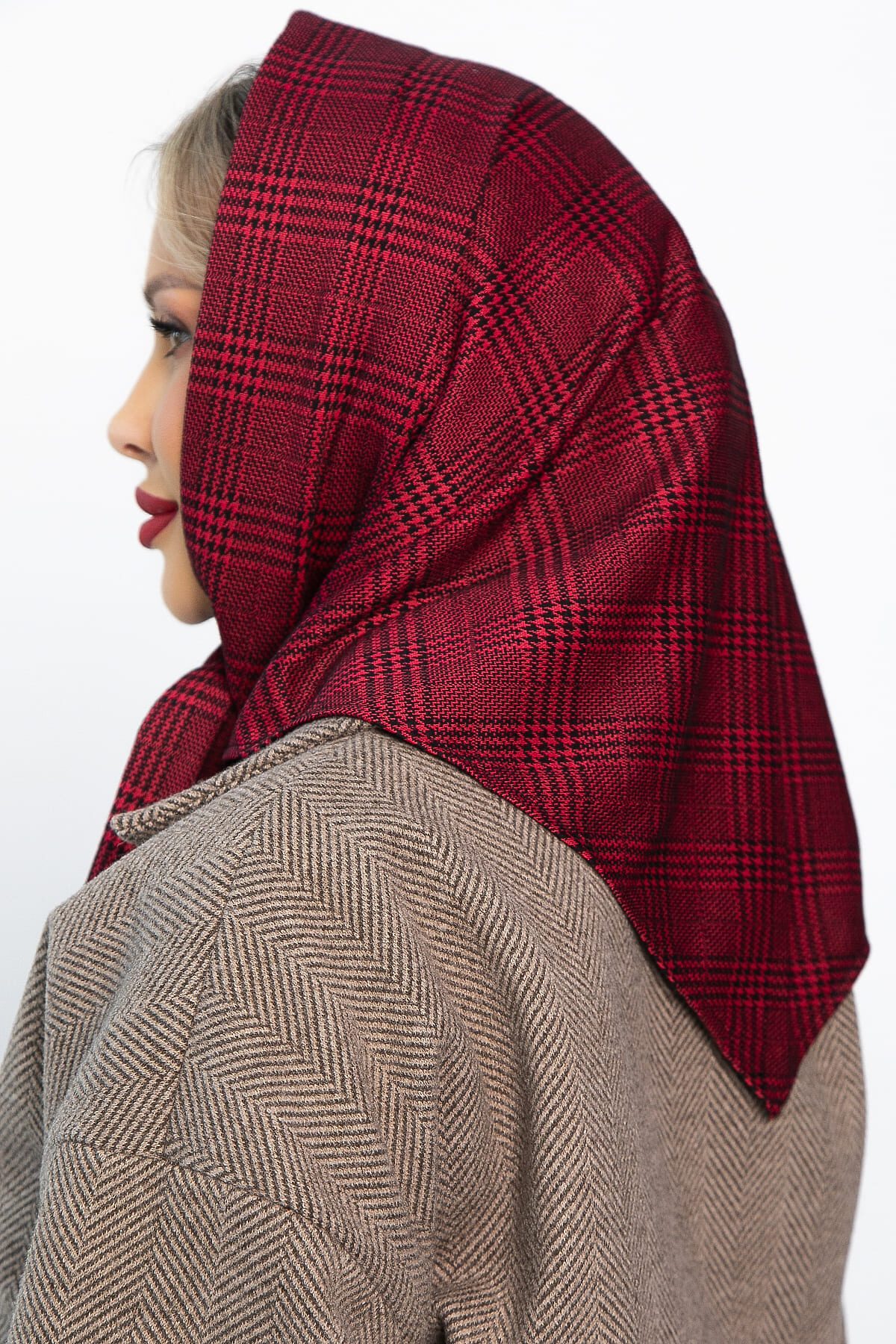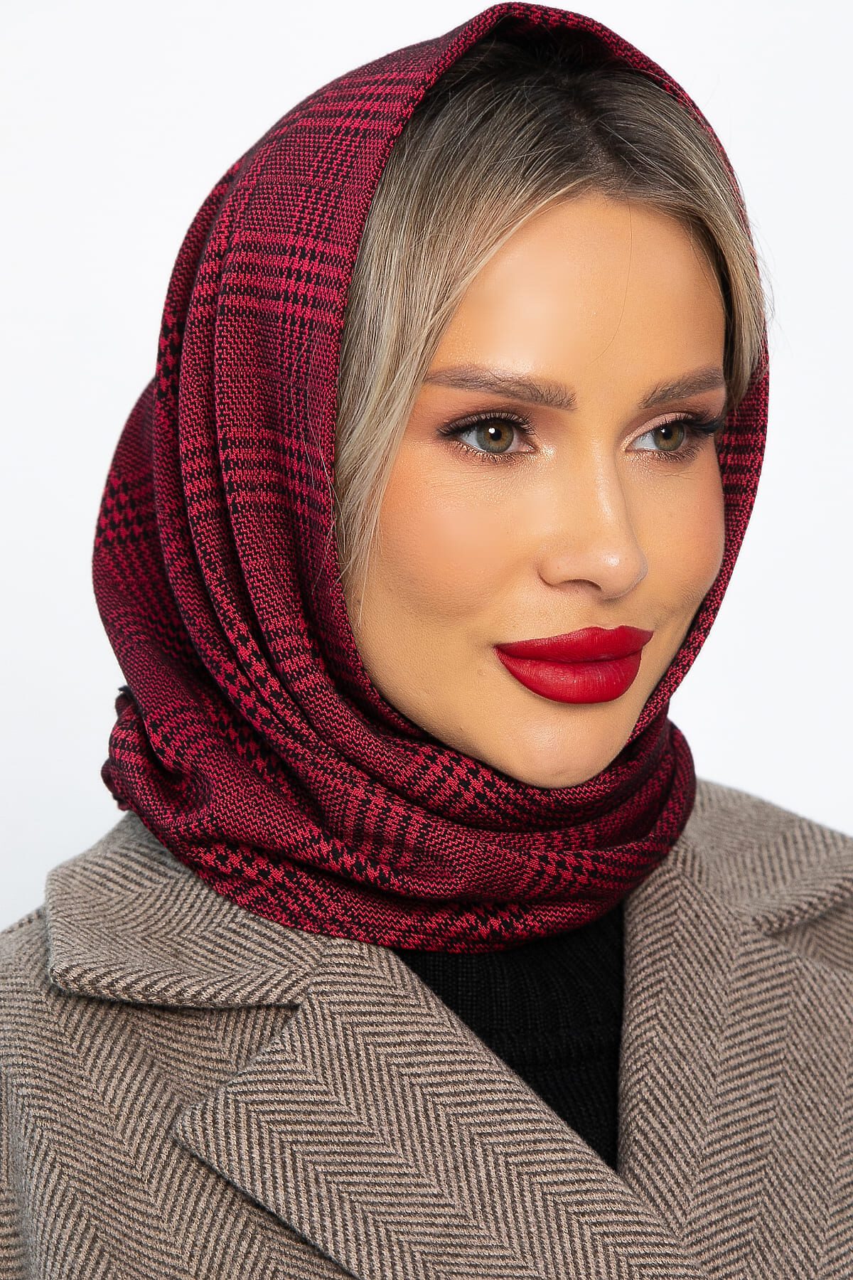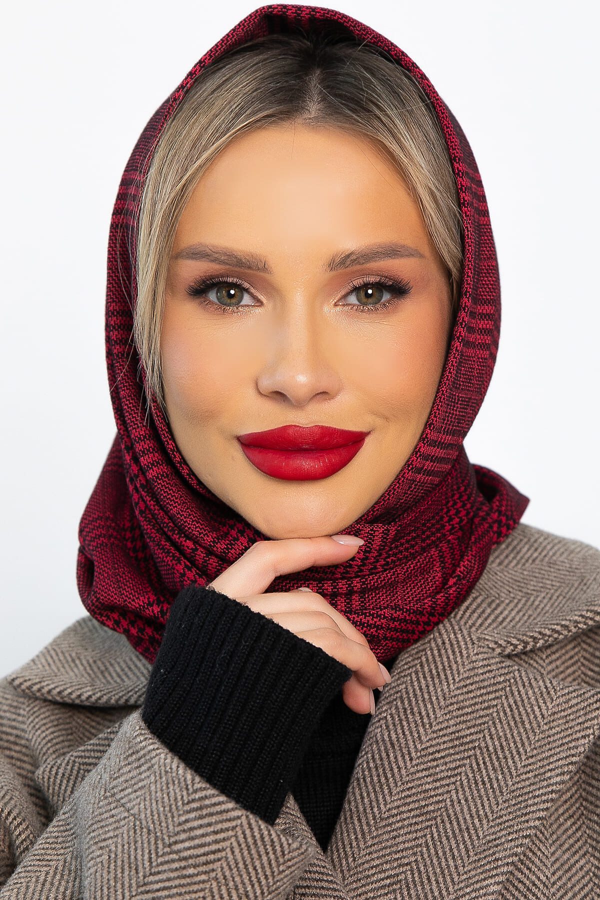 Косынка с отворотом LADY TAIGA, бордовая клетка