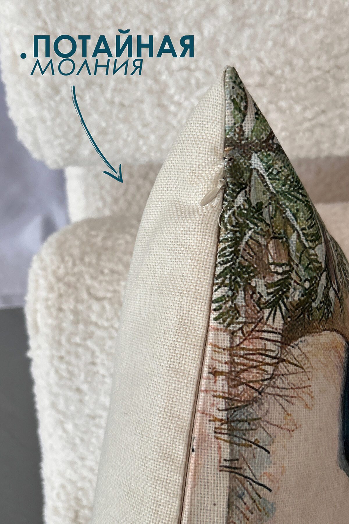 Наволочка 4545 см выполнена из качественного полотна рогожка. Лицевая сторона украшена новогодним рисунком, который придаёт интерьеру глубину и динамику, а обратная сторона однотонная, что облегчает сочетание с другими элементами декора. Ткань мягкая, гладкая и очень приятная на ощупь, дарит тактильный комфорт при прикосновении и выглядит элегантно вблизи. Рогожка обеспечивает износостойкость, устойчивость к выцветанию и простоту ухода наволочка легко стирается, быстро сохнет и сохраняет форму даже после многократных стирок. Потайная молния аккуратно спрятана в шве и не нарушает целостности узора, позволяя быстро снять чехол для стирки и при этом сохранять аккуратный внешний вид. Изделие мало мнётся и долговечно, поэтому прекрасно подходит для повседневного использования в спальне, гостиной или детской, а также станет стильным и практичным подарком. Сочетание визуальной выразительности рисунка с Новым годом и нежной гладкой ткани делает эту наволочку универсальным элементом, который добавит уюта и современности любому интерьеру. Отличный подарок на Новый год.