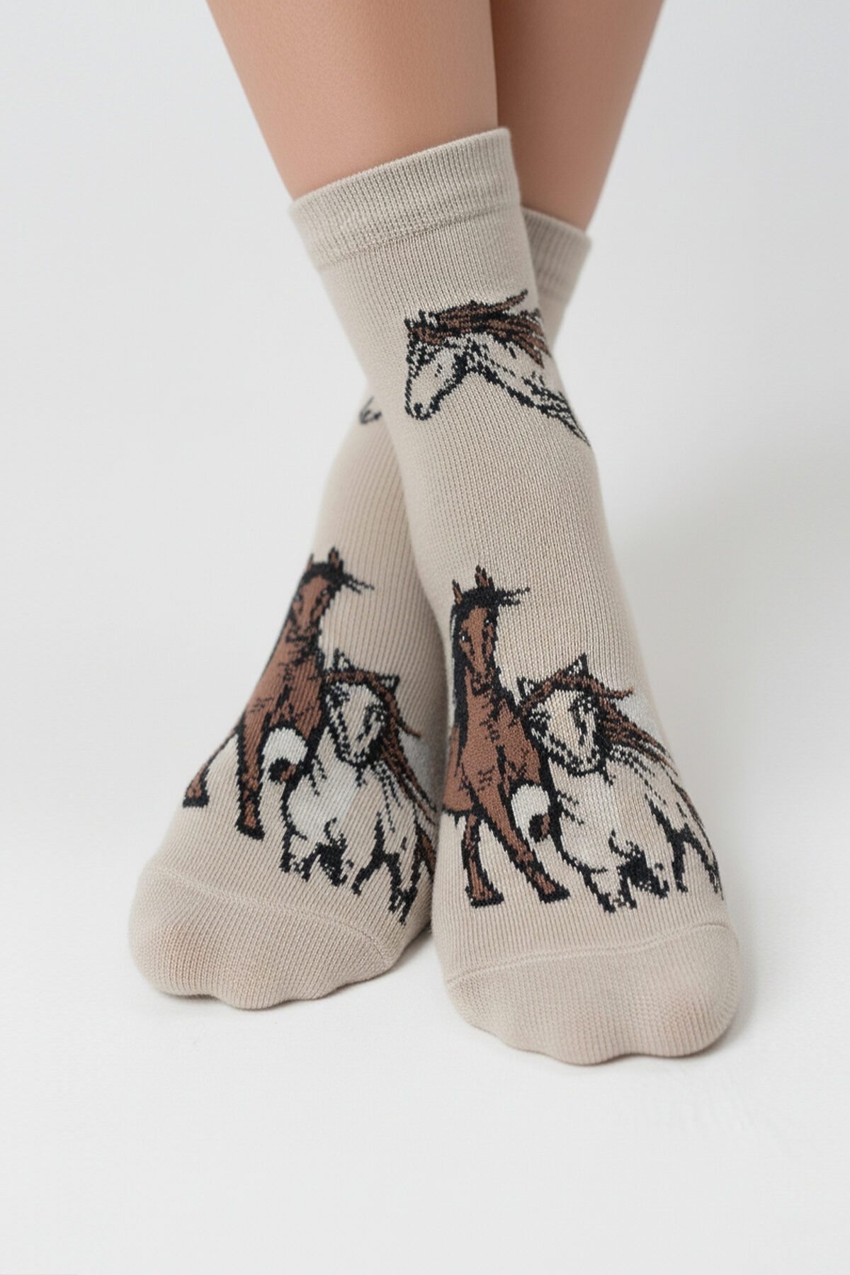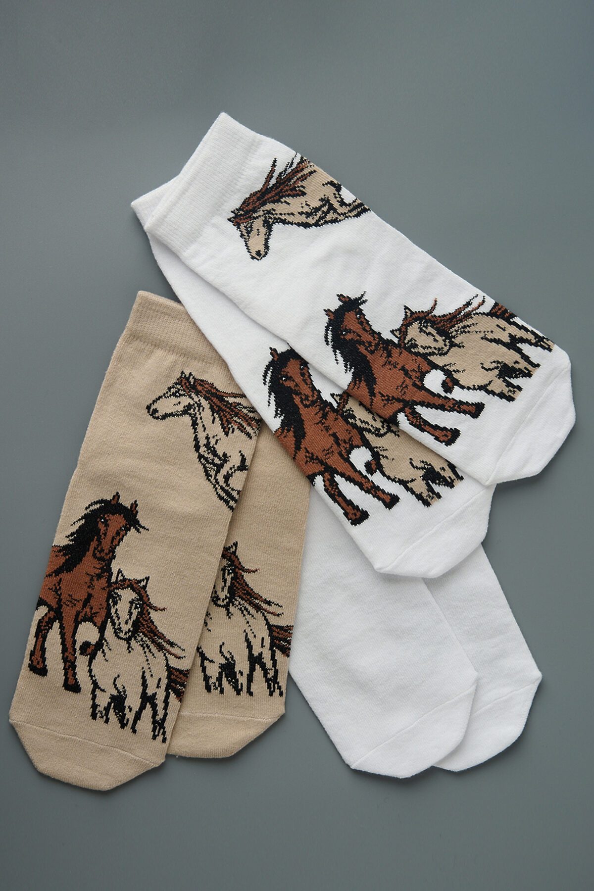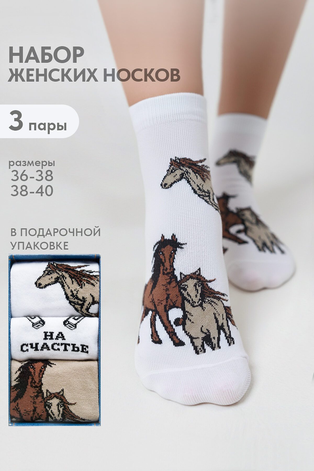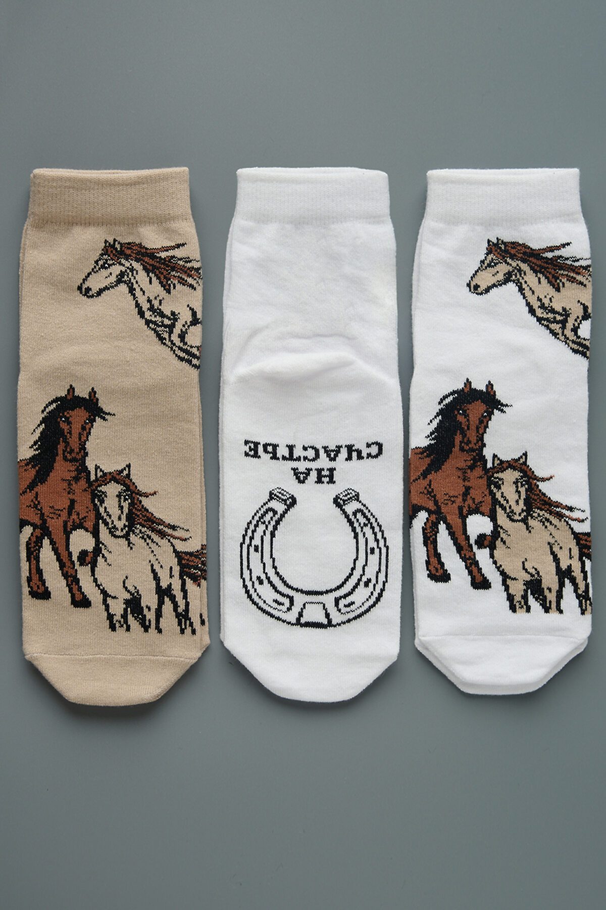 Носки стандарт Лошадки (набор 3 пары) НАТАЛИ, белый, бежевый