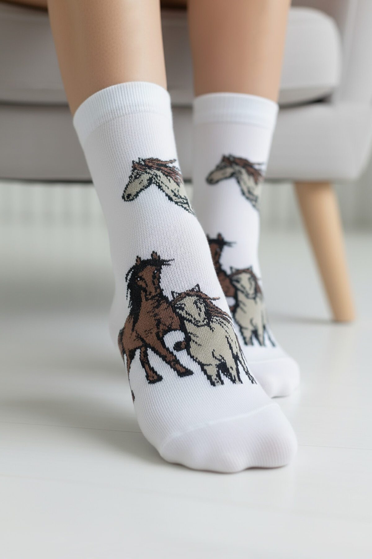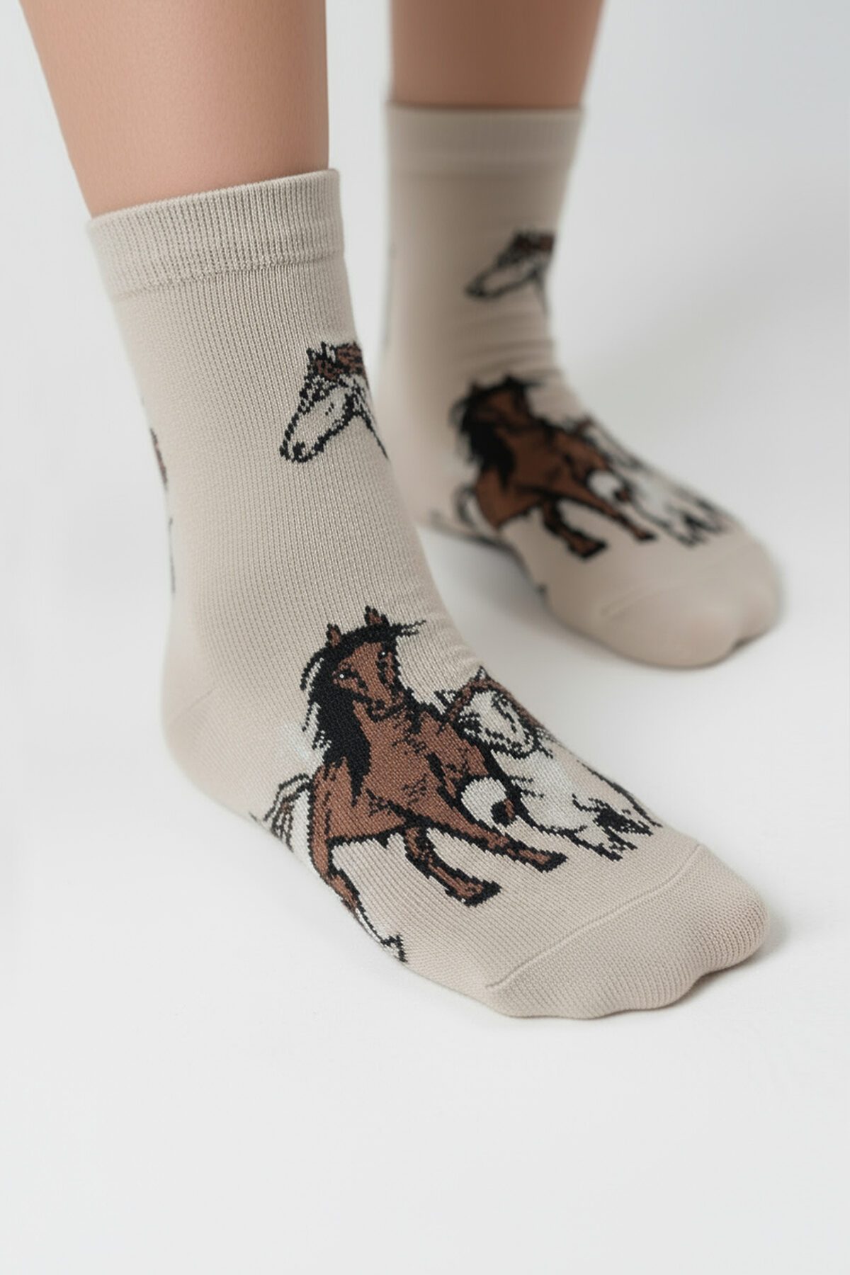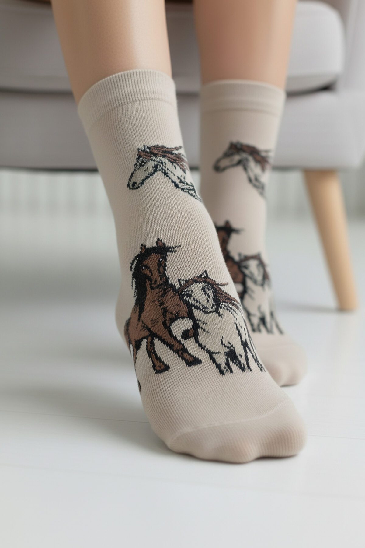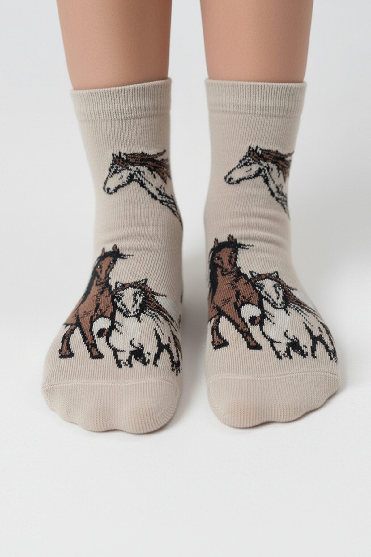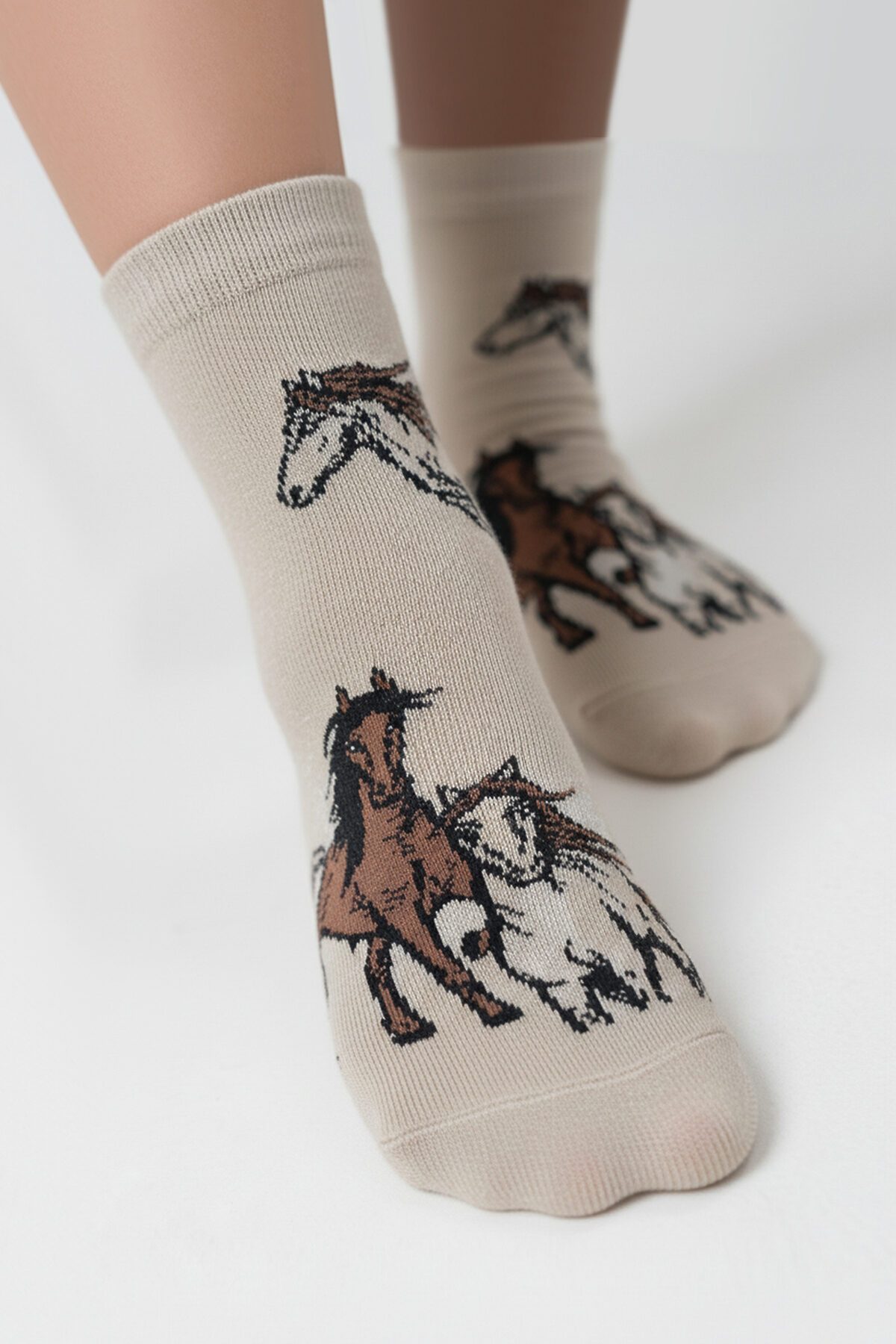 Носки стандарт Лошадки (набор 3 пары) НАТАЛИ, белый, бежевый