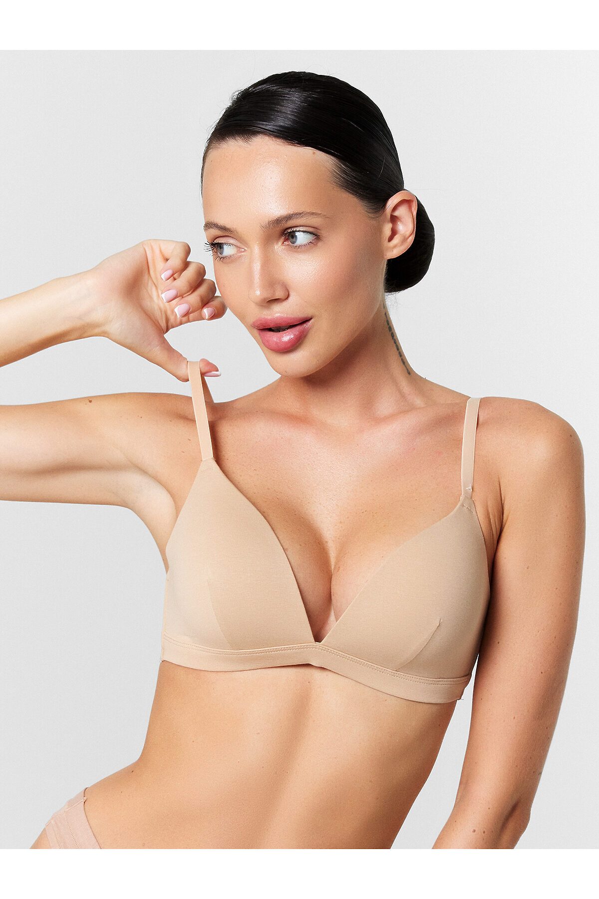 Комфортный бюстгальтер T-Shirt из дышащего хлопкового полотна — натурального гипоаллергенного материала. Благодаря формованным чашкам без push-up и косточек бюстгальтер практически не ощущается на теле. Повседневная модель с привлекательным дизайном!