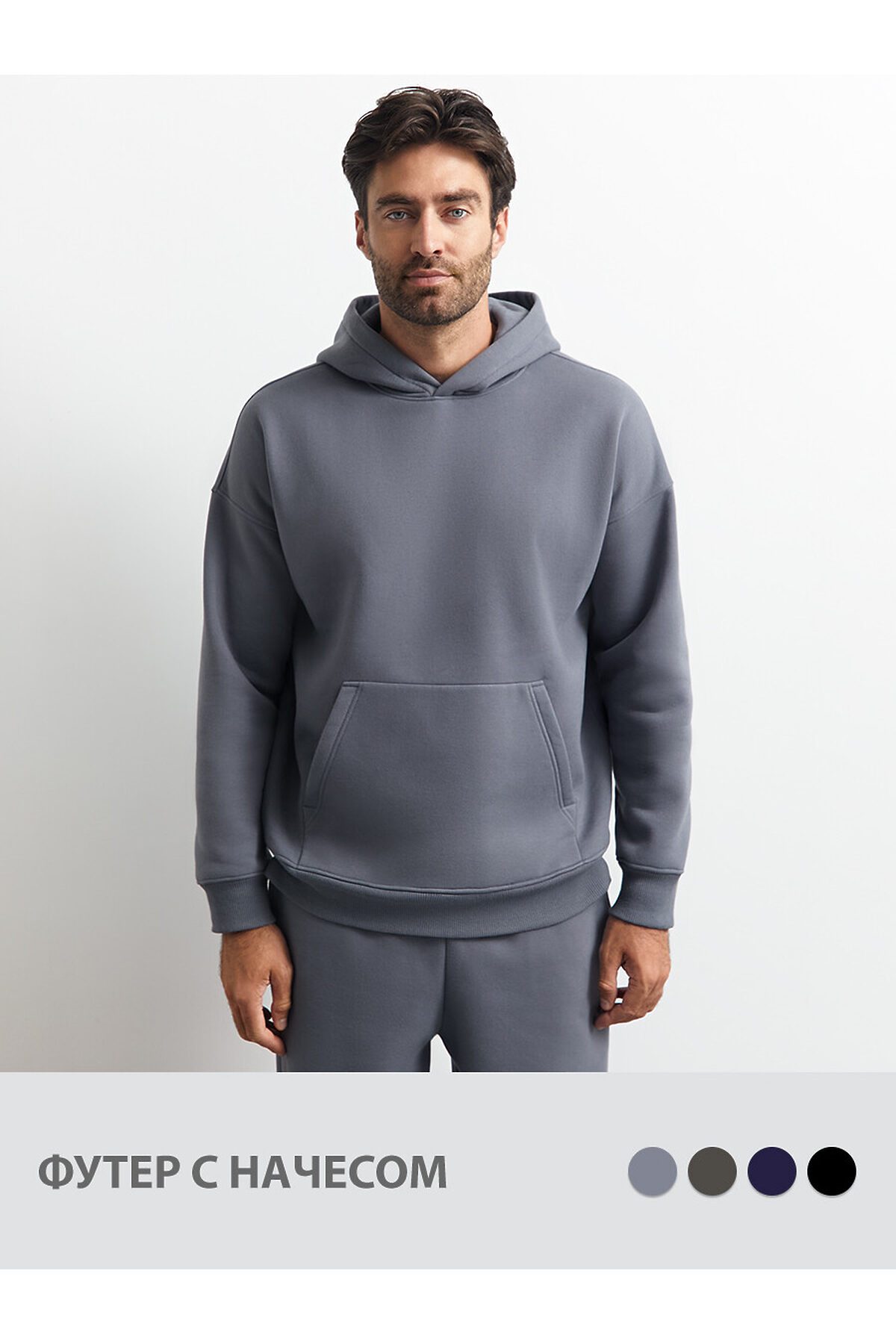 Мужское утеплённое худи свободного кроя из мягкого футера с начёсом, со спущенным плечом, длинными рукавами, капюшоном и карманом-«кенгуру» спереди. Манжеты и низ, оформленные рибаной в лаконичный рубчик, добавляют изделию текстурности и делают силуэт более графичным. Трикотажный материал на основе высококачественного хлопка хорошо пропускает воздух, приятно ощущается на теле и подходит даже для чувствительной кожи. Добавление полиэстера создает теплосберегающий эффект, а деликатная обработка швов обеспечивает дополнительный комфорт. Универсальное худи для повседневных образов: комфортное, тёплое и стильное решение на каждый день.
