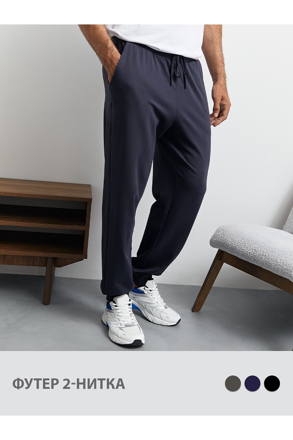 Мужские прямые джоггеры из двухниточного футера с карманами и поясом на широкой резинке. Манжеты, пояс и низ, оформленные рибаной в лаконичный рубчик, добавляют изделию текстурности и делают силуэт более графичным. Трикотажный материал на основе мягкого хлопка отлично пропускает воздух, приятно ощущается на коже и подходит даже для чувствительной кожи. Добавление эластана способствует сохранению формы изделия. Стильные и удобные джоггеры станут универсальной основой гардероба, легко вписываясь в городские, повседневные и домашние образы.