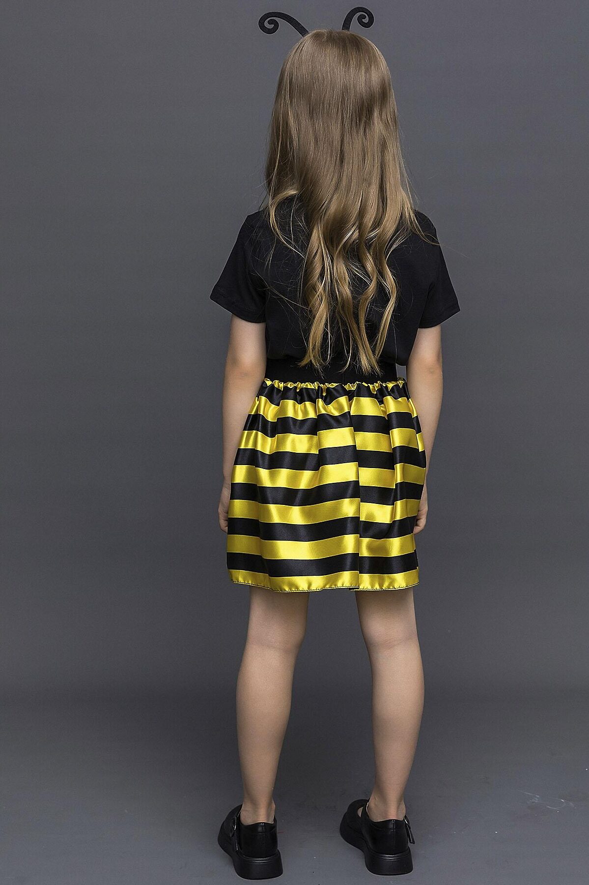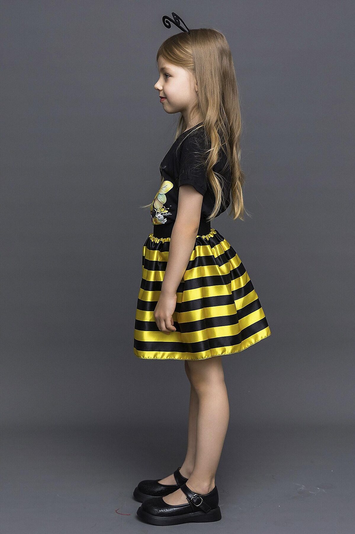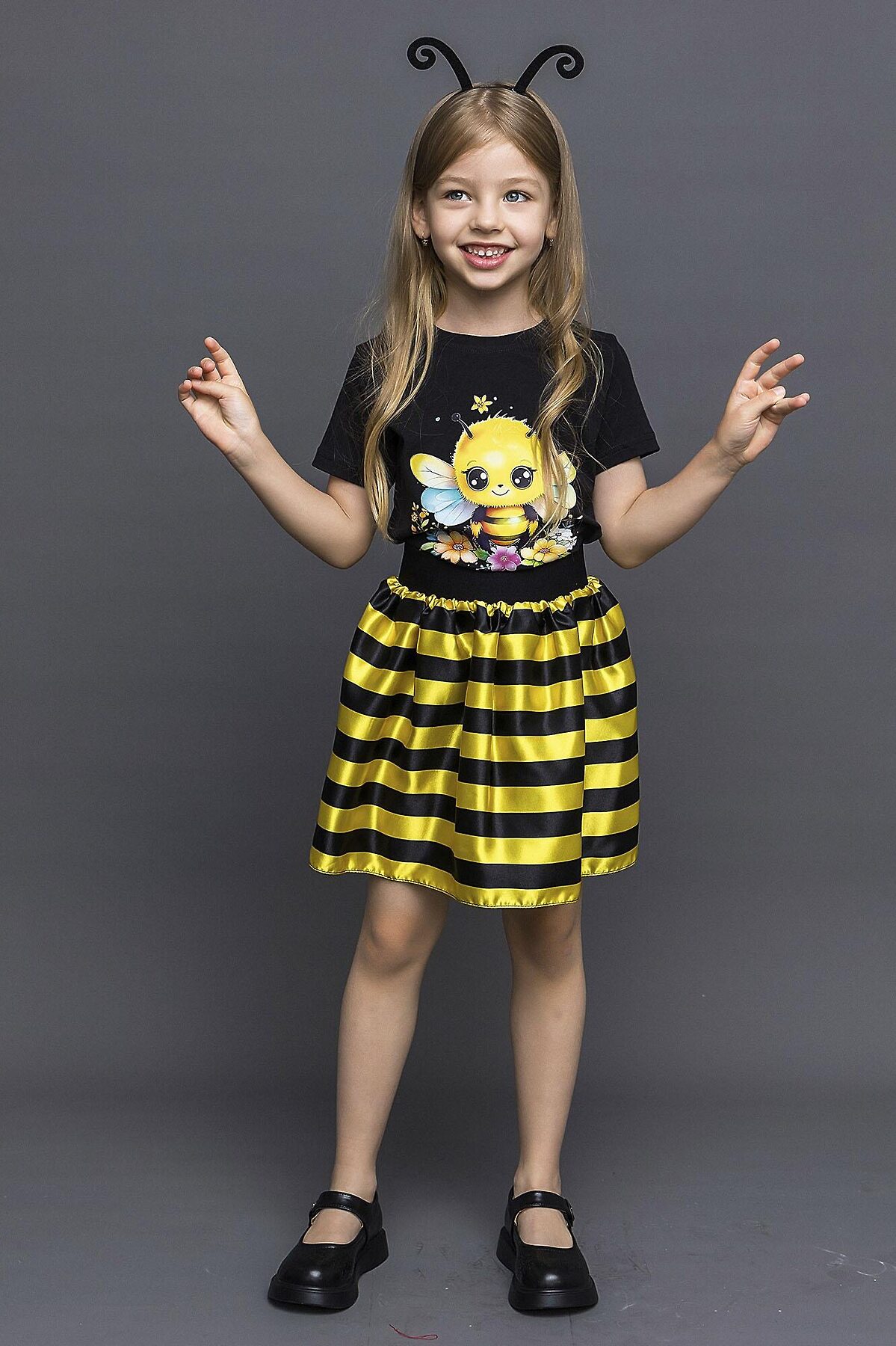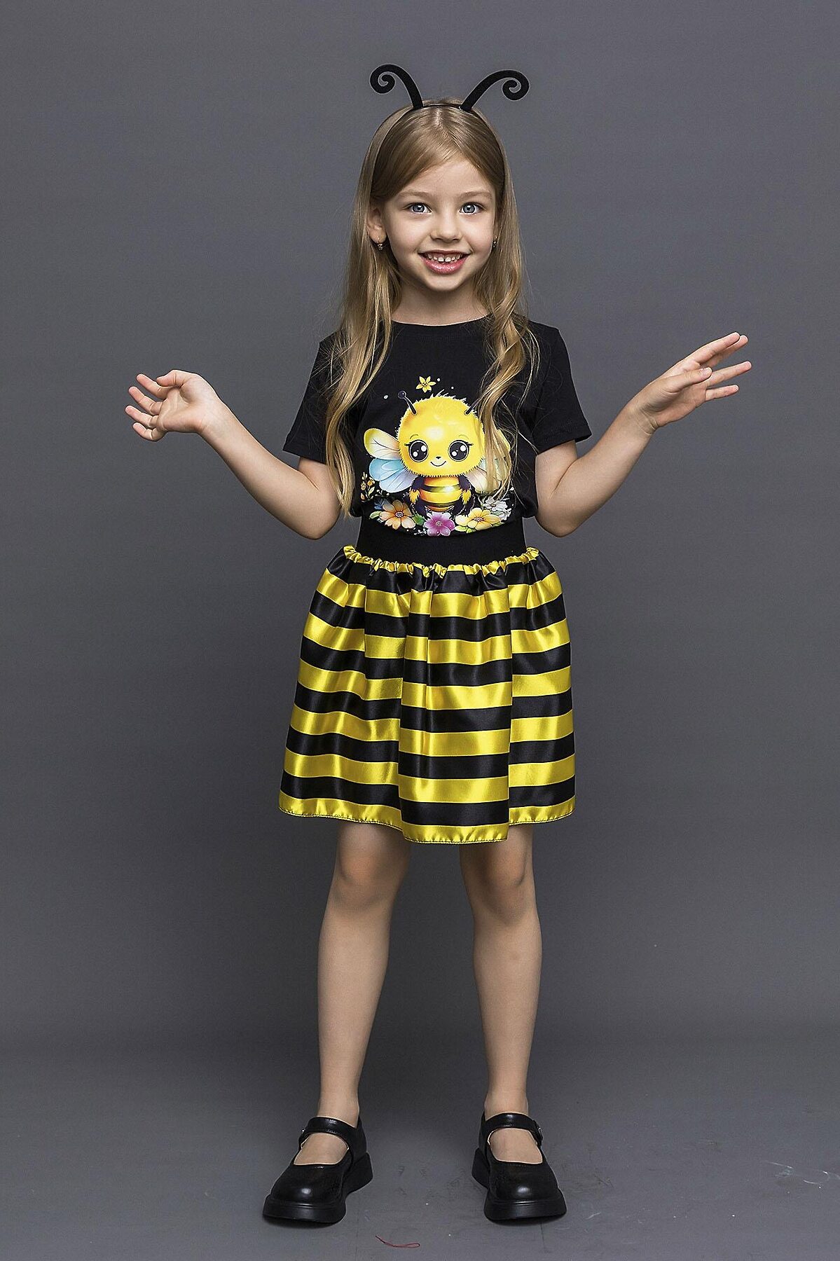 Карнавальный костюм для девочки Пчелка. В комплекте юбка в полоску, футболка с коротким рукавом, ободок с "усиками". Идеальный выбор для создания яркого и незабываемого образа.
