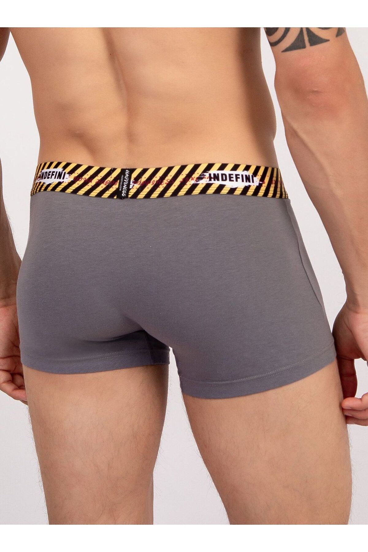 Откройте для себя мужские трусы-боксеры Indefini, созданные из инновационной смеси бамбука и хлопка. Этот материал обеспечивает отличную воздухопроницаемость и эффективно поглощает влагу, что делает их идеальными для повседневного использования. Серый цвет моделей привносит универсальность, а мягкая резинка гарантирует удобную и надежную посадку. Особенная деталь — яркий и запоминающийся принт с изображением «Пак-Ман», который добавляет элемент игривости и современного стиля. Эти трусы-боксеры станут отличным выбором для мужчин, которые ценят как комфорт, так и уникальный дизайн в своей одежде.