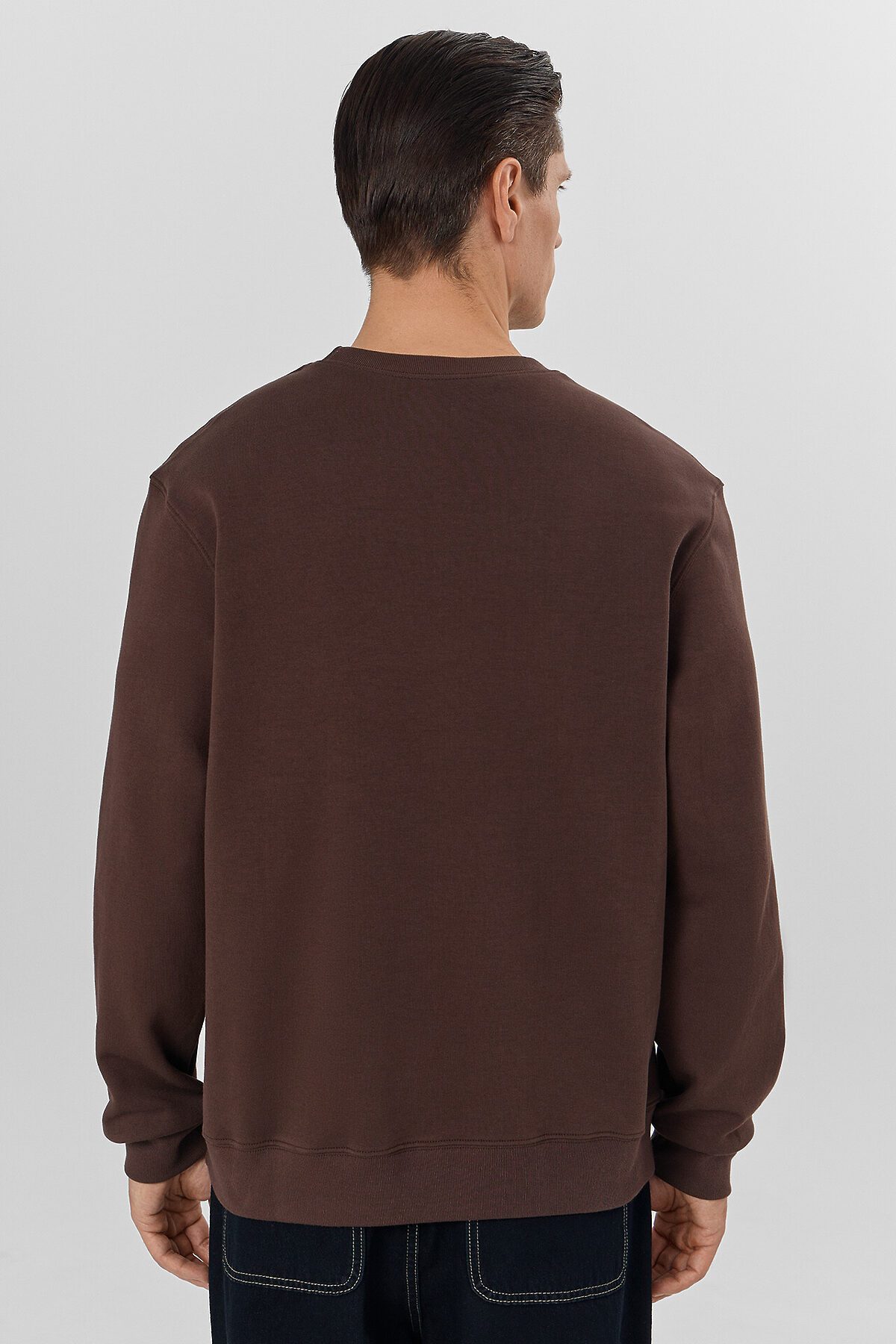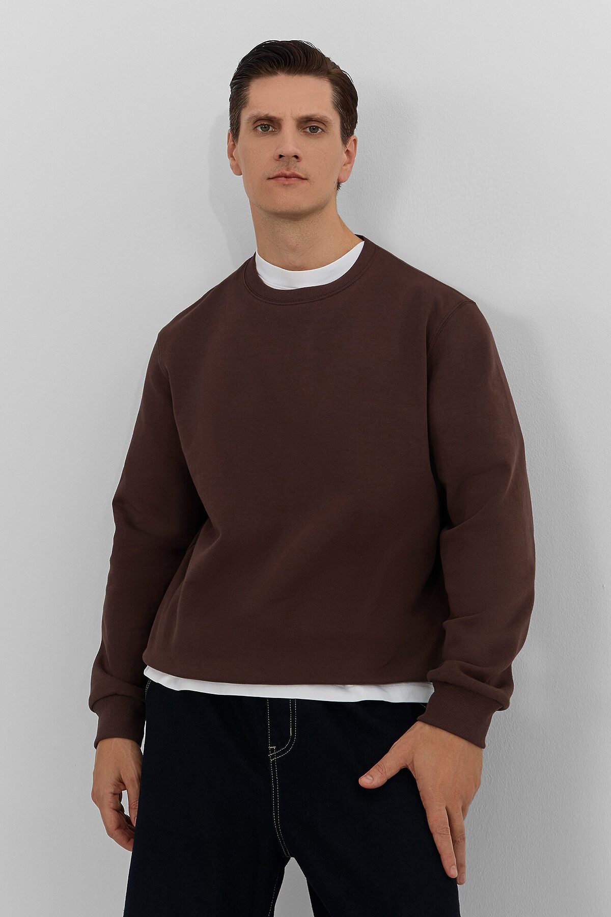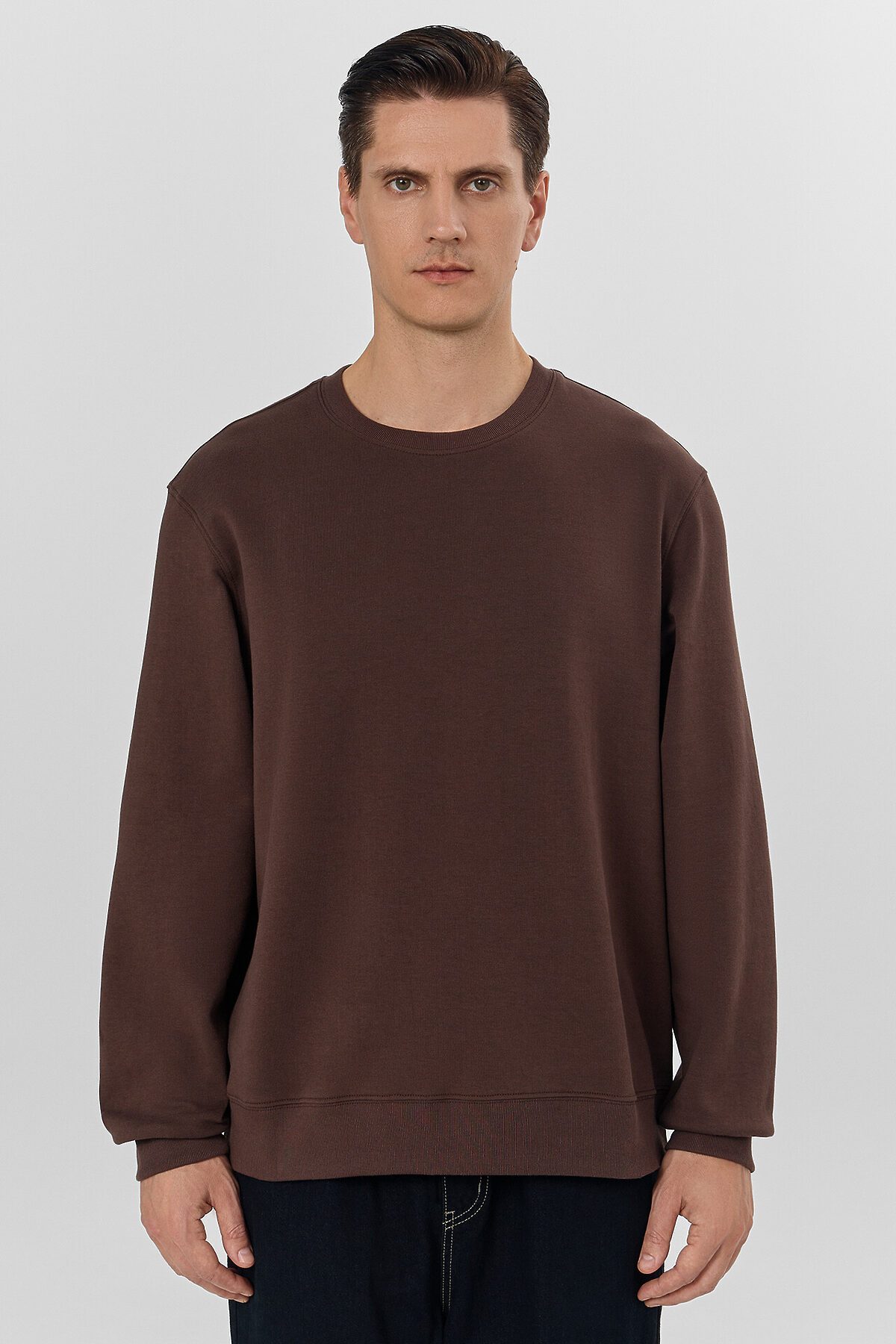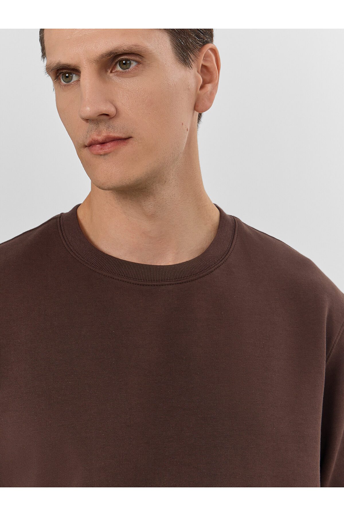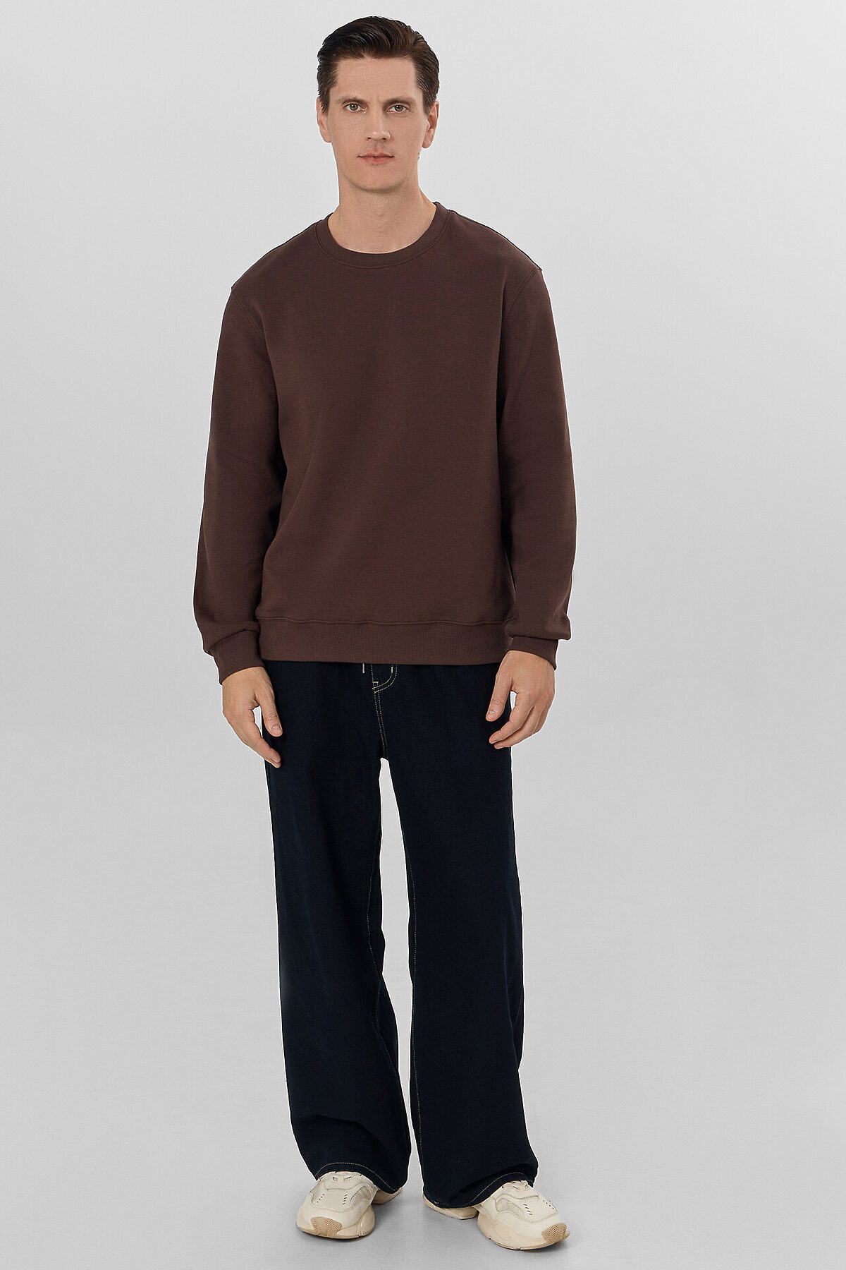 Толстовка мужская изготовлена из трикотажного полотна интерлок. Толстовка свободная, прямая. Горловина округлой формы обработна обтачкой из рибаны. Рукава втачные длинные. Линия плеча слегка спущена. По окату рукава и плечевым швам отделочные строчки. По низу рукава отрезная манжета из рибаны. Центральная застежка на тесьму-молнию.По низу изделия отрезной пояс из рибаны. По шву втачивая пояса - отделочные строчки.