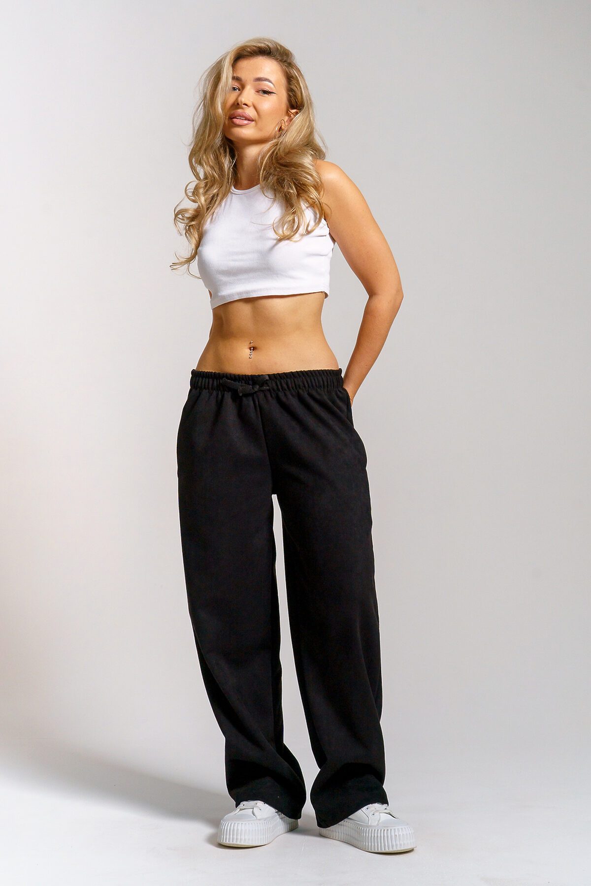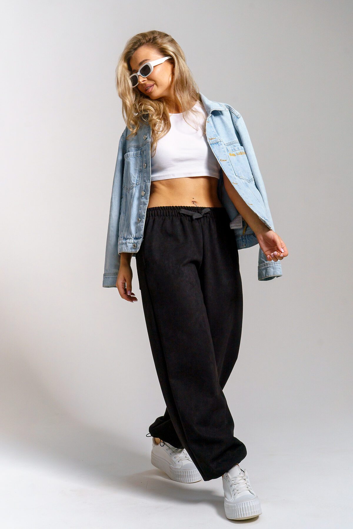Модные оверсайз брюки в стиле багги представляют собой модный выбор, изготовленные из эко -замши, они обладают стильной слегка заниженной посадкой. Спортивные штаны багги y2k, для тех кто привык к свободе и стилю! Они идеально подходят для различных активностей, включая тренировки, бег, танцы, путешествия, занятия спортом, походы в горы и прочее. Их также можно использовать в повседневной жизни, в том числе в школе, для физкультуры, фитнеса, йоги. Резинка на поясе обеспечивает идеальную посадку и комфорт, брюки мягко облегают талию, не сдавливая и не сползая. Шнур на поясе добавляет не только стильный акцент, но и даёт возможность индивидуально регулировать посадку. Резинки на манжетах фиксируют брючины, затягивая с помощью фиксатора, создавая аккуратный новый образ. Такой крой визуально вытягивает ноги и придаёт образу собранность. Свободный фасон багги гарантирует свободу движений и комфорт в течение всего дня. Прорезные боковые карманы и накладные сзади - незаменимый элемент для удобства. Они не выпирают, не утяжеляют силуэт и в то же время добавляют практичности. В них можно удобно разместить разные мелочи- это маленькая деталь, которая делает модель ещё более функциональной. Материал мягкий, но держит форму. Ткань средней плотности мягко ложится по телу, не мнётся, приятна на ощупь. Благодаря своей структуре, она сохраняет форму после стирок и носки, а также отлично дышит, обеспечивая комфорт с утра до вечера. Багги - не просто брюки, это про стиль без усилий. Они дают свободу, подчёркивают индивидуальность и становятся основой для десятков образов. В них удобно, стильно и легко - в любом ритме, в любую погоду, в любом настроении.