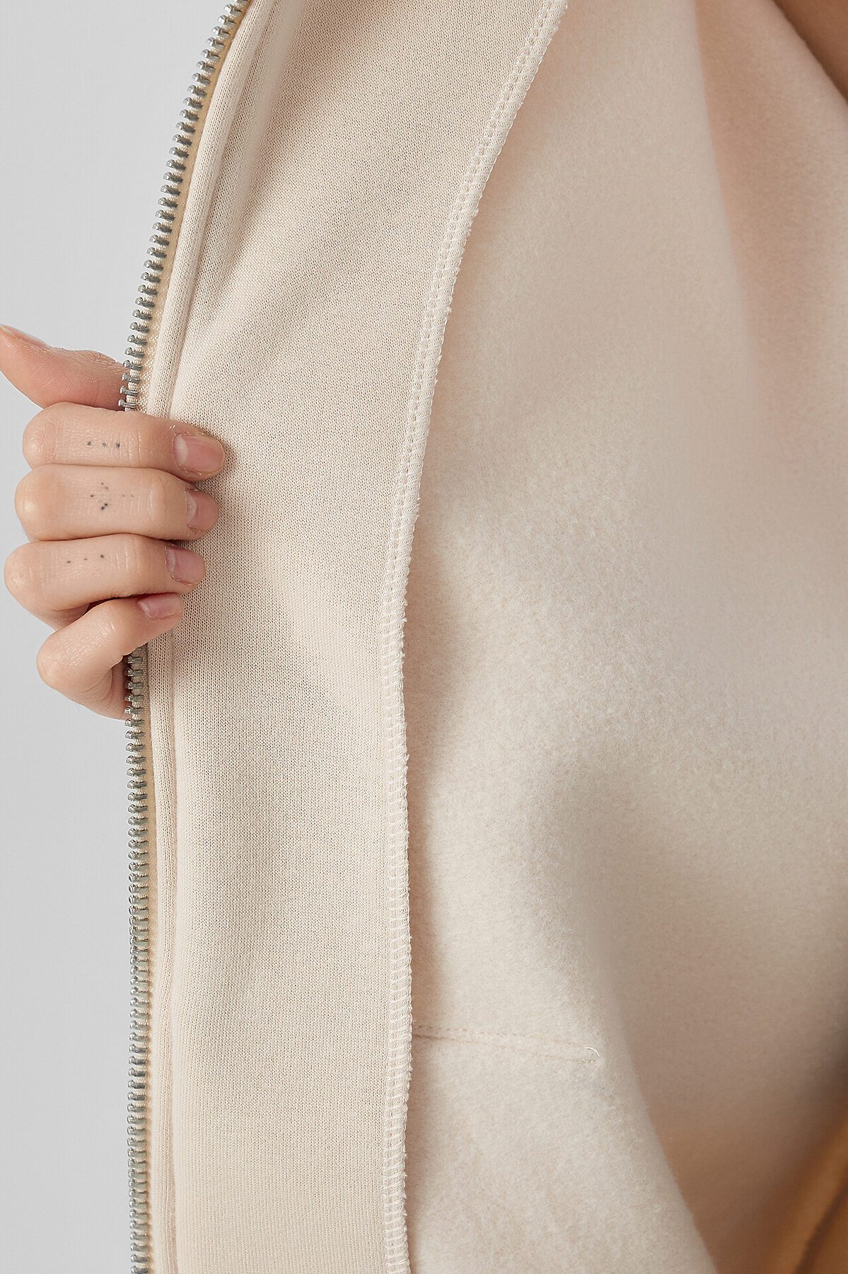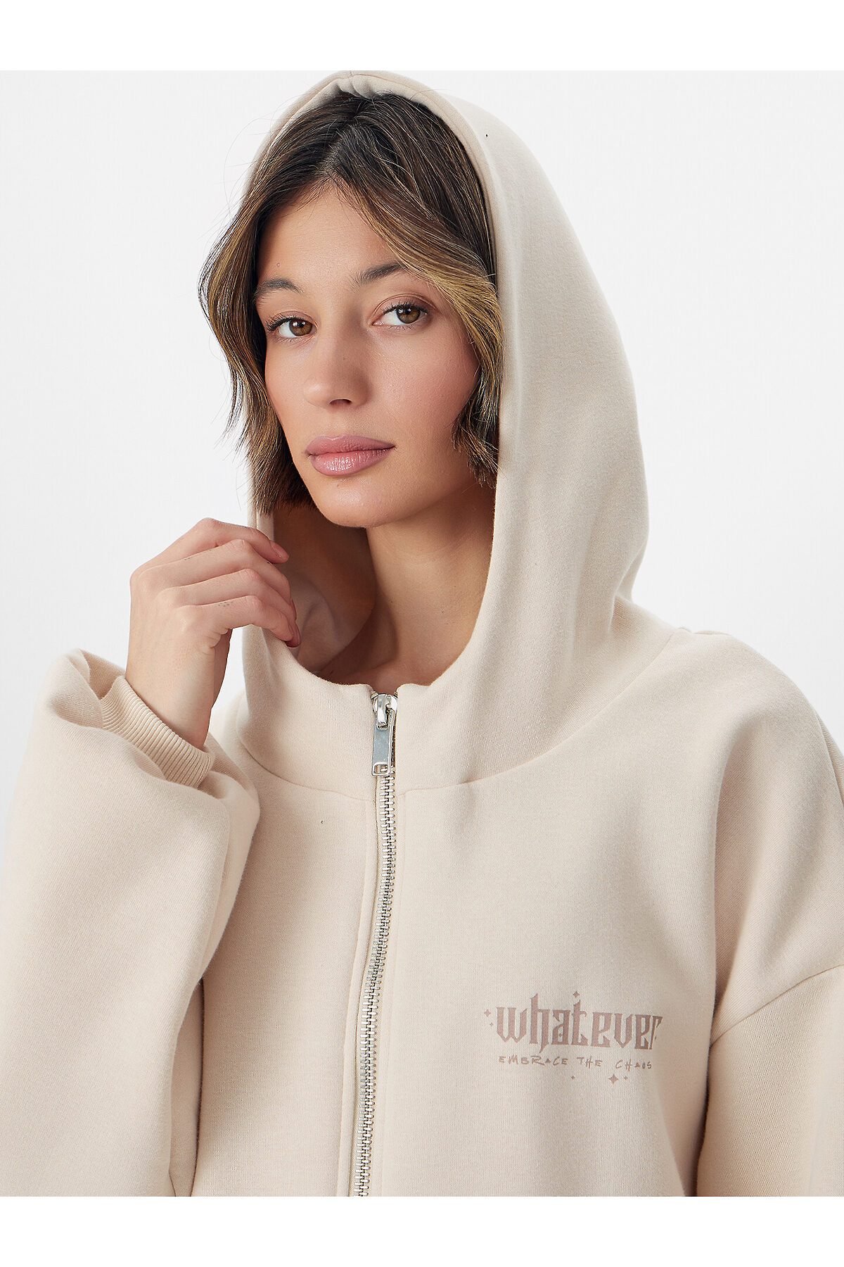 BASIC + Толстовка свободная, оверсайз. Горловина округлой формы с капюшоном. Шов втачивания капюшона по горловине спинки закрыт тесьмой (хб 10мм). Рукав втачной, длинный с отрезными манжетами из рибаны. Линия плеча спущена. По переду накладной карман. Центральная застежка на молнию (OpenEnd, StandartMetal №8 (7.6мм), слайдер Auto-Lock). По низу толстовки отрезной пояс из рибаны. + навесной ярлык BASIC +