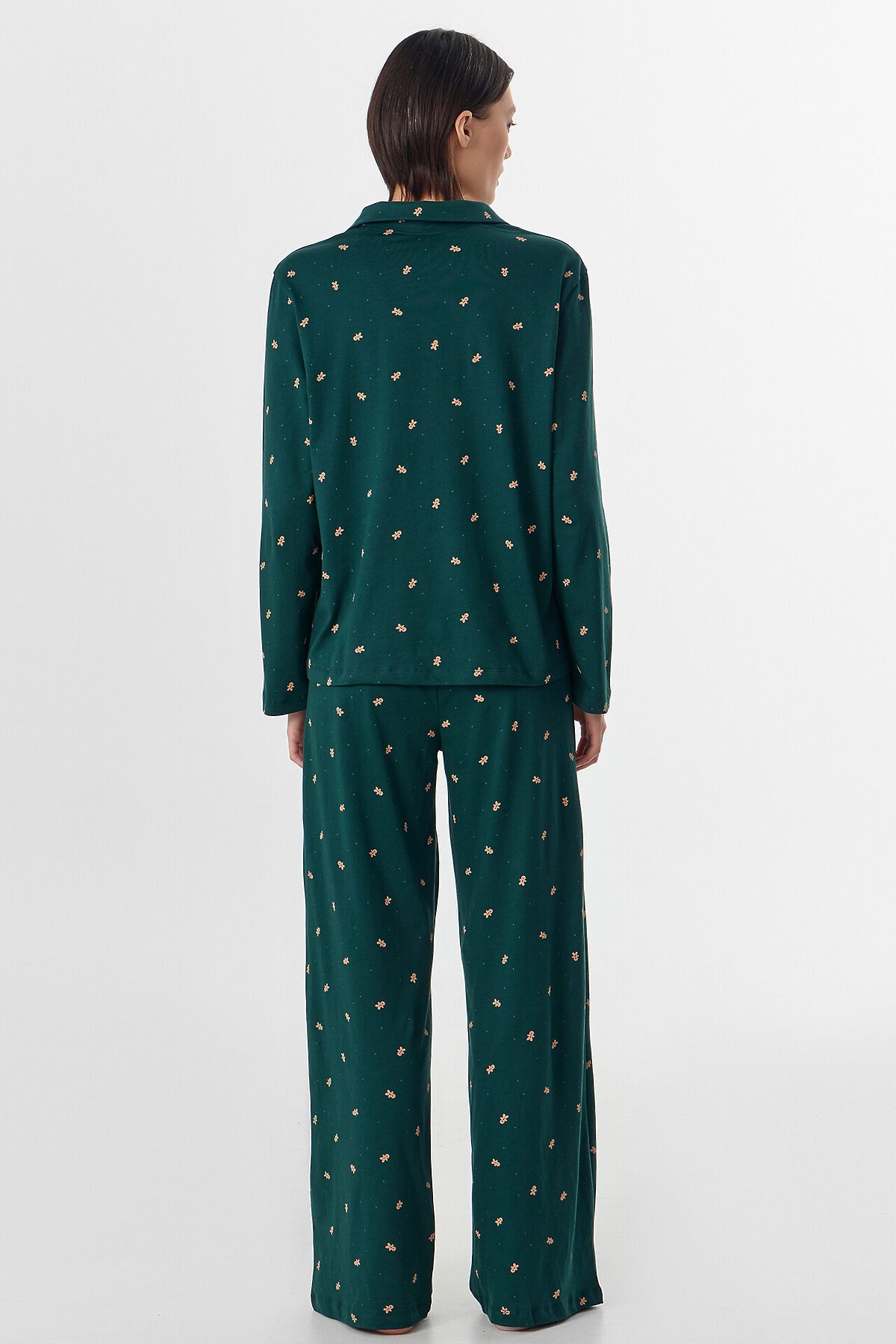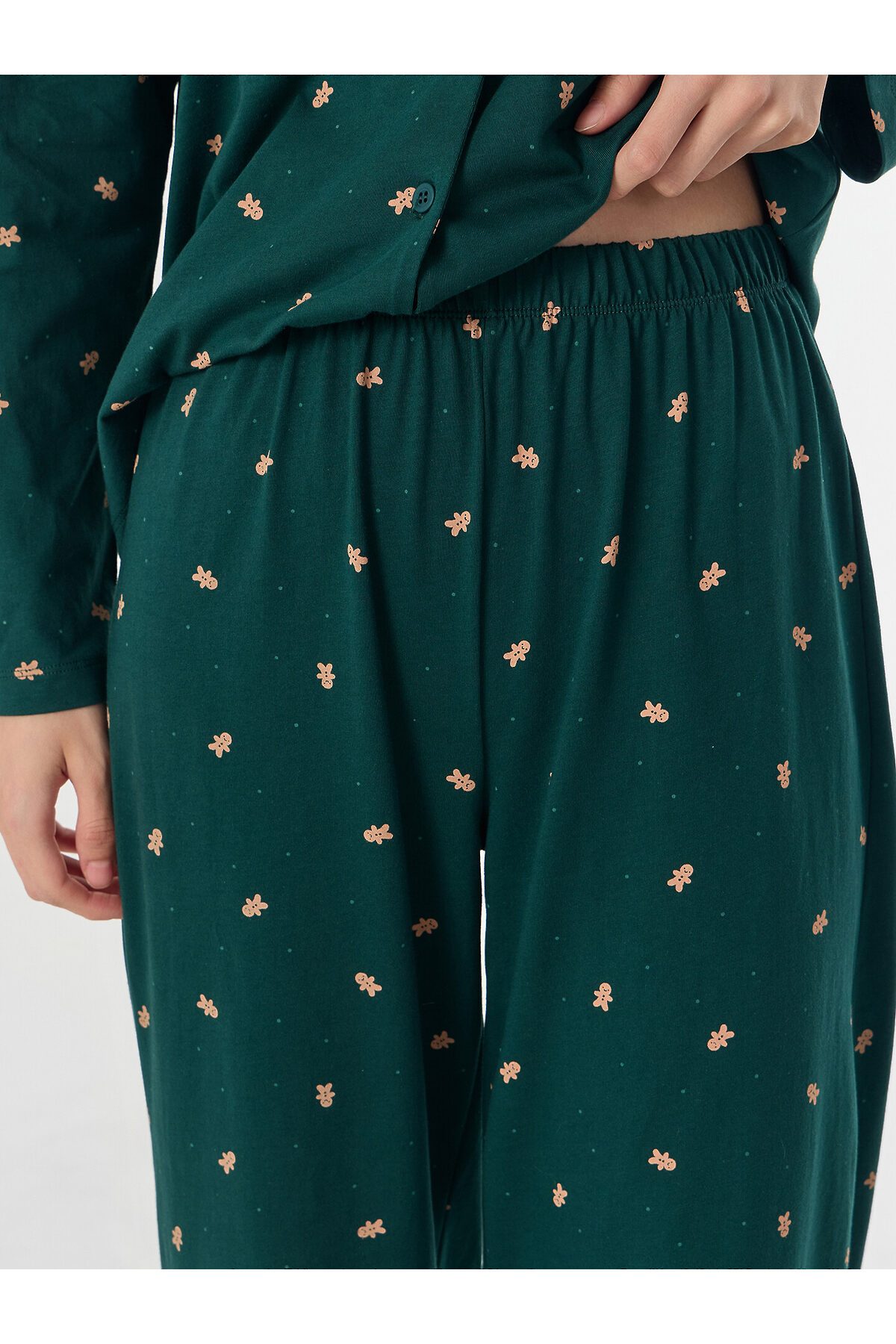 Бежевая пижама с зимним рисунком подарит вам ощущение тепла и уюта в холодные вечера. Этот очаровательный комплект состоит из удлиненного жакета и свободных брюк — идеальный выбор для спокойного сна и расслабленного отдыха.