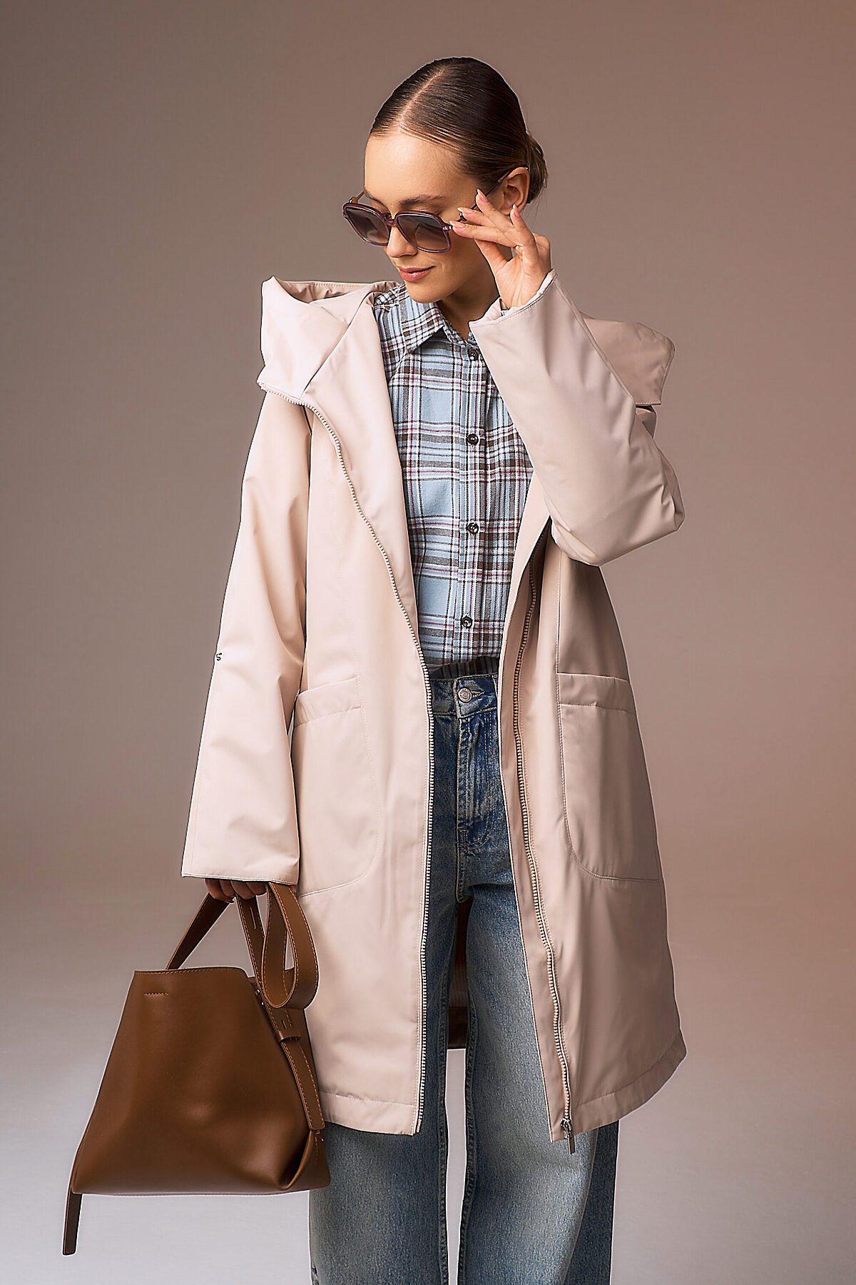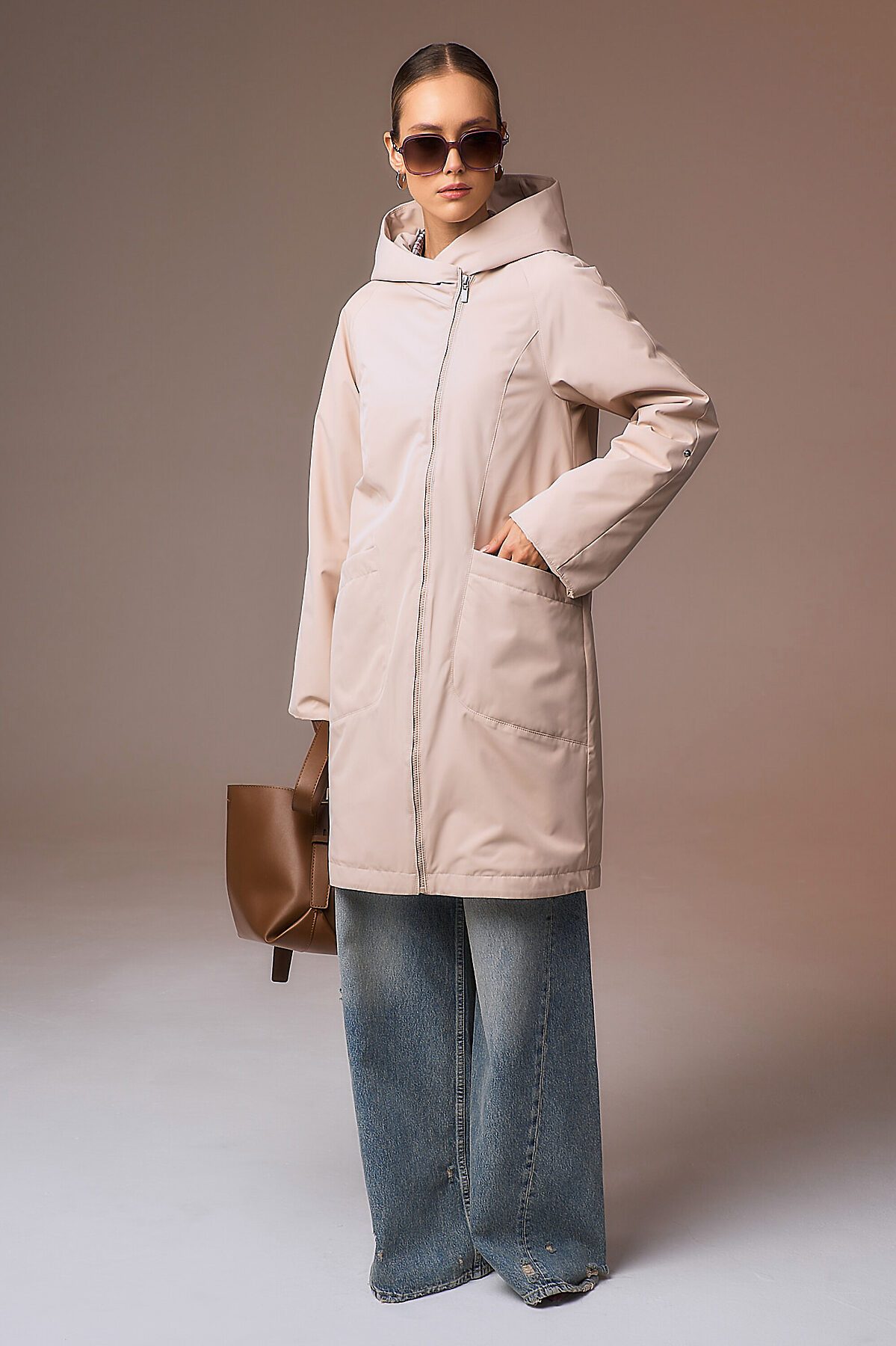 Застежка на молнию в цвет изделия. Ткань с водоотталкивающей пропиткой и мембраной. По линии талии на спине введена утяжка с выходом в боковых швах на подклад. Рукав с подворотом Длина изделия по спинке 88 см Длина рукава 66 см Утеплитель изософт Плотность утеплителя 60 г/м2. Температурный режим от +10 до +15 Покрой прямой Тип рукава реглан Состав 100% полиэстер Размеры 42-56