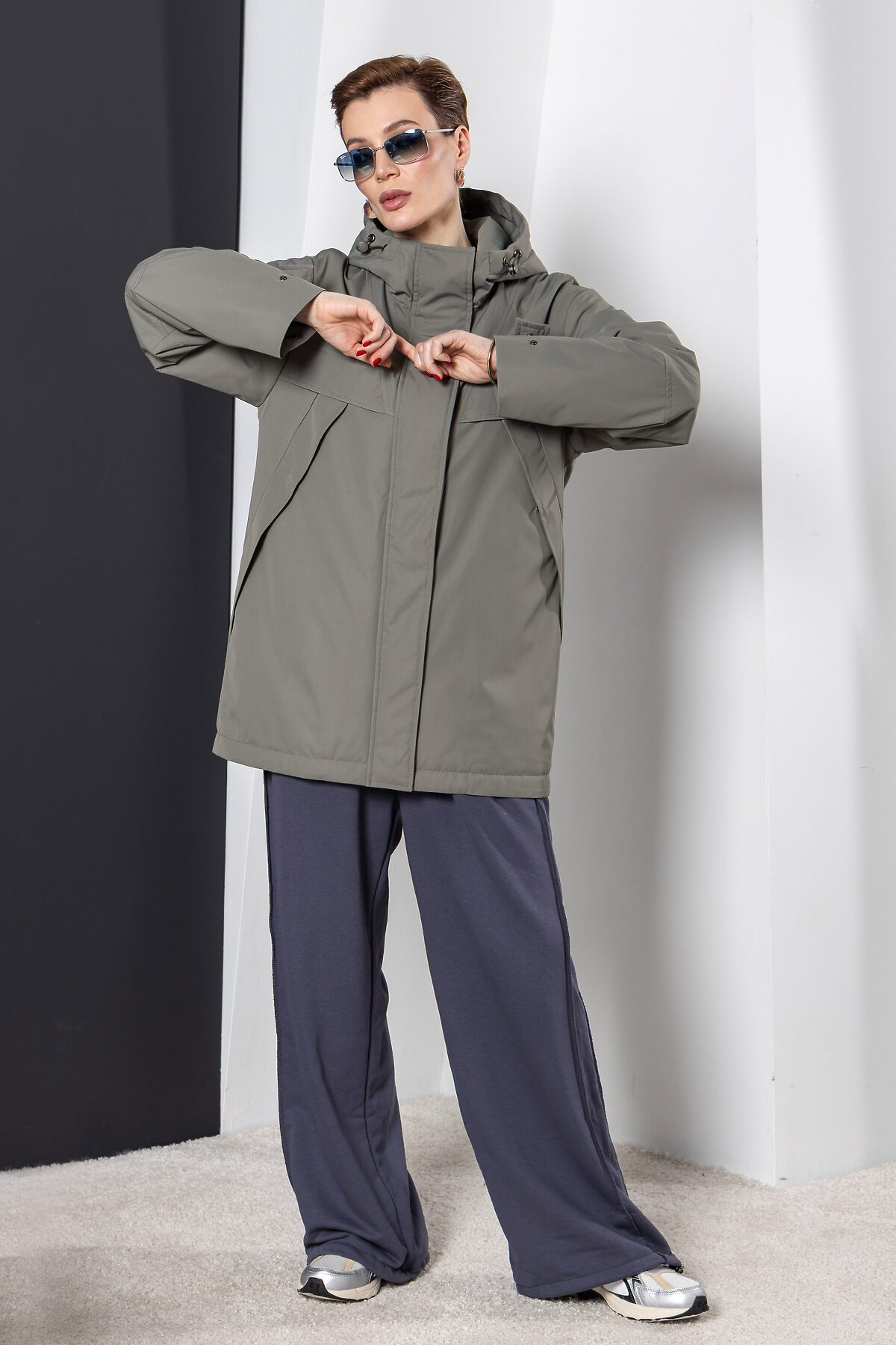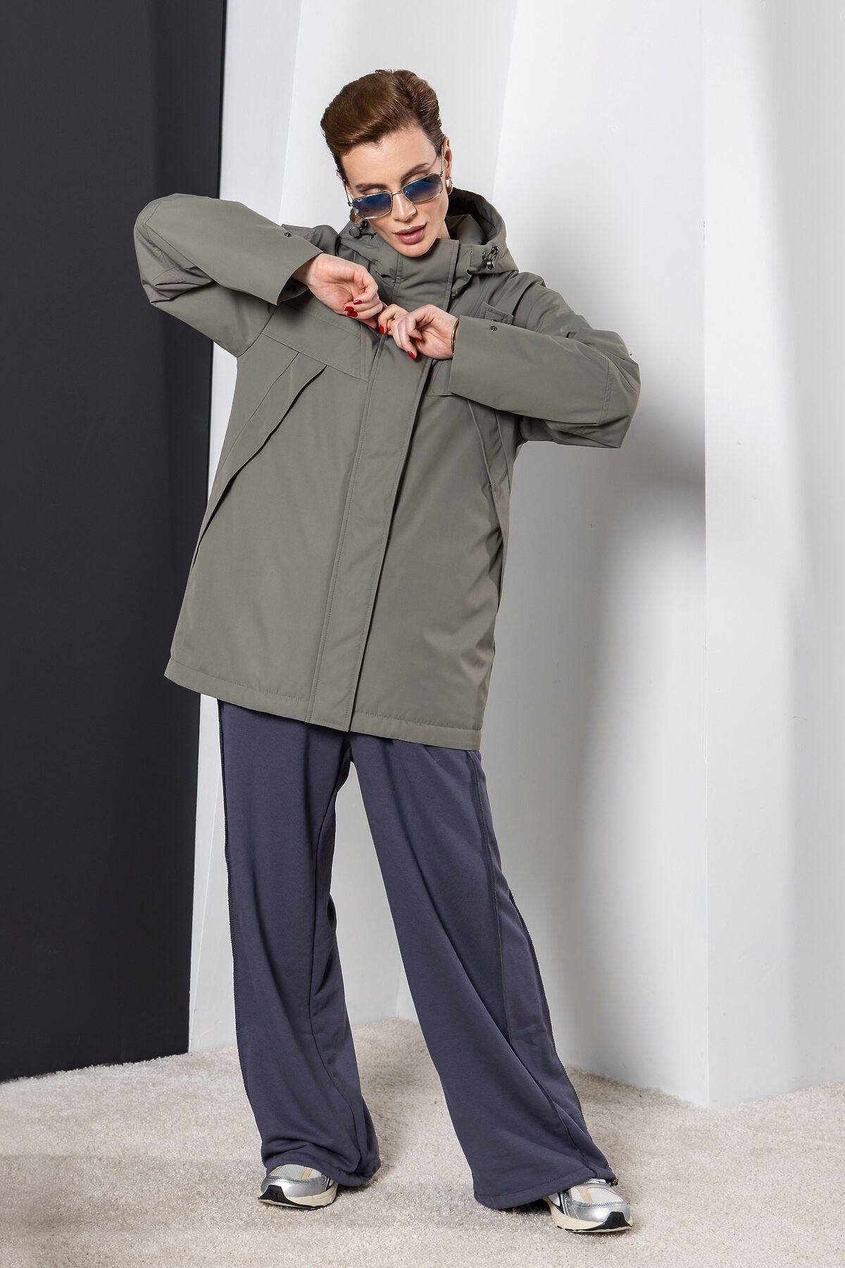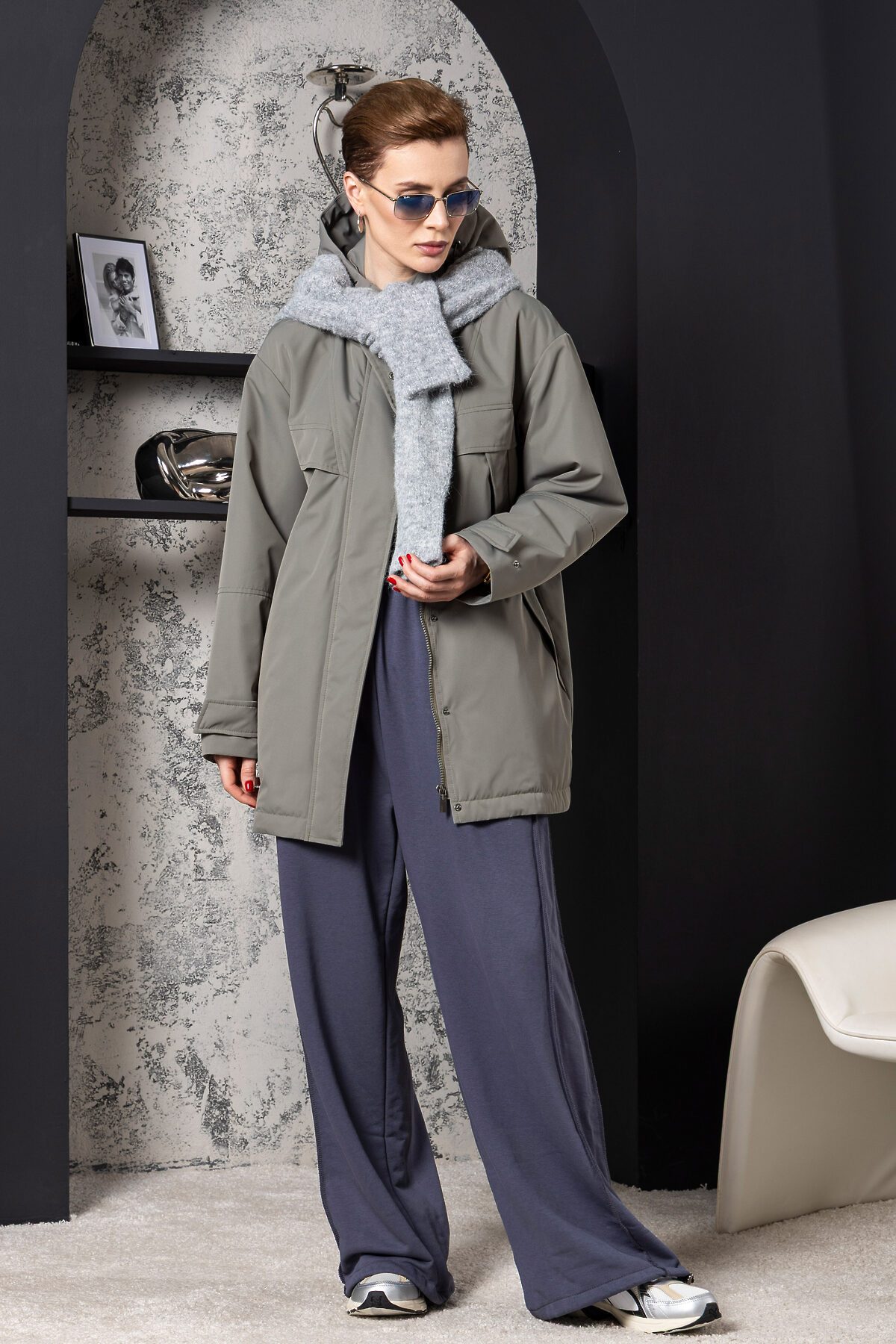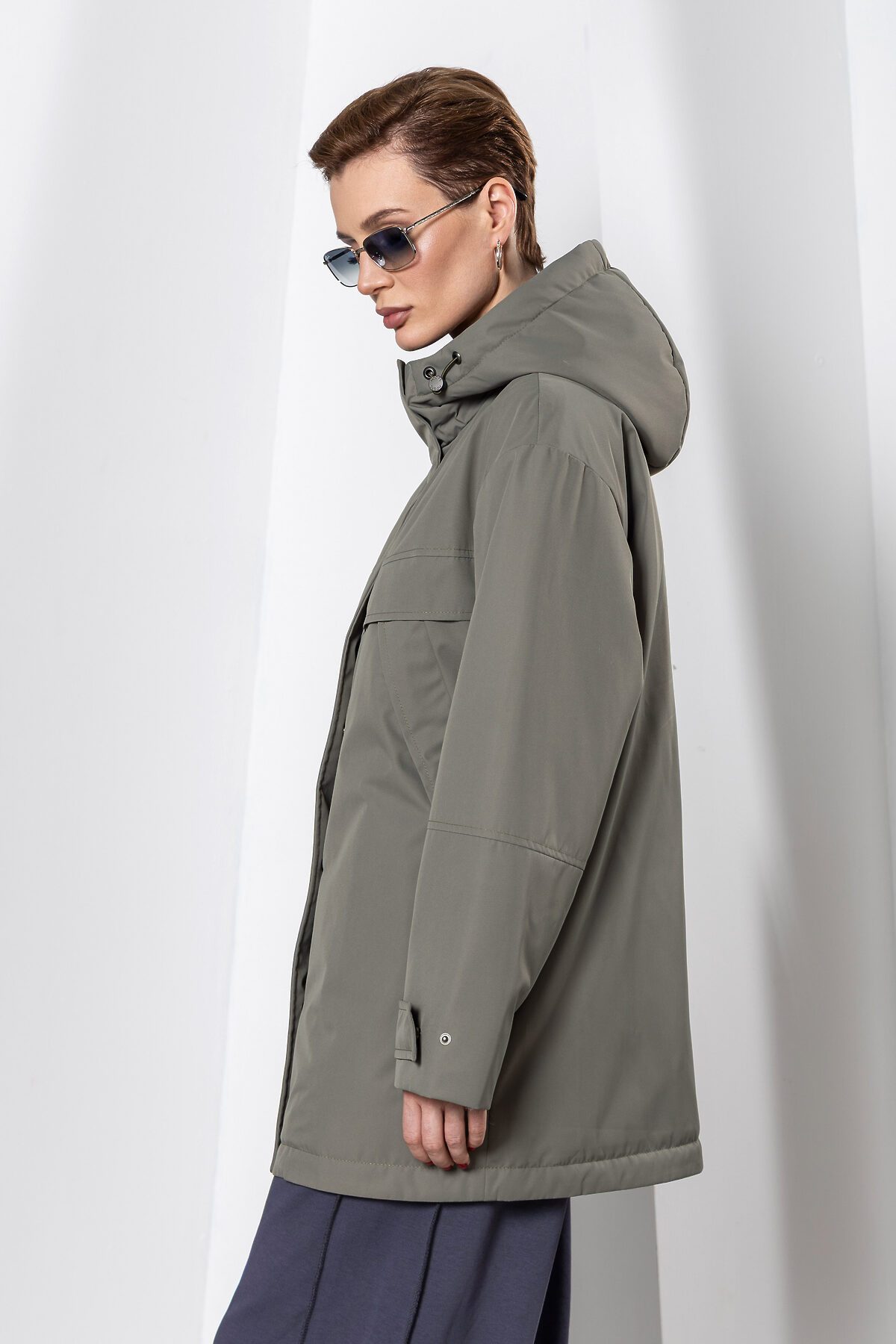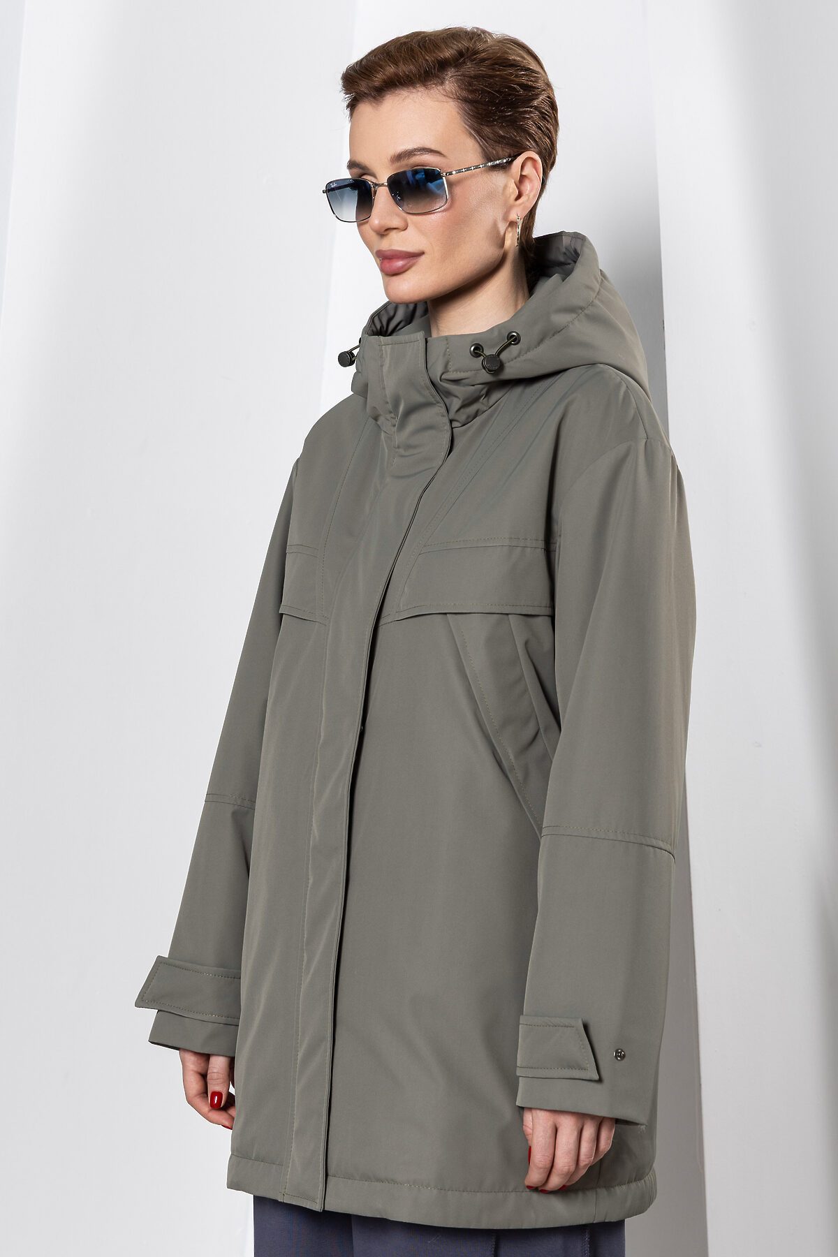 Утепленный плащ с застежкой на молнию в цвет и потайные кнопки. Капюшон не отстежной. По груди введена декоративная кокетка. Низ рукава оформлен функциональными патами на кнопках. Длина изделия по спинке: 78 см Покрой: прямой Тип карманов: в шве на кнопке. Тип рукава: втачной, спущенное плечо Длина рукава: 65 см. Утеплитель: изософт (высокотехнологичный рулонный утеплитель из микроволокна) Плотность утепления: 60 г/м2 Температурный режим: +5°C до +15°C