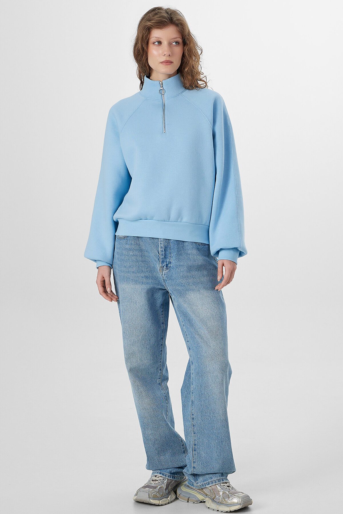 Женский джемпер на молнии — воплощение уютной элегантности. Модель выполнена из мягкого футера с начесом, который нежно согревает и дарит комфорт в прохладные дни. Свободный крой обеспечивает полную свободу движений, а высокая горловина-стойка с застежкой добавляет практичности для повседневного использования.