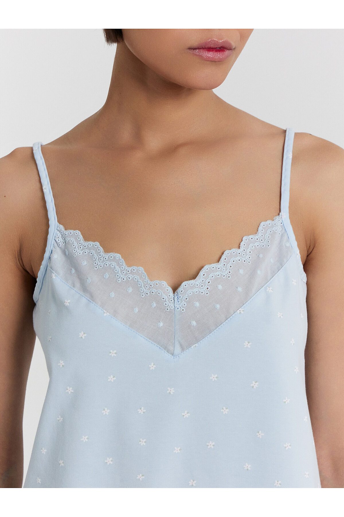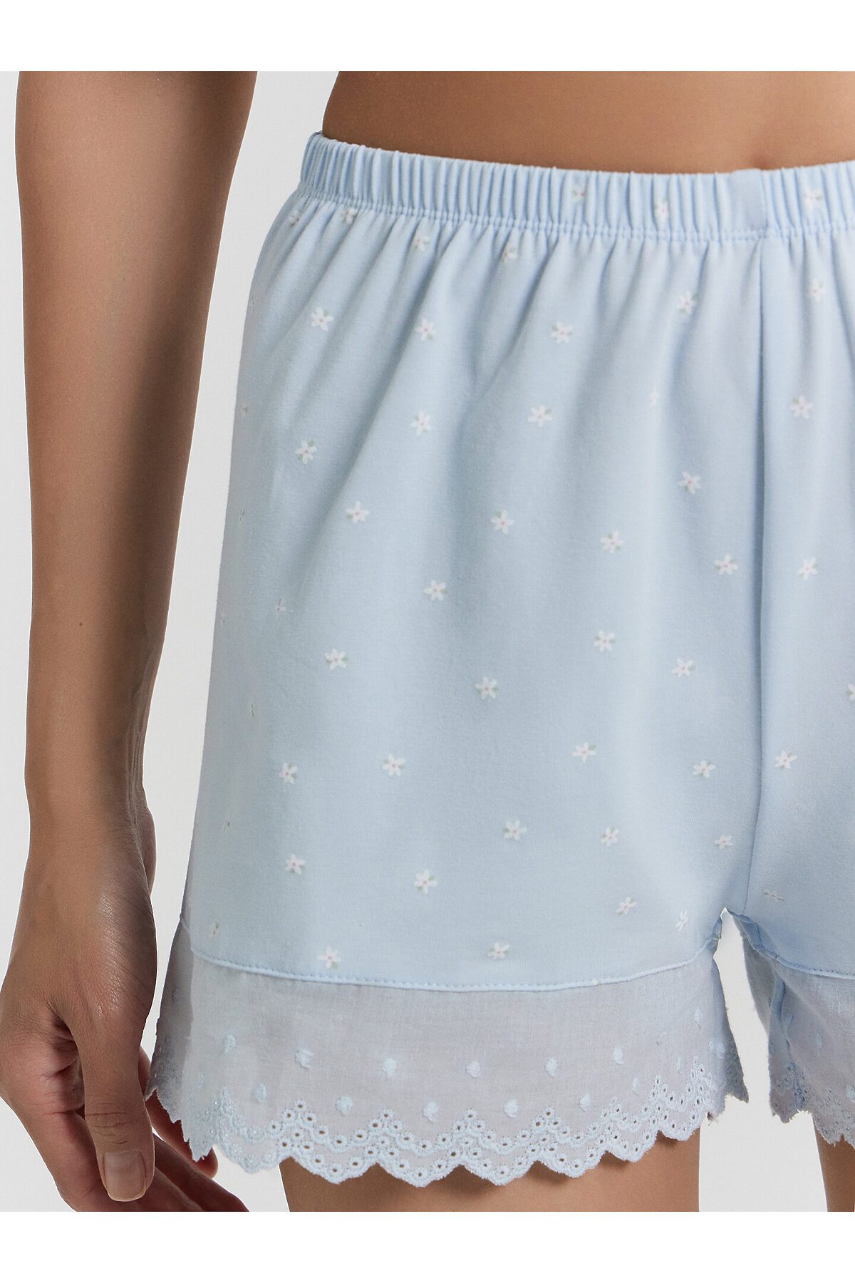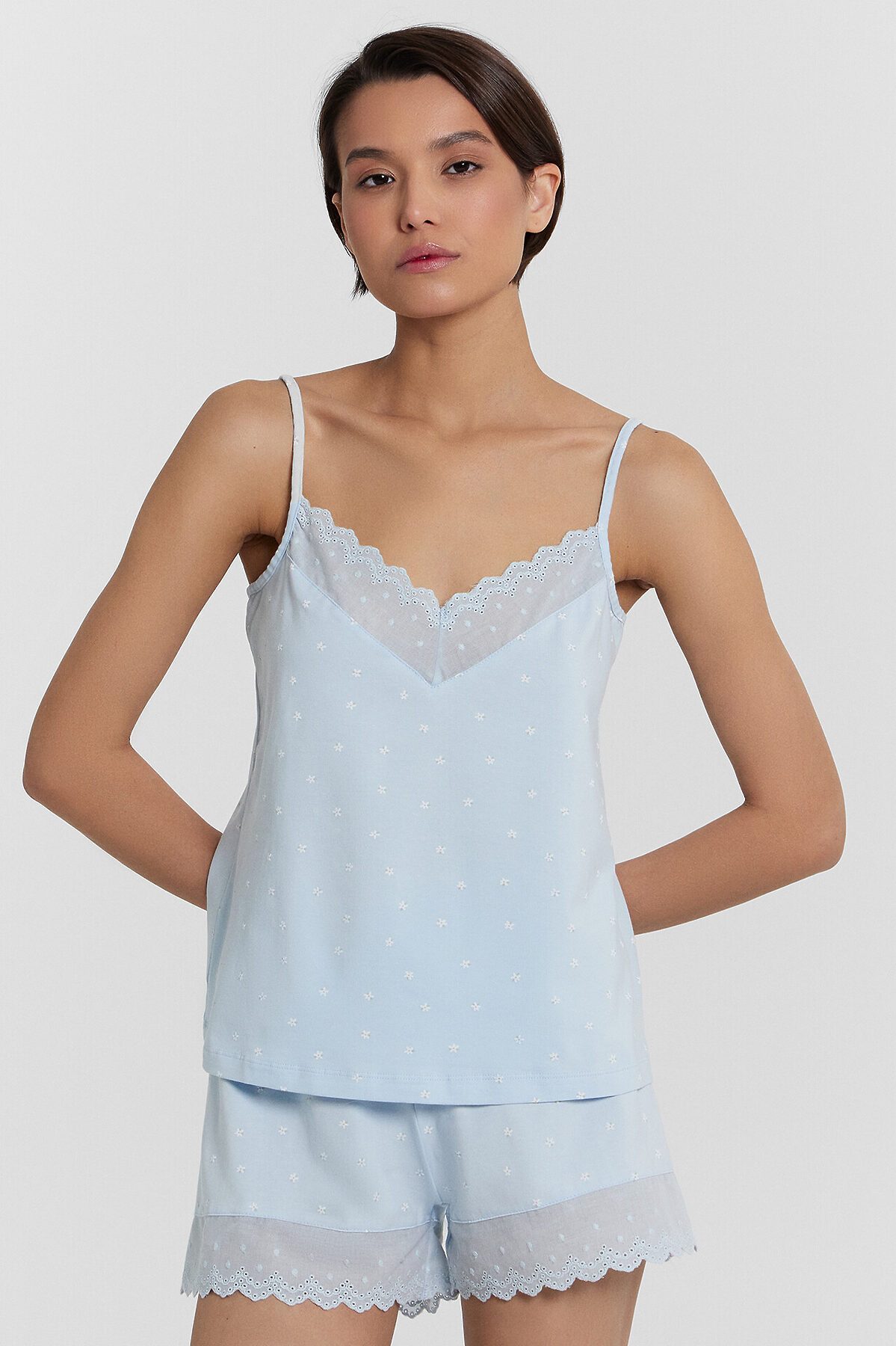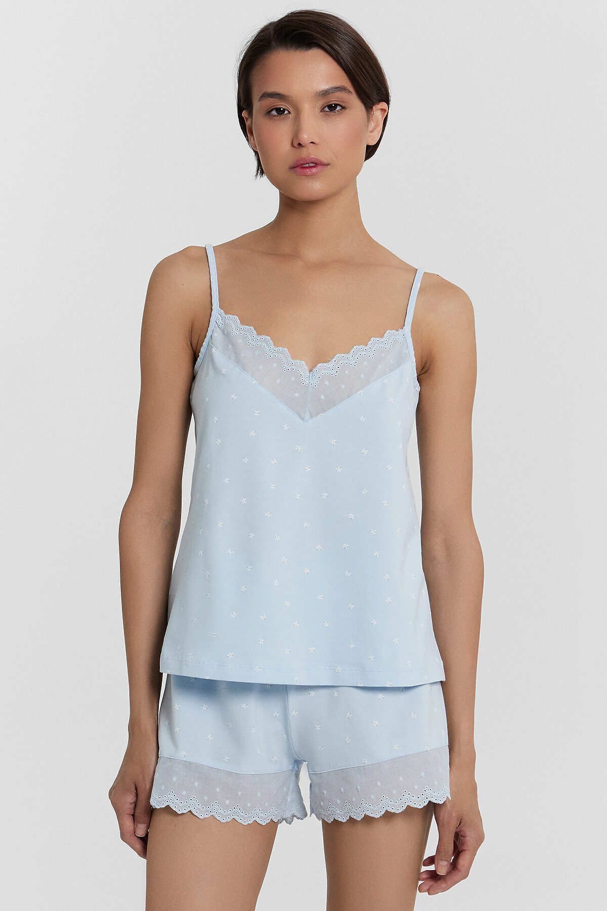 Этот женский пижамный комплект — элегантное сочетание комфорта и изысканного дизайна! Топ прямого силуэта с тонкими бретелями подчеркивает женственность и легкость образа. V-образная горловина добавляет изящности, а кружевные детали придают нотку утонченности, делая модель особенно нежной. Мини-шорты с эластичной тесьмой в поясе мягко прилегают, обеспечивая удобную посадку без давления. Свободный крой позволяет наслаждаться максимальным комфортом, идеальным для расслабленного отдыха. Изделие выполнено из натурального хлопка — материала, который отличается мягкостью, воздухопроницаемостью и приятными тактильными характеристиками, создавая уютное ощущение на коже. Этот комплект — прекрасный выбор для дома, сна и неспешных вечерних моментов. Позволяет чувствовать себя одновременно комфортно и стильно, оставаясь в гармонии с собой!