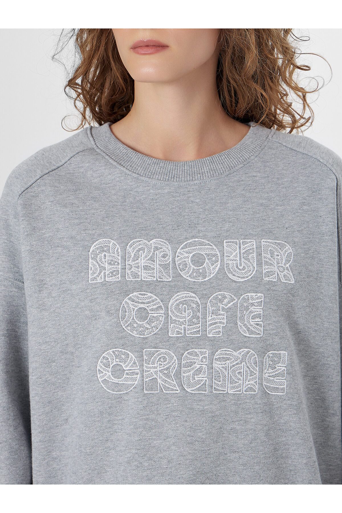Круглая горловина, манжеты и пояс из рибаны мягко фиксируют силуэт, не сдавливая, а декоративная отрезная деталь на плече добавляет образу современности. Надпись «Anyway» придает свитшоту философский шарм и легкость. Эта модель идеальна для прогулок, встреч с друзьями или отдыха — она не сковывает и сохраняет форму даже после множества стирок.