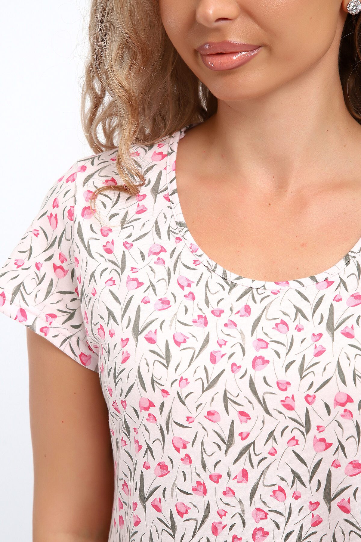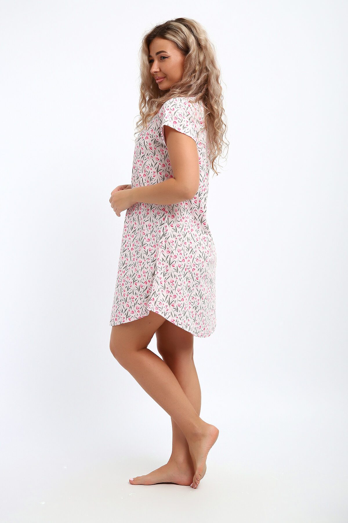 Сорочка маечного фасона с коротким рукавом и закругленным подолом. Подходит для сна и отдыха.