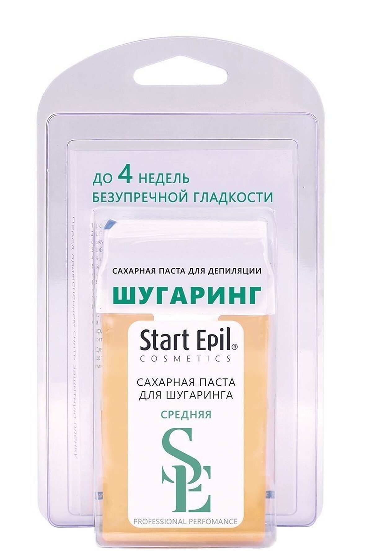 Состав набора: картридж сахарной пасты «Средняя» для жестких волос 100 г 6 нетканых одноразовых полосок буклет-инструкция Назначение: для жестких волос и всех типов кожи. Зоны депиляции: рекомендуется для депиляции (бёдер, голеней, рук, спины). Режим работы: рабочая температура продукта – 37 °С. Техника депиляции: бандажная. Не требует профессиональных навыков. Паста для шугаринга средней плотности в картридже предназначена для депиляции волос от 2-5 мм бандажным методом. Она удобна для работы на больших ровных участках. Картридж оснащен роликом для распределения состава тонким равномерным слоем. Он дает возможность провести депиляцию быстро и с минимальным расходом средства. Дополнительно паста позволяет провести легкий пилинг кожи, убрав с ее поверхности ороговевшие клетки и не травмируя при этом живые. В результате регулярного выполнения шугаринга диаметр волос уменьшается вдвое, они становятся тоньше и слабее, увеличивается междепиляционный интервал. Гипоаллергенный продукт. Способ применения Перед выполнением депиляции кожу очищают и обезжиривают лосьоном или тоником. Затем участок кожи обрабатывается тальком – он впитывает лишнюю влагу и улучшает сцепление пасты с волосами. Депиляция проводится с помощью бумажных бандажей, входящих в набор. Оставшуюся на коже после процедуры пасту убирают термальной водой. Завершающий уход выполняется с помощью сливок или молочка, которые успокаивают и восстанавливают кожу. Косметические продукты линии START EPIL созданы для всех этапов шугаринга и позволяют увеличить эффективность процедуры. Состав сахарной пасты Глюкоза, фруктоза, вода.