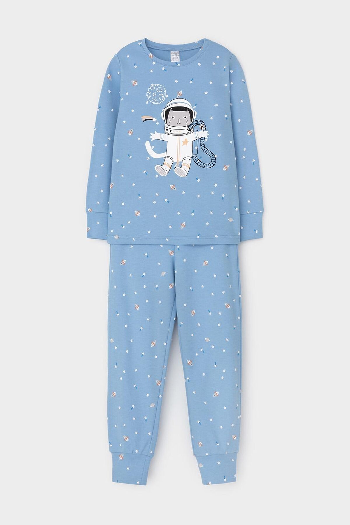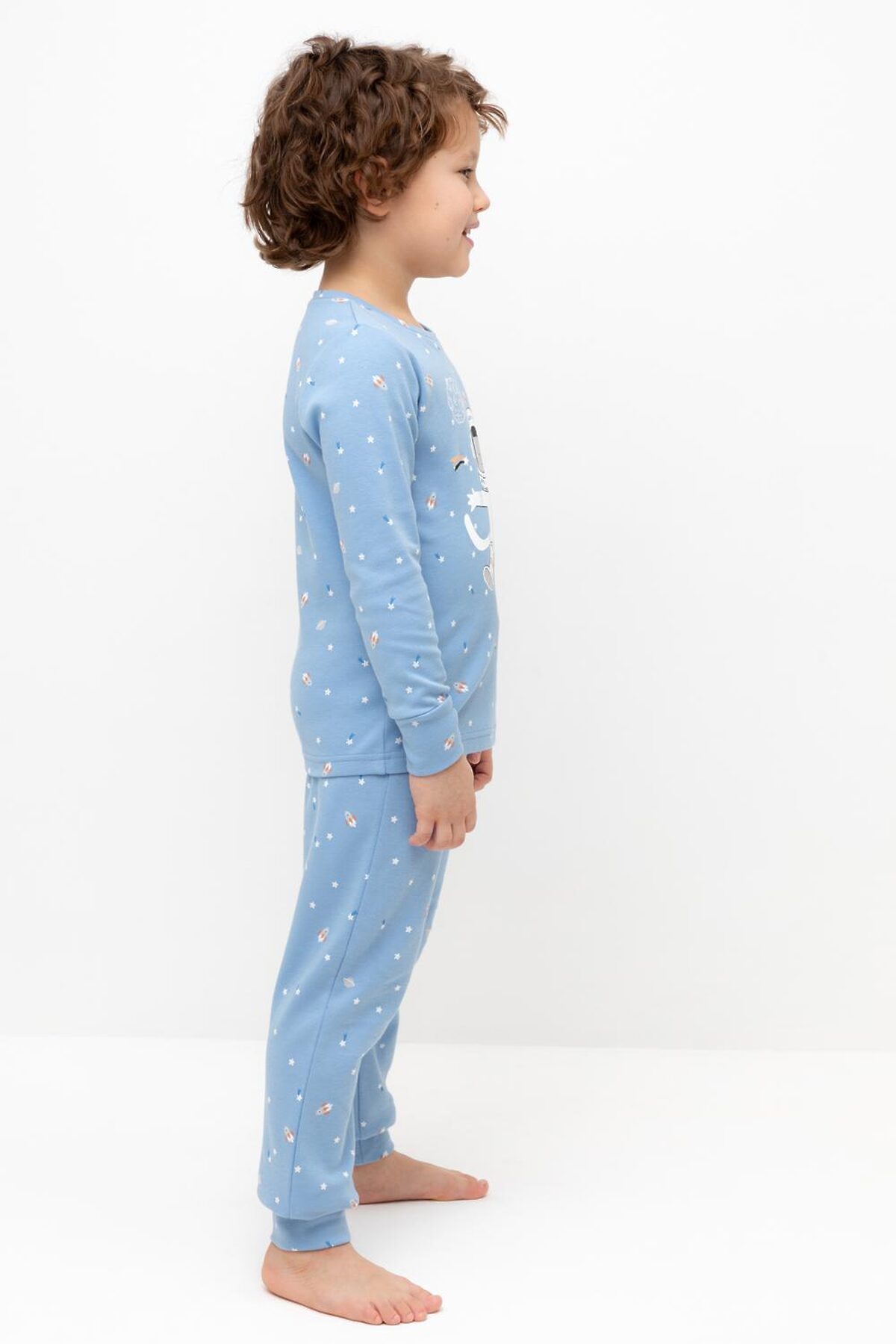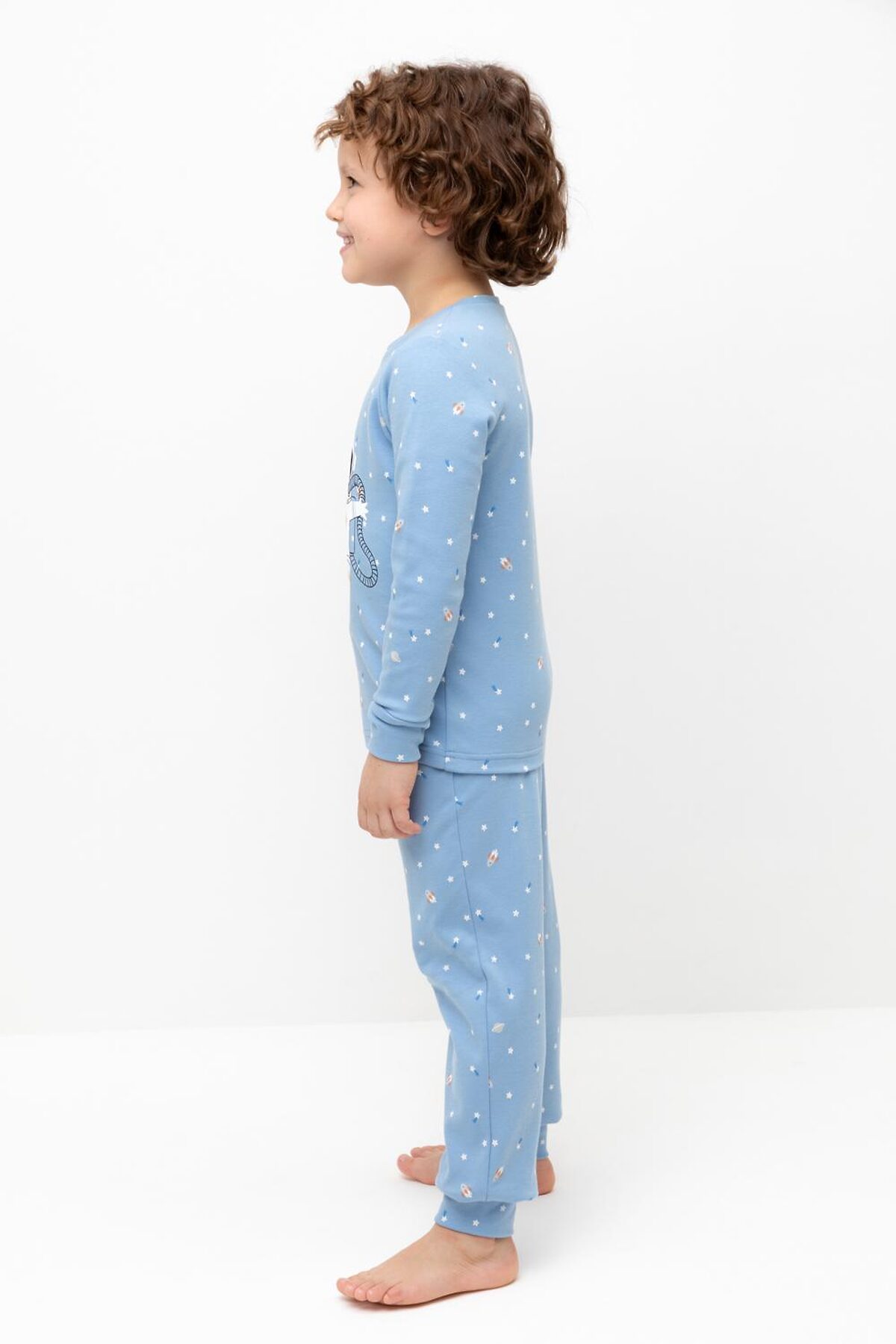 Трикотажная пижама из натурального хлопка. Джемпер с длинными втачными рукавами и брюки с эластичной резинкой в поясе. Мягкие манжеты на рукавах и по низу брюк. Оригинальная набивка и принт выполнены из стойких текстильных гипоаллергенных красителей. Изделие сохраняет цвет и форму после многократных стирок. Все трикотажные полотна производятся в соответсвии с нормами швейцарского сертификата ЭкоТекс.