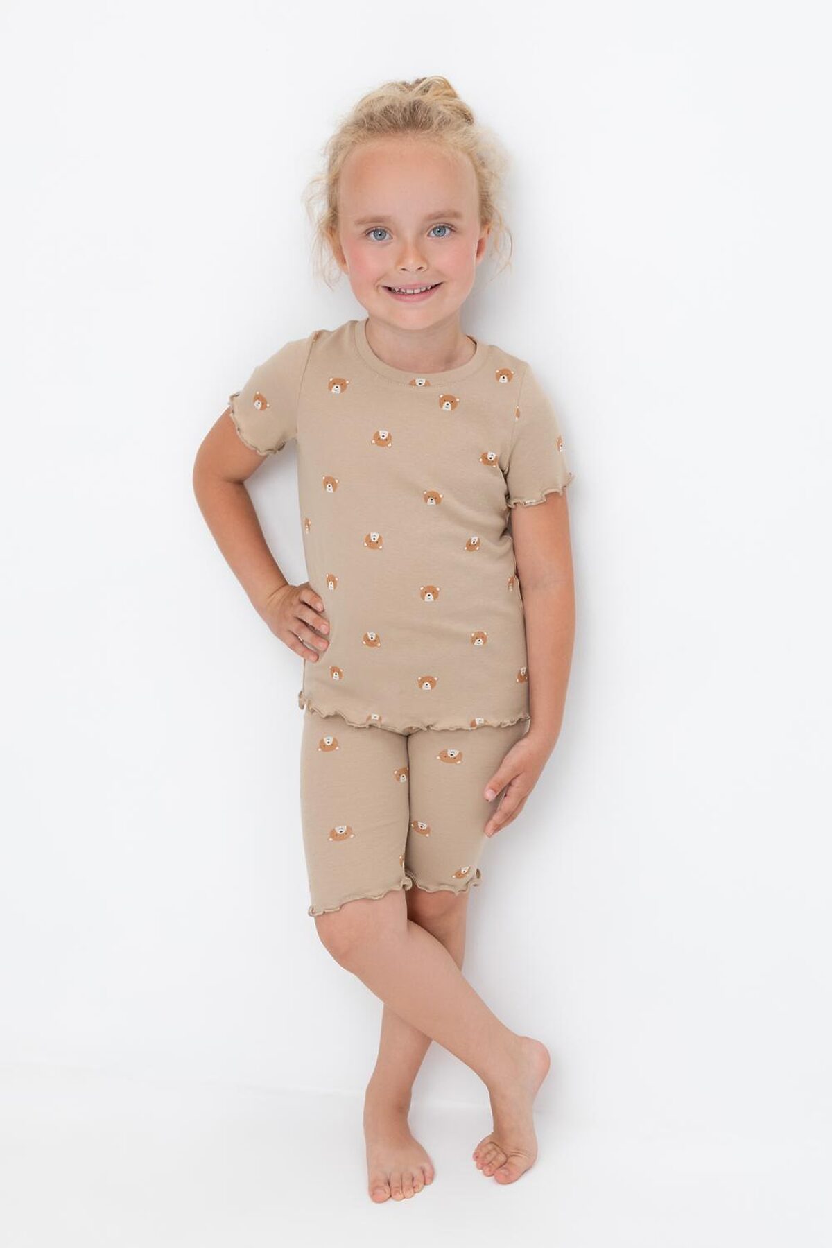 Трикотажная пижама из натурального хлопка . Футболка с короткими втачными рукавами. У шорт в комплекте мягкий, эластичный пояс на резинке. Оригинальная набивка выполнена из стойких, гипоаллергенных текстильных красителей. Комплект сохраняет цвет и форму после многократных стирок. Все трикотажные полотна производятся в соответсвии с нормами Швейцарского сертификата ЭкоТекс.