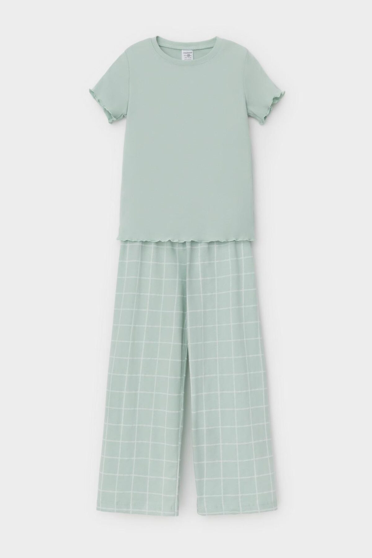 - АртикулК 1636/голубая дымка,двойная клетка пижама