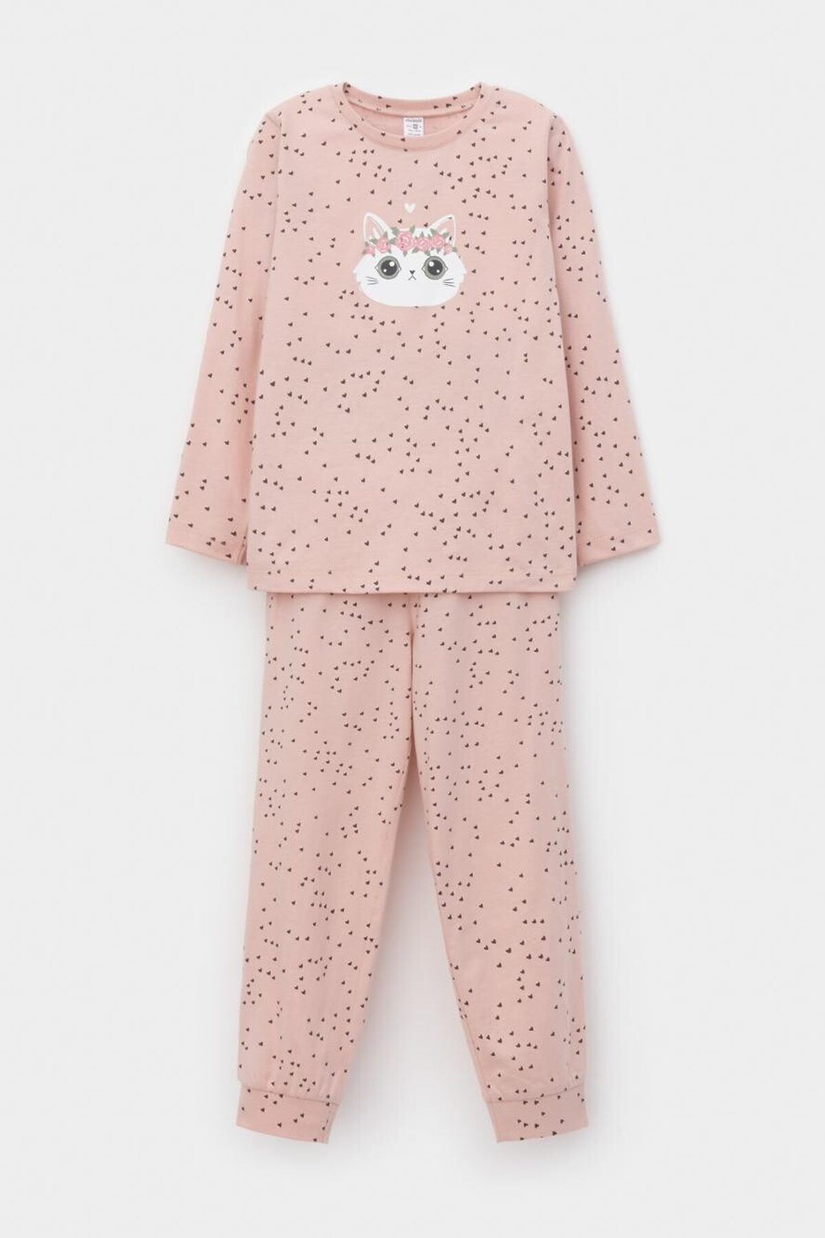 Пижама для девочки из натурального хлопка. Джемпер с длинными втачными рукавами и брюки с эластичной резинкой в поясе. Мягкие манжеты по низу брюк сделаны из материала в рубчик. Оригинальная набивка и принт выполнены из стойких текстильных гипоаллергенных красителей. Изделие сохраняет цвет и форму после многократных стирок. Все трикотажные полотна производятся в соответствии с нормами швейцарского сертификата ЭкоТекс.