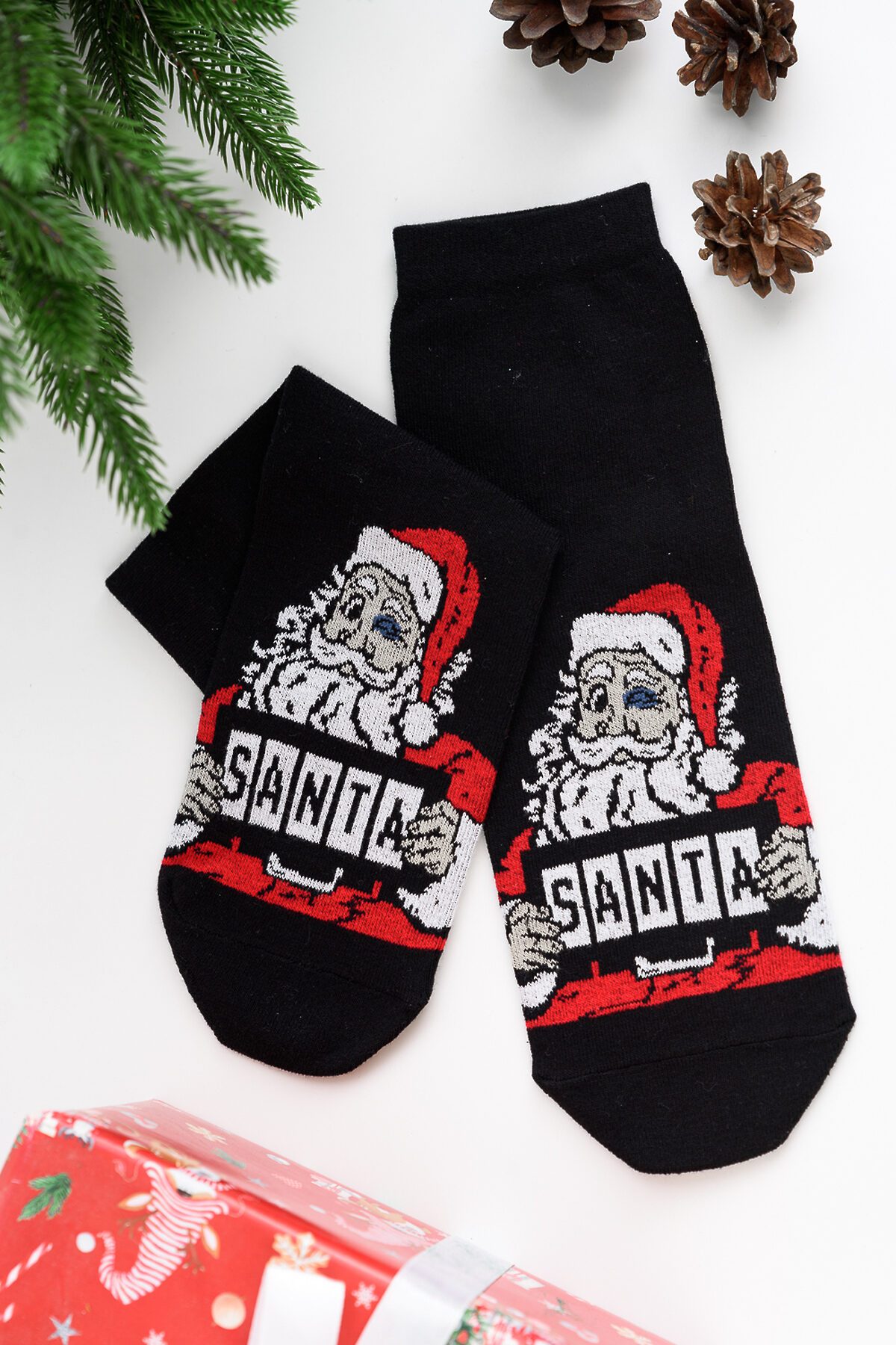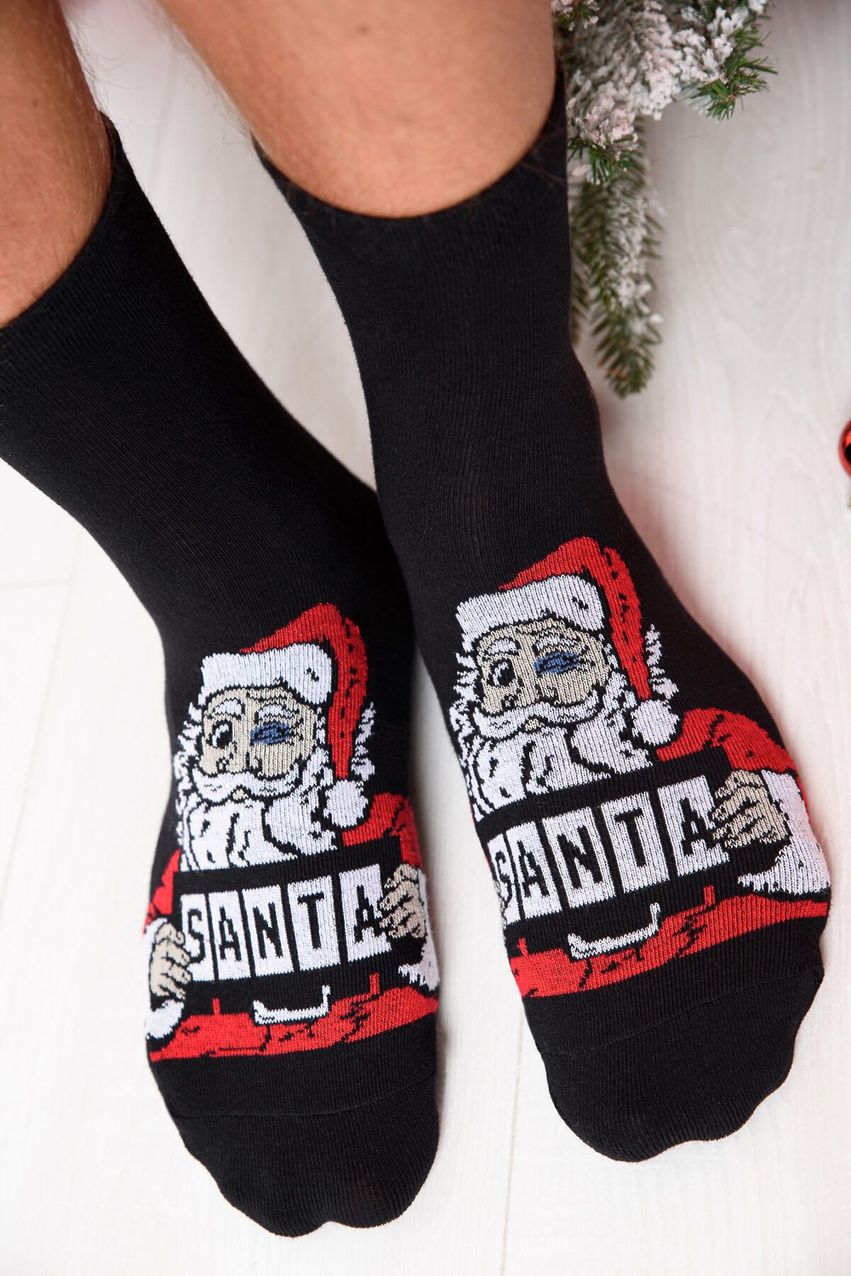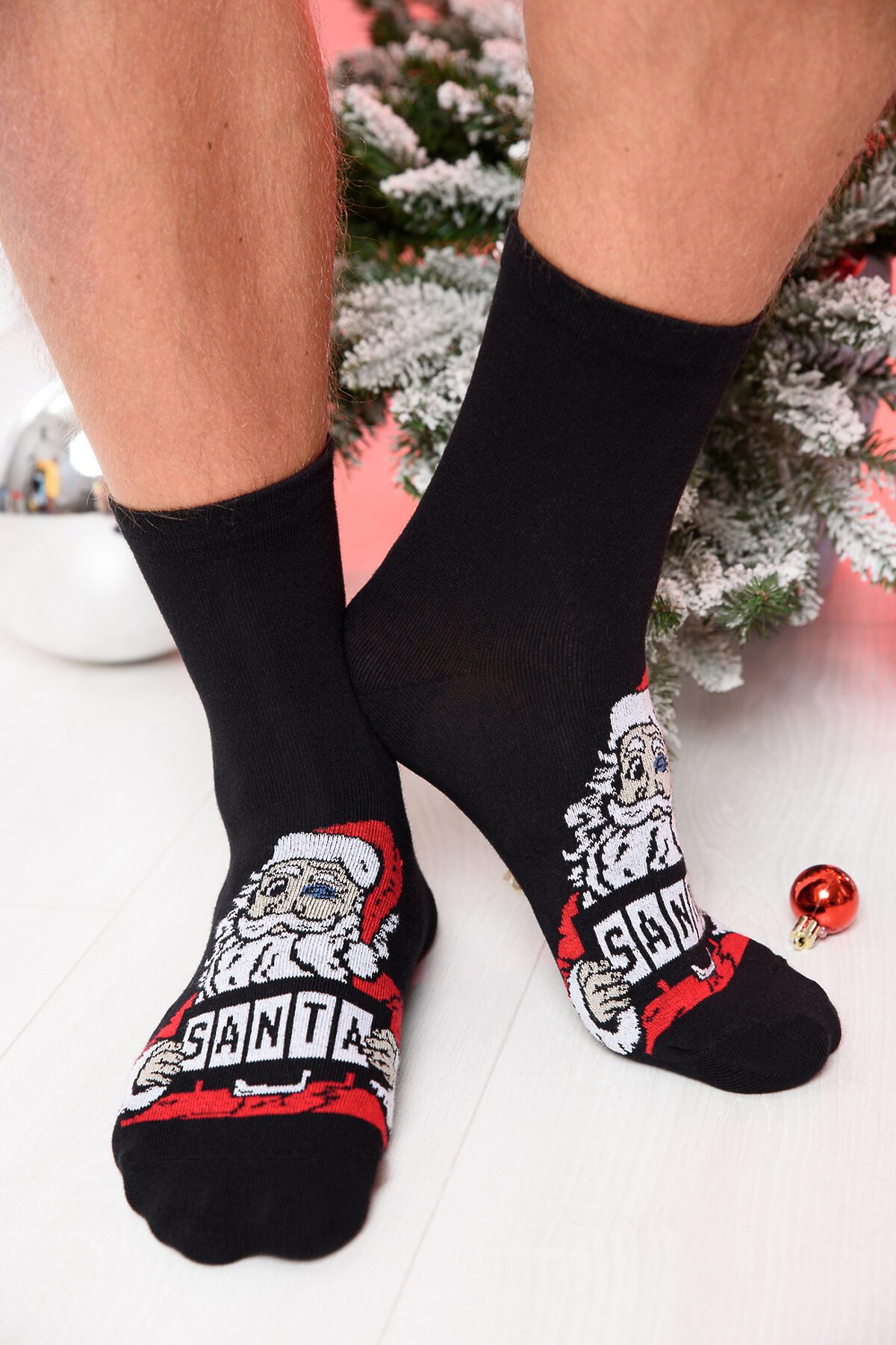 Оригинальные мужские новогодние носки. В комплекте 1 пара. На основной части носка изображение Санта Клауса и надпись Santa.