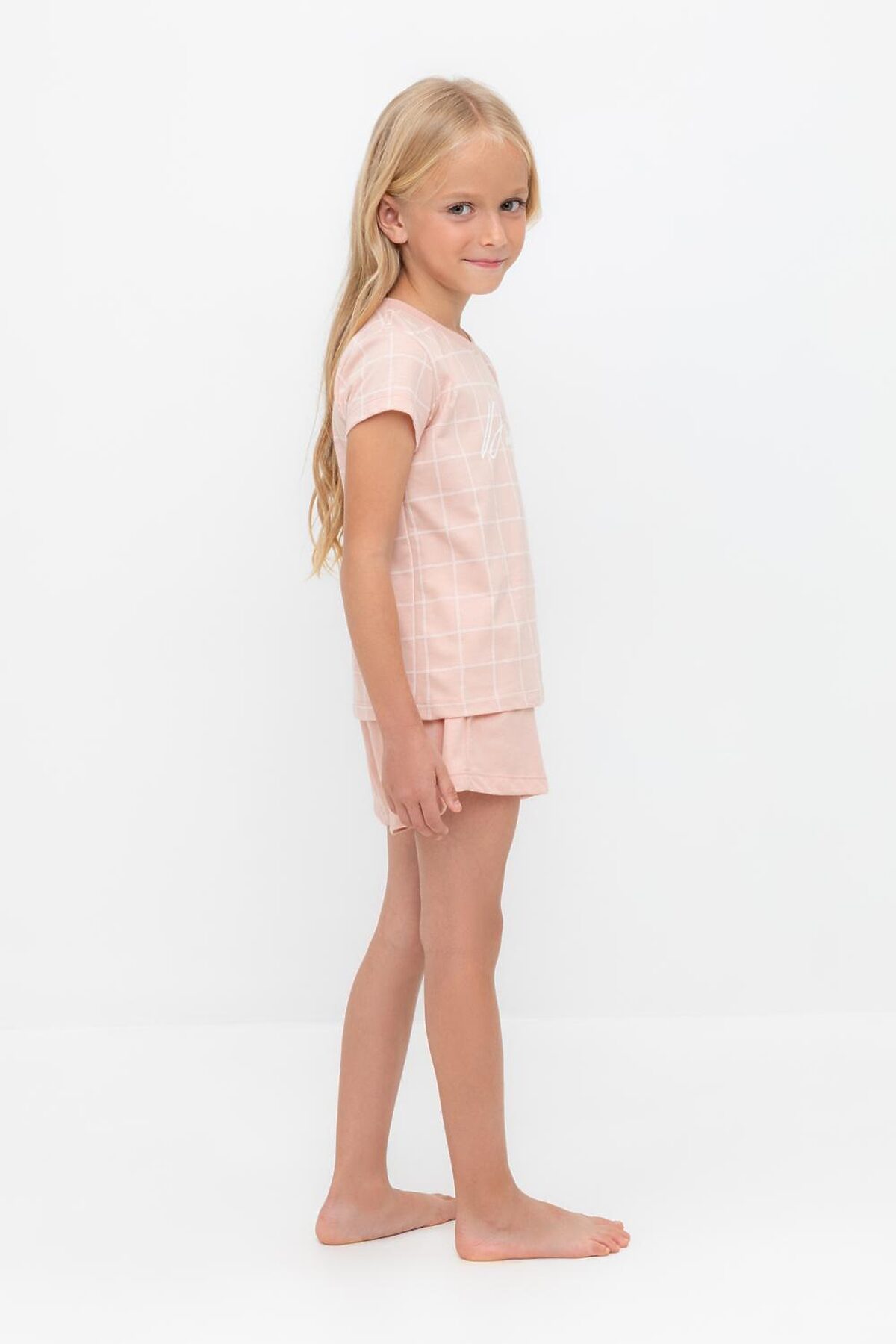 Трикотажная пижама из натурального хлопка. Футболка с принтом и короткими спущенными рукавами. У шорт в комплекте мягкий, эластичный пояс на резинке. Оригинальная набивка выполнена из стойких, гипоаллергенных текстильных красителей. Комплект сохраняет цвет и форму после многократных стирок. Все трикотажные полотна производятся в соответсвии с нормами Швейцарского сертификата ЭкоТекс.