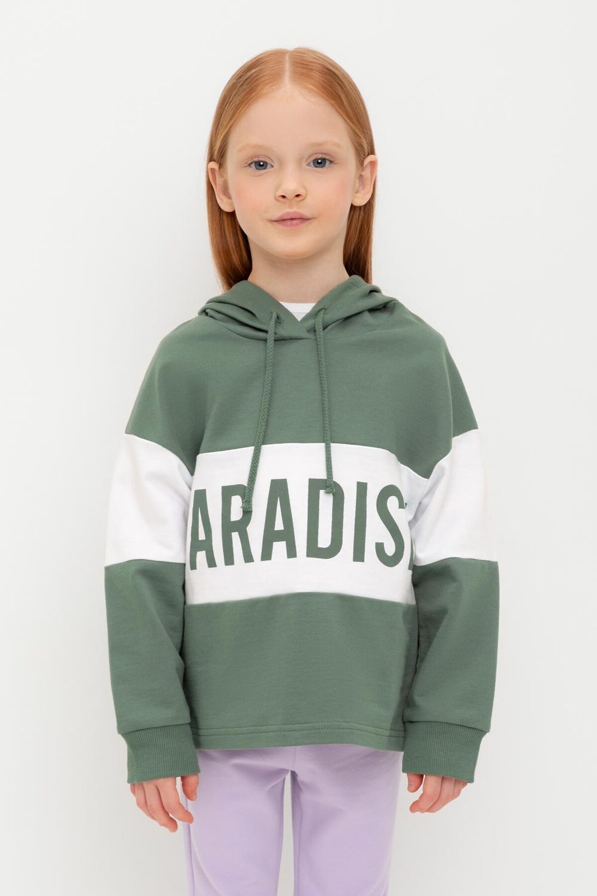 Толстовка с капюшоном для девочки из петельчатого футера . Принт выполнен из высококачественных текстильных красителей.