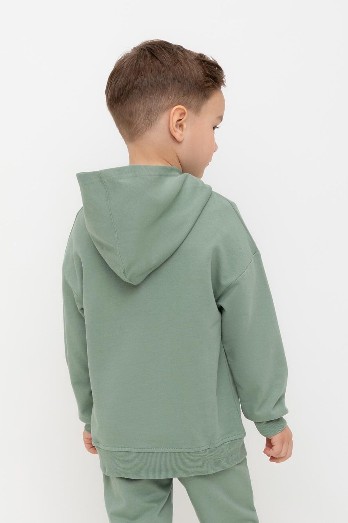 Толстовка с капюшоном для мальчика из петельчатого футера . Манжеты и пояс из эластичного трикотажа в рубчик. Спереди удобный карман-кенгуру.
