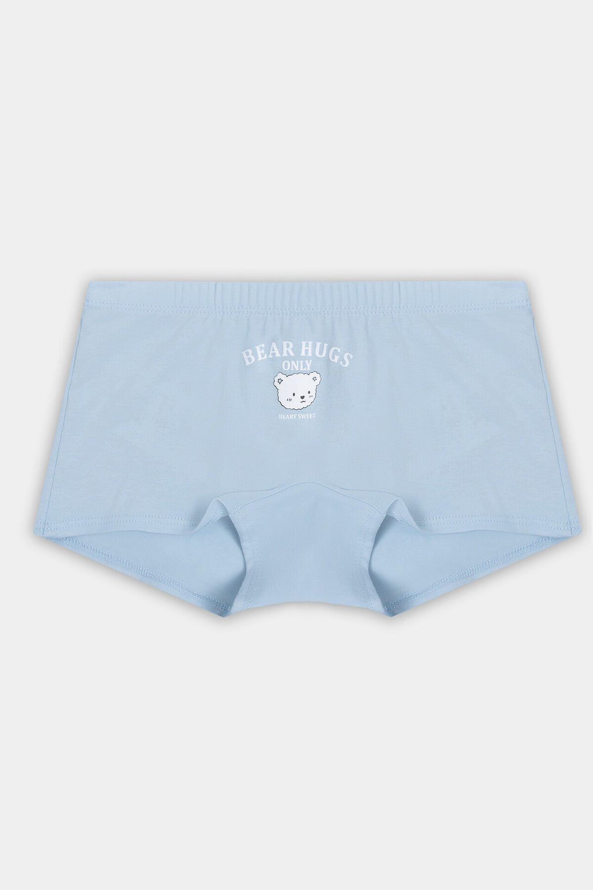 Трусы для девочек «шорты-боксеры» изготовлены из двух половинок с притачной ластовицей. Верхний срез трусов обработан швом в подгибку на 2х игольной плоскошовной машине с внутренней эластичной тесьмой 20мм, 20RV. Нижние срезы трусов обработаны на 2х игольной плоскошовной машине.